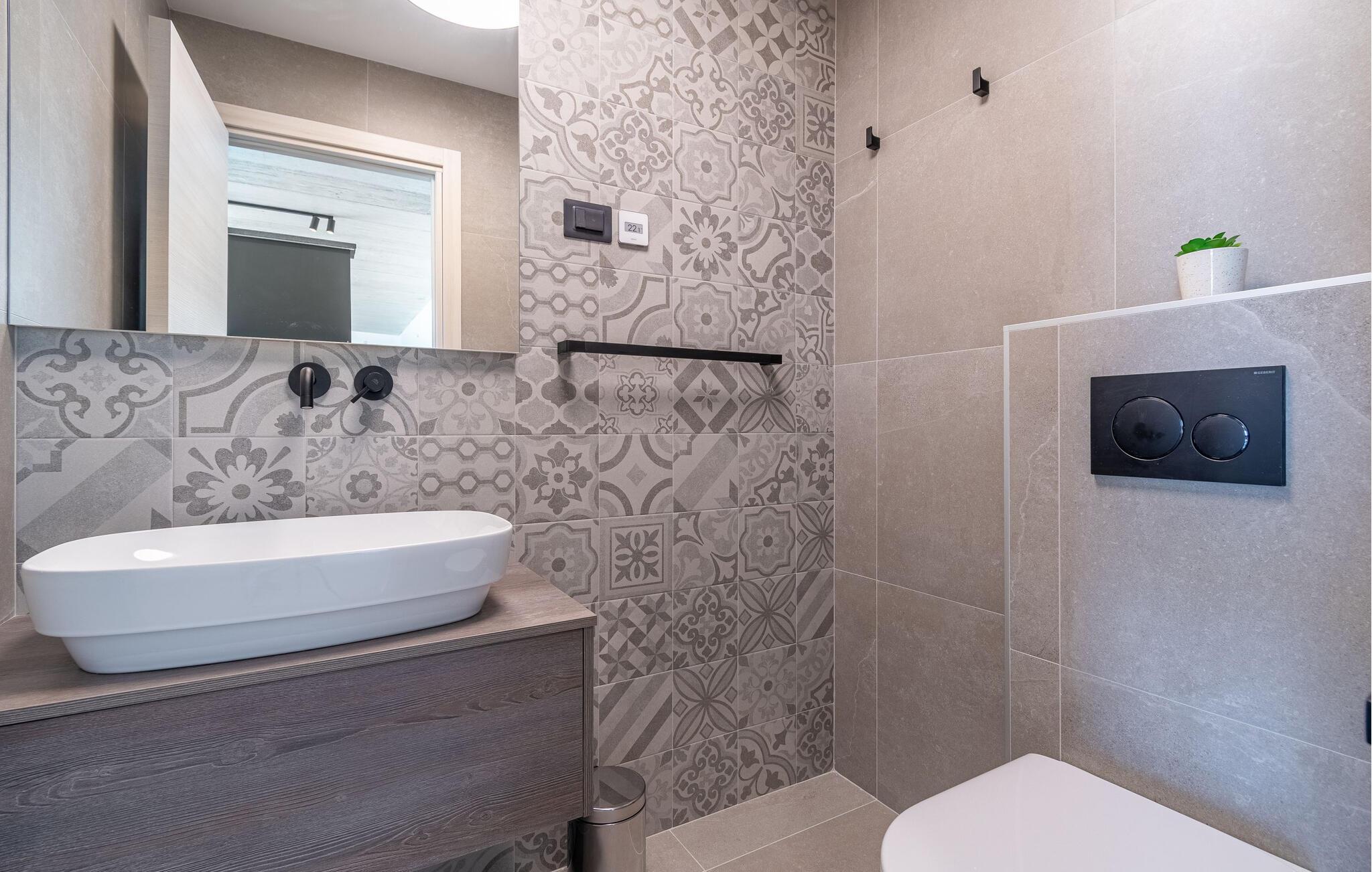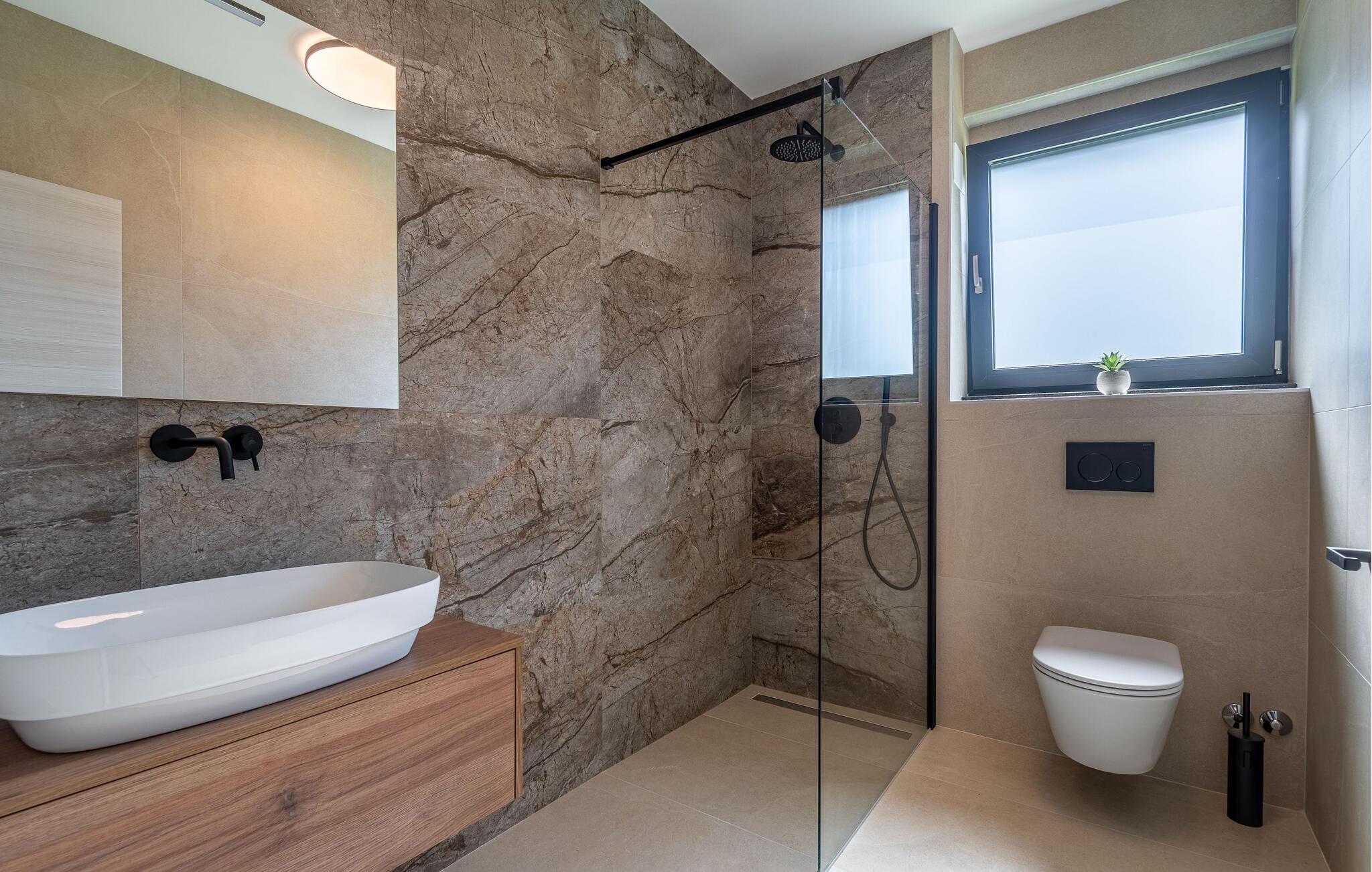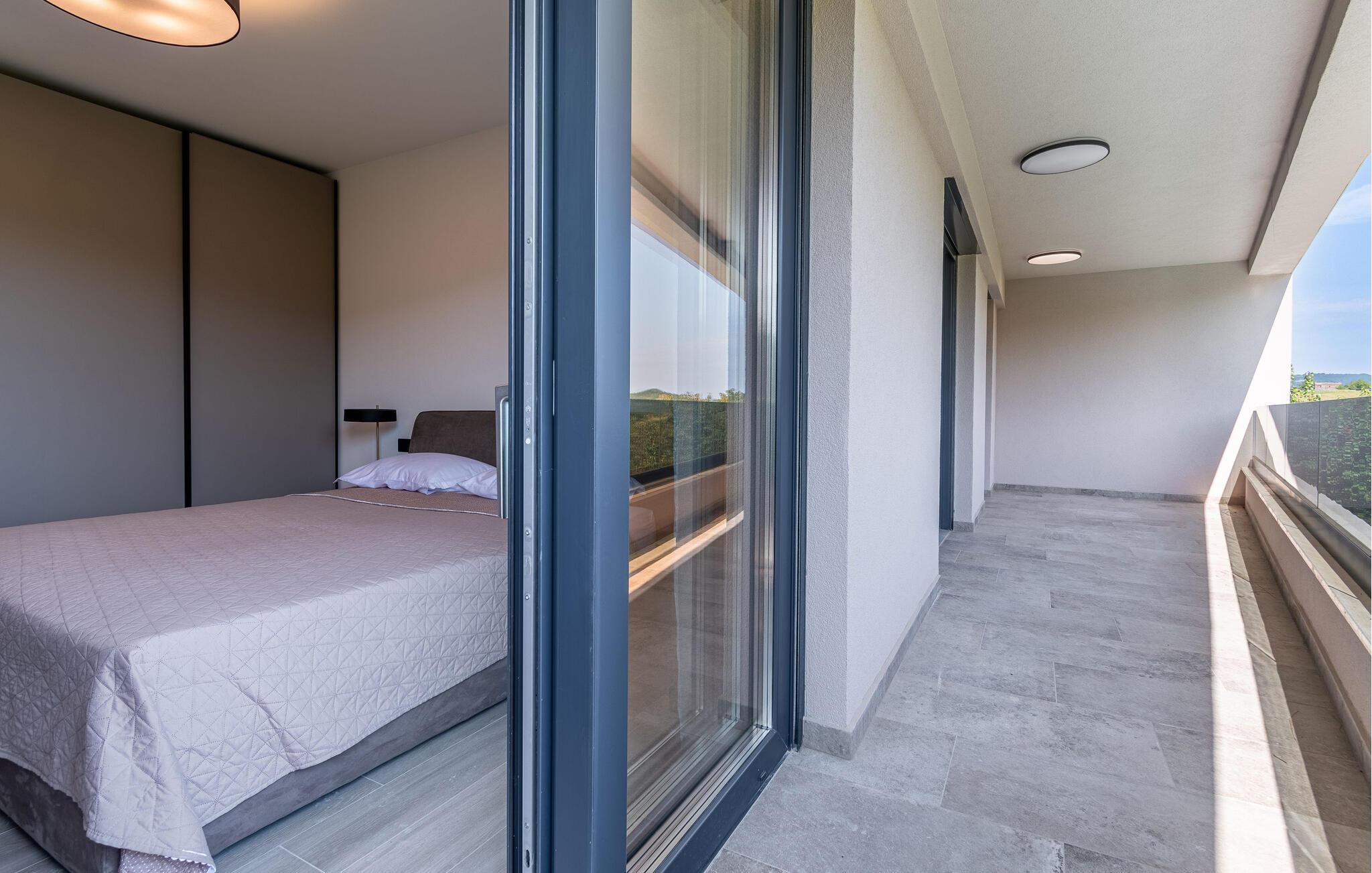 Dette stilfulde feriehus nær Pazin lægger op til at nyde livet og have det rart med sit moderne design og komfortable møbler. Nyd afslappende timer på den solrige terrasse, som er udstyret med komfortable udendørsmøbler eller snup en frisk dukkert i poolen, som byder på en fantastisk udsigt over de omkringliggende grønne bakker. Begynd dagene med en afslappet morgenmad på den rummelige terrasse eller afslut aftenen med en grillmiddag. Husets åbne opholdsstue byder på masser af plads til at slappe af og et veludstyret køkken, hvor I kan lave mad sammen. Fitness kommer I heller ikke til at mangle. Brug fitnessrummet til at holde jer i form, mens I er på ferie.