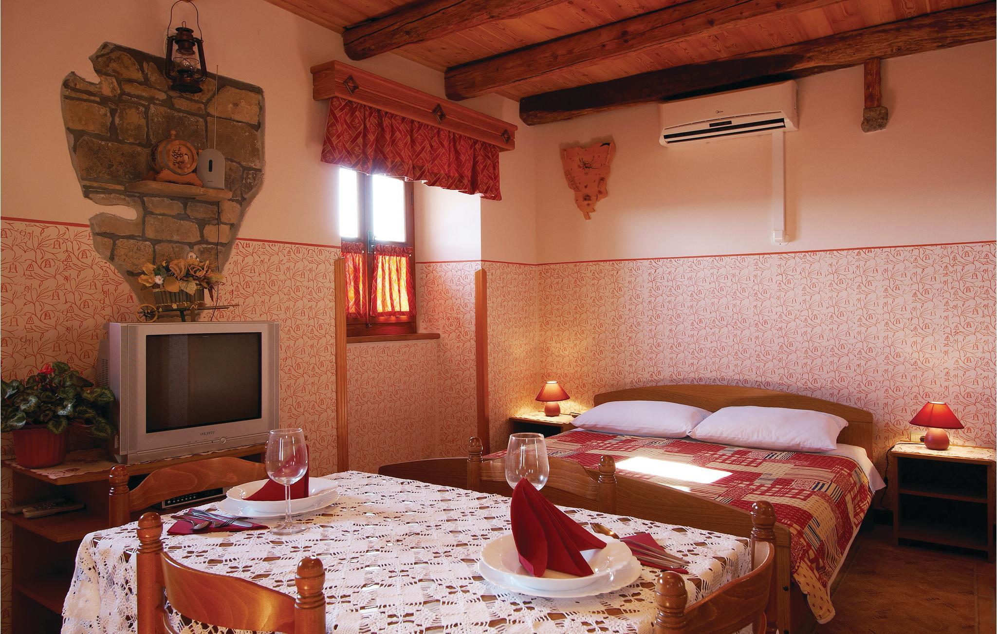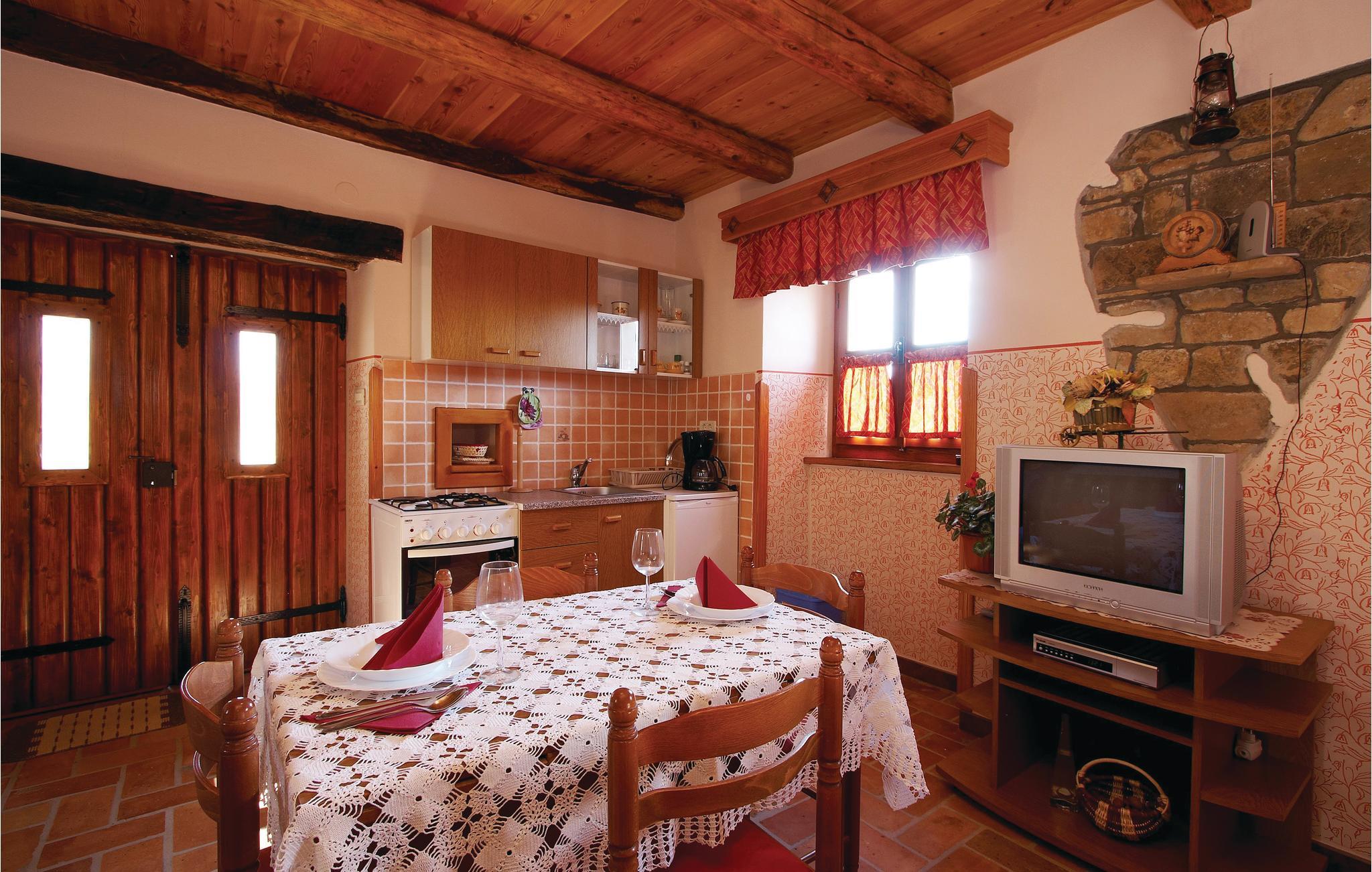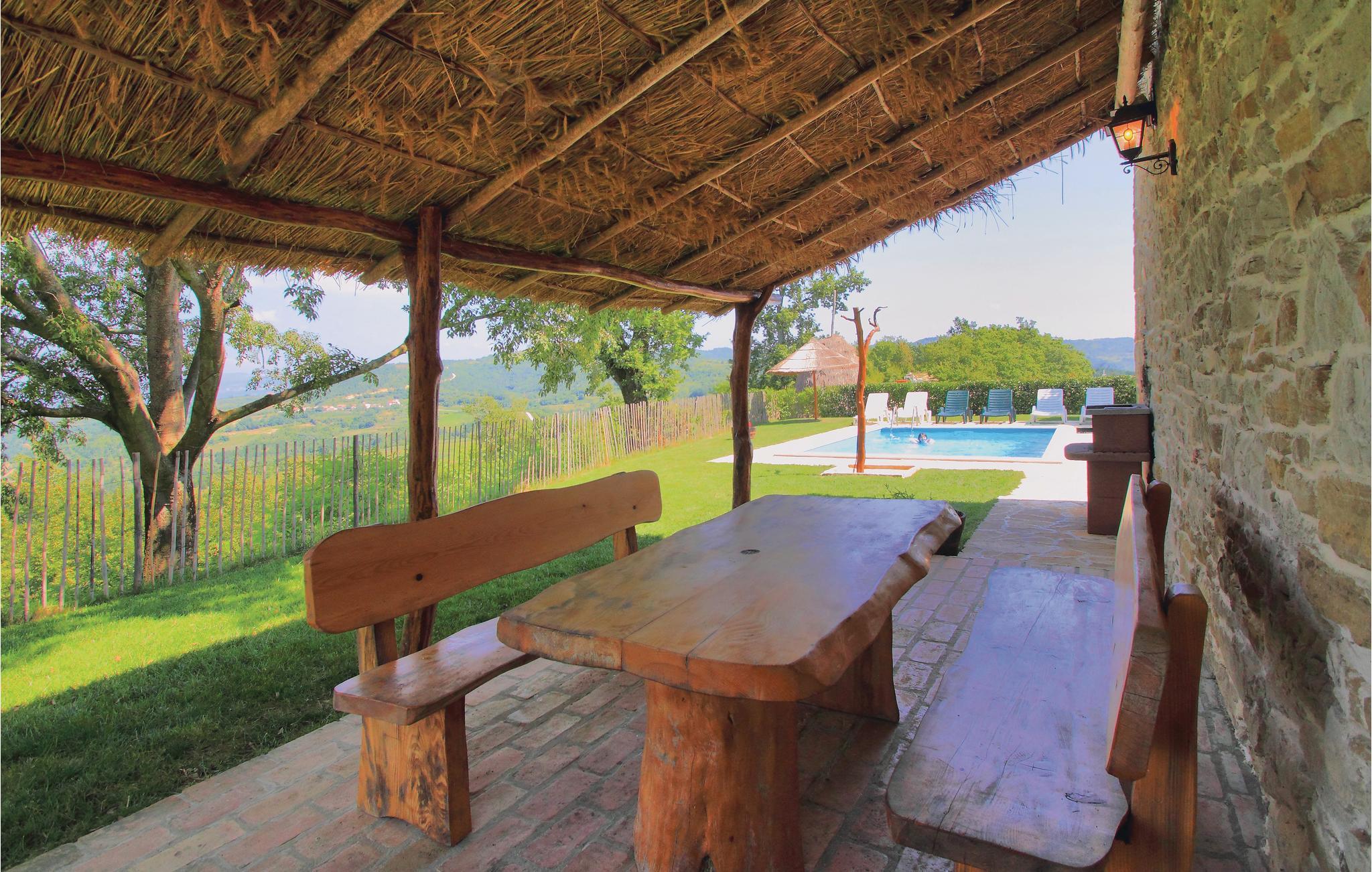 Skønt feriehus beliggende i et bakkelandskab ovenfor byen Pazin. Udsigten herfra er ganske enkelt fantastisk - der ligger 110 landsbyer og søen Butoniga for jeres fødder. Dette hus er bygget i autentisk stil og indrettet med øje for detaljer. Her hersker en dejlig og hyggelig atmosfære. Huset består af to enheder - et hovedhus med to soverum og et mindre hus, der ligger ca. 10 m fra hovedhuset, og hvor det 3. soverum befinder sig. Den dejlige grund er anlagt med græsplæne og her finder I også den skønne swimmingpool, som indbyder til forfriskende svømmeture på varme dage. I dette område kan vi anbefale en tur langs vinruten med de små Konobaer, hvor I kan lade jer forføre af de skønne lokale retter. En udflugt ind i landet kan også anbefales. Her venter mange oplevelser i de mange middelalderbyer, f.eks. Motovun, hvor der hvert år i slutningen af juli afholdes en filmfestival eller Hum, som skulle være den mindste by i hele verden. Kør langs vinruten og prøvesmag lækre, lokalproducerede vine og find ud af hvor lækkert Prsut (røget skinke) eller trøffel smager. Der står to cykler og en vippe til rådighed.