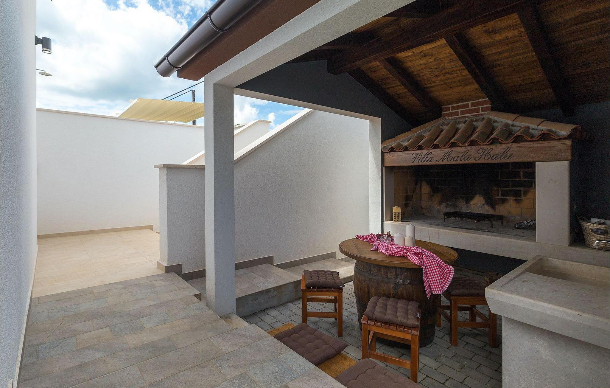 Nu står intet i vejen for en afslappende og komplet ferie!Villa Mala Halu er beliggende nær Gracisce, en middelalderlig bebyggelse i Istrien, beliggende i det indre af Istrien-halvøen, omkring 8 km øst for amtssædet Pazin, på vejen til Krsan og Vozlici. Den sidder på toppen af bakken og har det overordnede udseende som en typisk middelalderby i Istrien. Landsbyen står fuldstændig under monumental beskyttelse. Den gamle kirkegård, som ligger foran St. Vitus-kirken, byder på panoramaudsigt over det indre Istrien op til Ucka-bjergkæden i øst, samt til de julianske alper og Dolomitterne i nord. Mellem Gracisce og Pican ligger et beskyttet landskab med usædvanlige geologiske karakteristika.