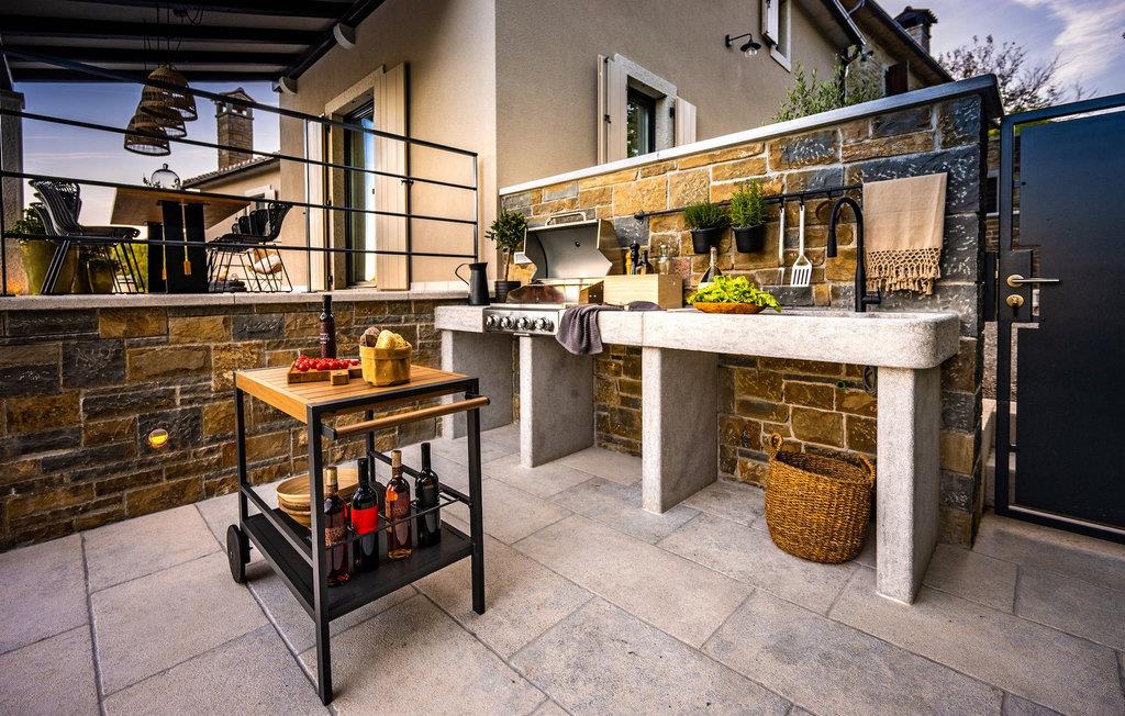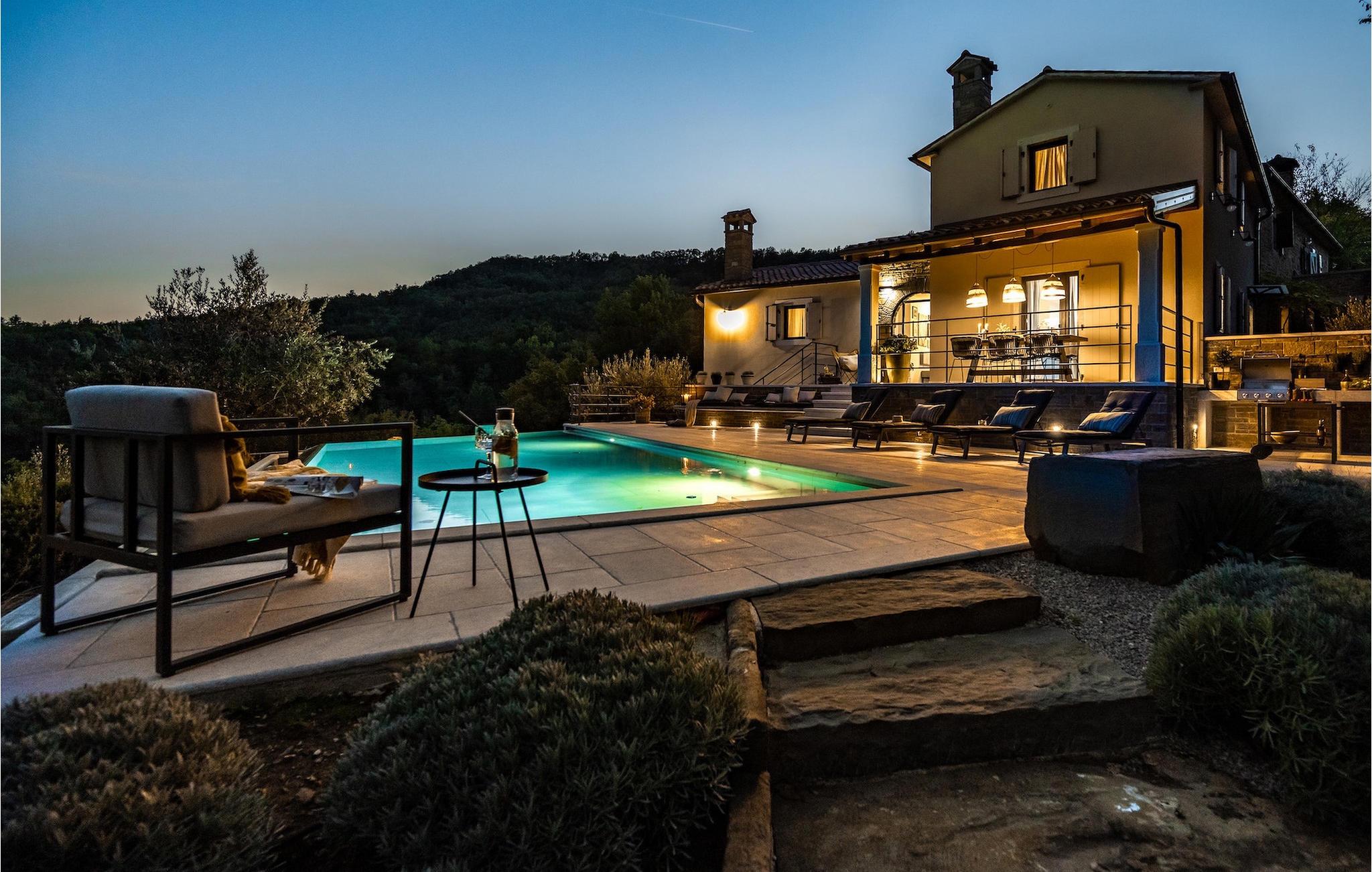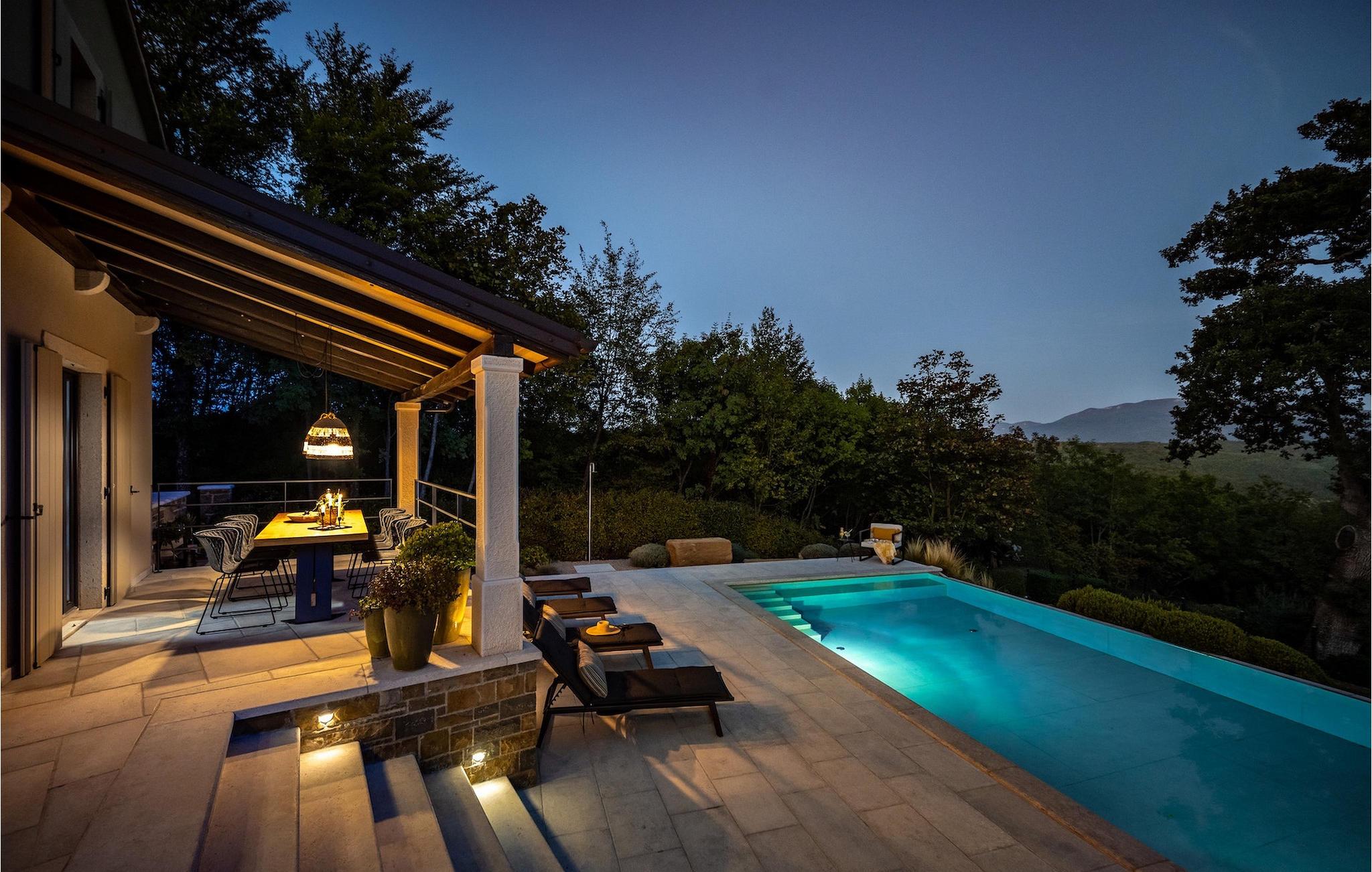 Den uregelmæssigt formede infinity-pool er virkelig rummelig, og gæsterne vil helt sikkert nyde at køle af i poolen. Poolen byder på en fortryllende udsigt over omgivelserne. Der kan du nyde solnedgange, der vil være specielle. På terrassen omkring poolen er der liggestole, hvor du kan hvile og solbade. Den overdækkede terrasse med spisebord er ideel til sammenkomster og socialt samvær. Der er også en gasgrill til rådighed, så gæsterne i villaen kan tilberede lækre måltider.
