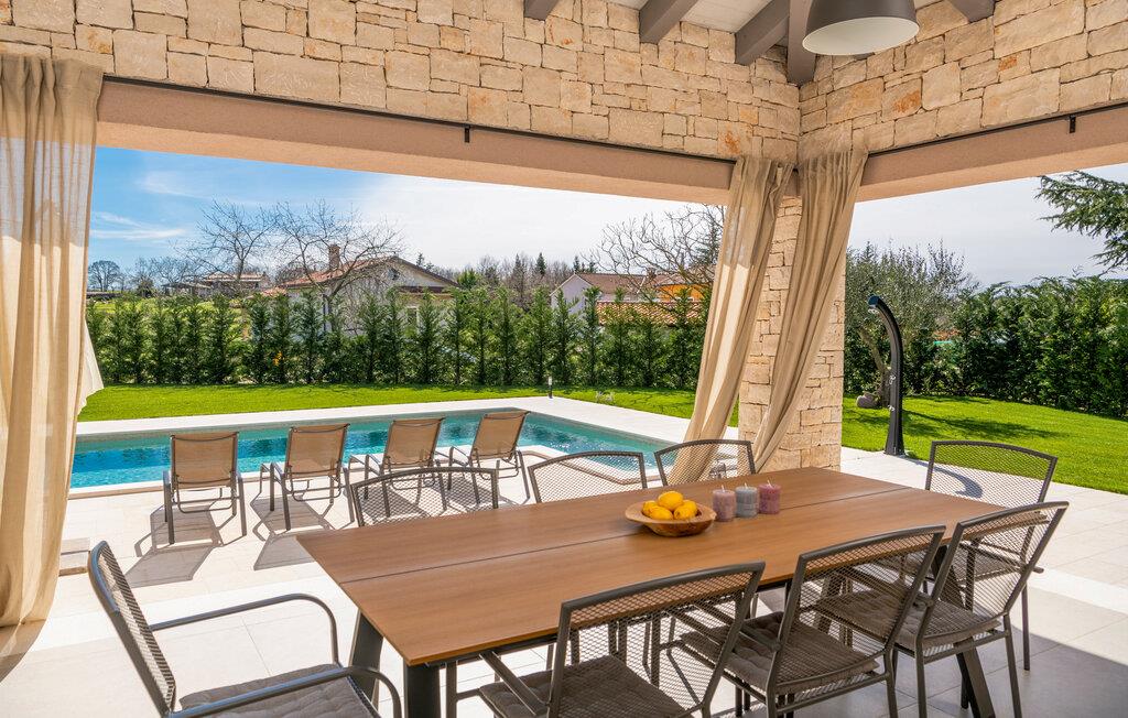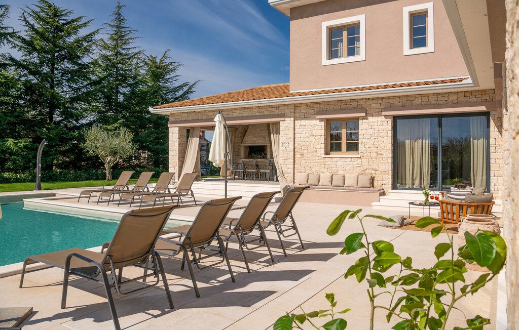 Udeområdet er tilsvarende lækkert og indbyder til mange skønne timer under den bagende sol. Sæt jer godt til rette fra morgenstunden med en god kop kaffe og lad jer varme helt igennem, inden I tager dagens første dukkert i poolen. Ud på eftermiddagen kan I tænde op i grillen og tilberede familiens livretter, som nydes allerbedst under aftensolen med et godt glas vin.