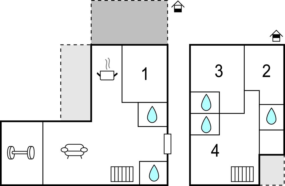 Badeværelse 5m2 (nr. 1) - WC. Varmt og koldt vand. Bruser