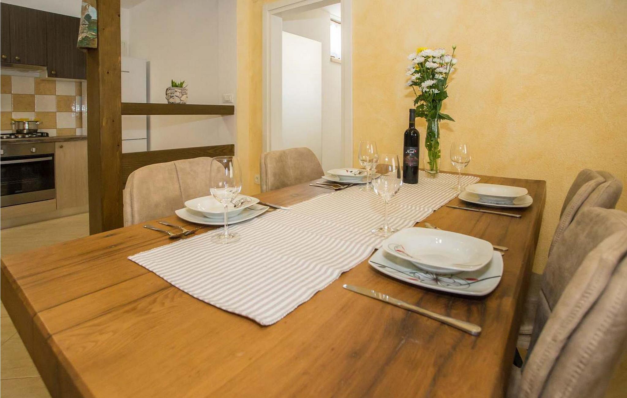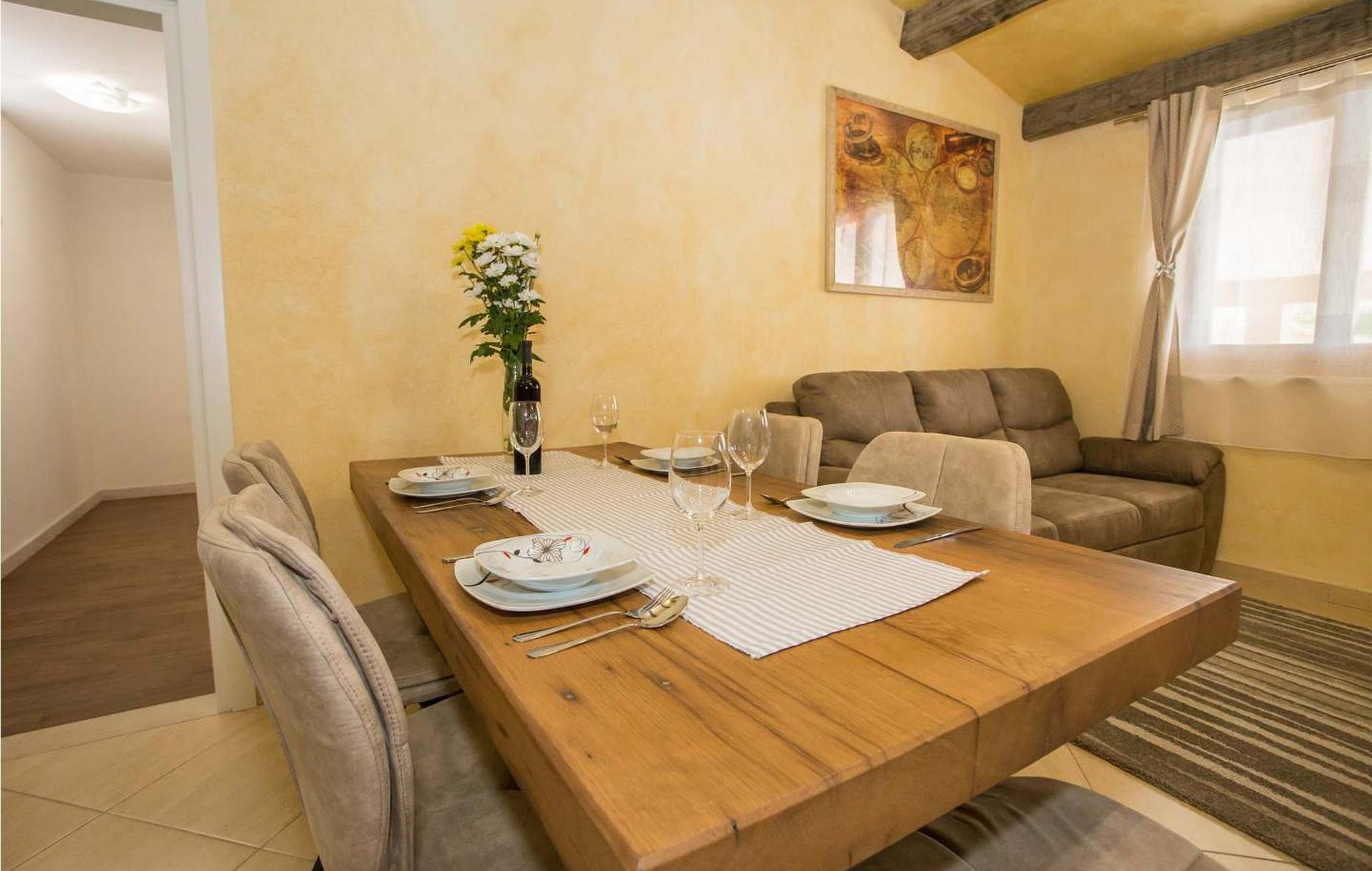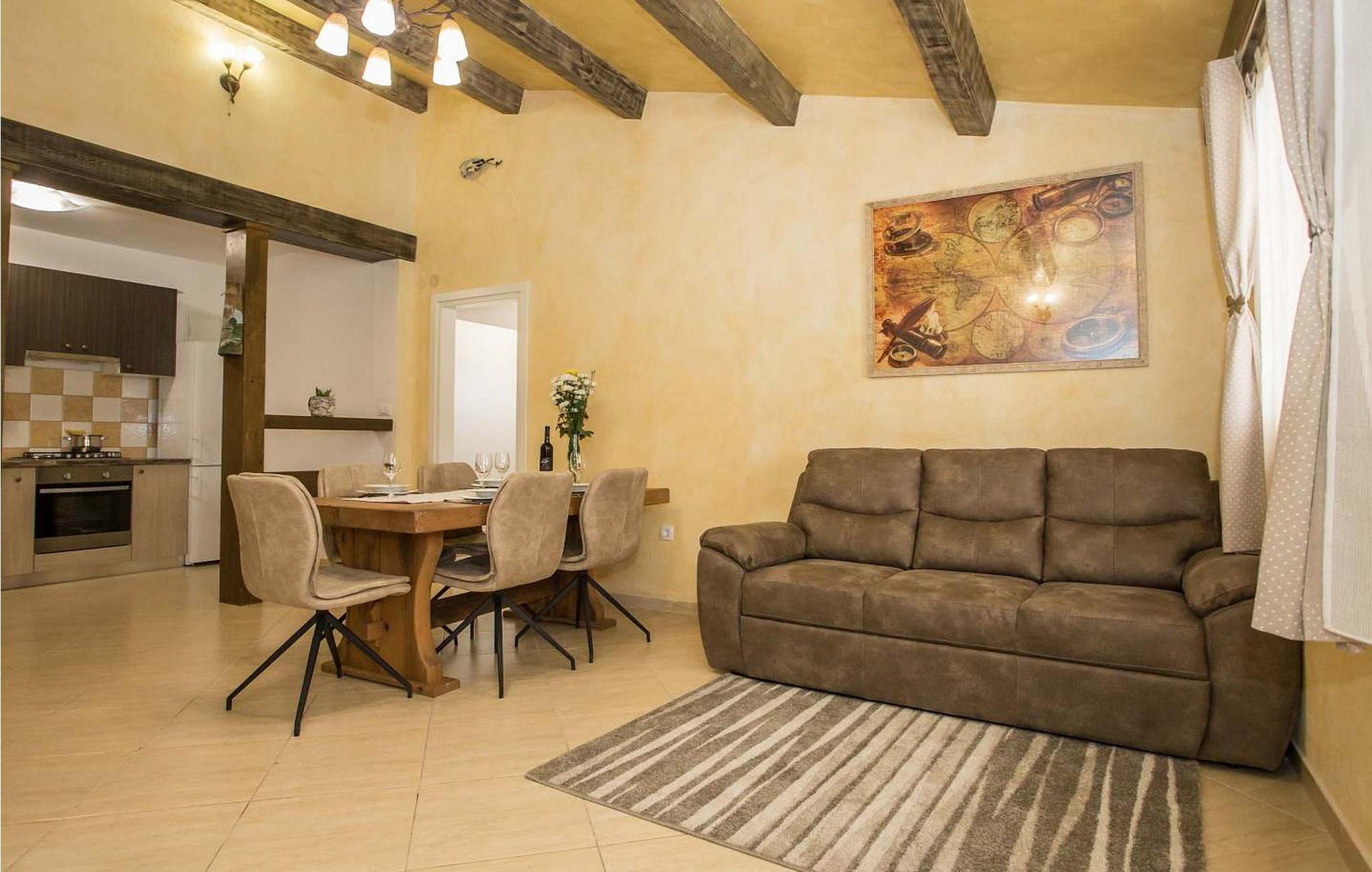 Casa Ivana er et komfortabelt feriehus med præfabrikeret swimmingpool beliggende på et roligt sted i landsbyen Lakošeljci i det centrale Istrien. På delvist lukket ejendom tilbyder det gæsterne en præfabrikeret swimmingpool på 27 kvm, velholdt have med liggestole, grill, overdækket terrasse med bord og stole og privat parkeringsplads. Sommerhus på 60 kvm og 24 kvm terrasse er fuldstændigt airconditioneret og har opholdsstue med udstyret køkken, spisebord og sovesofa til to personer, soveværelse med dobbeltseng og bad/toilet. Bemærk venligst, at denne ejendom ikke accepterer ungdomsgrupper eller polterabends. En ungdomsgruppe på denne ejendom er en gruppe bestående af personer på 26 år eller derunder. Book ikke denne ejendom, hvis du er en ungdomsgruppe eller et polterabend, da din reservation vil blive afvist efter booking, hvilket kan omfatte ved ankomst til ejendommen eller under dit ophold, og du vil ikke blive refunderet.