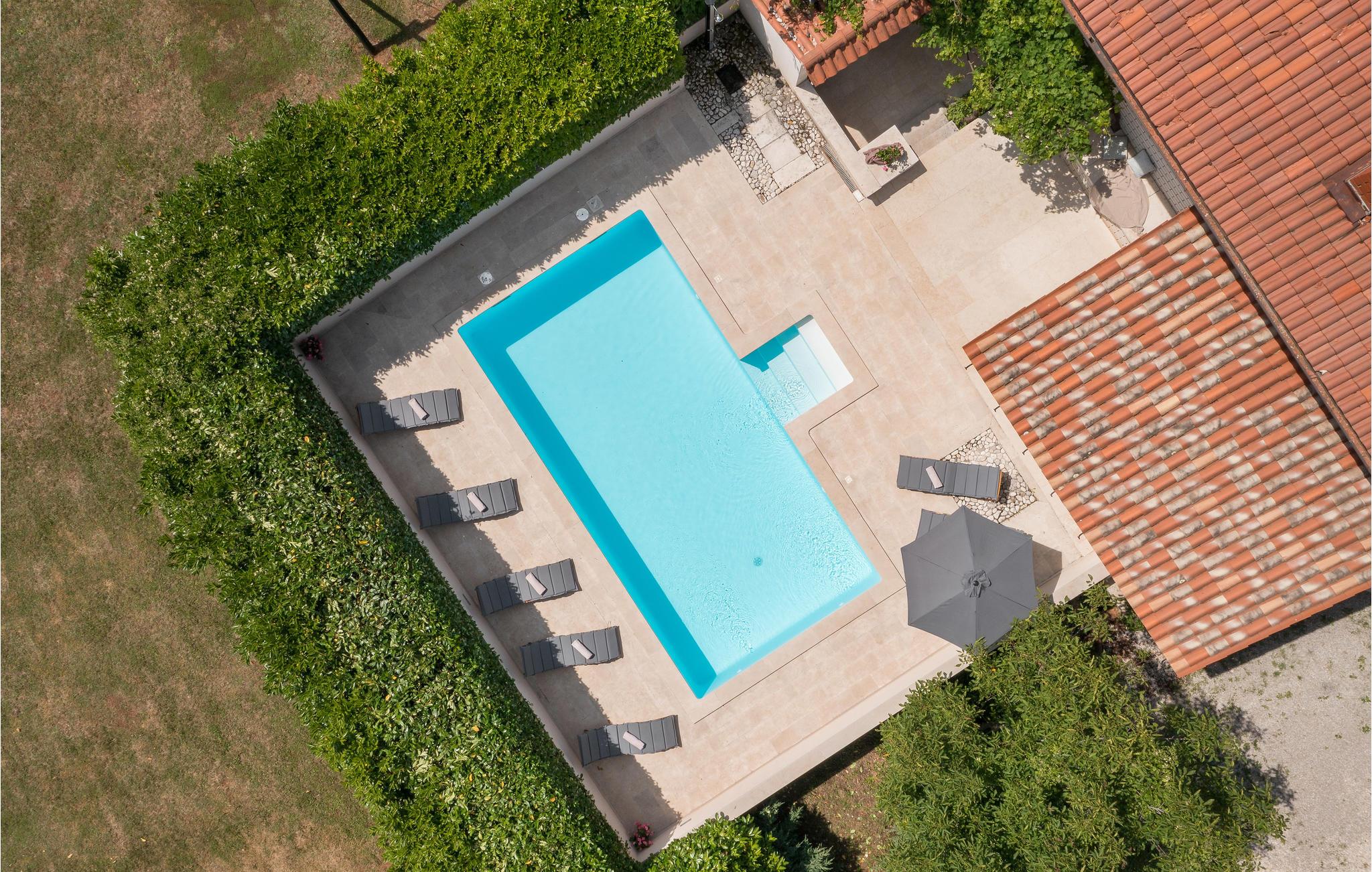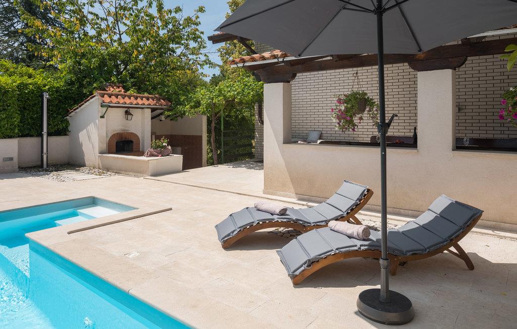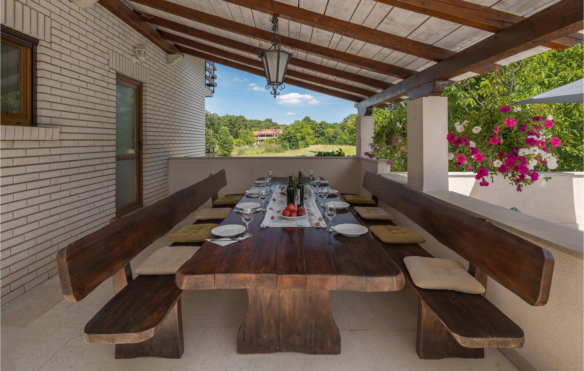 Dette flotte og moderne toetagers feriehus ligger i rolige omgivelser. Det er omgivet af facinerede kroatisk natur. Nyd stilheden langt fra storbyens travlhed og sæt jer til rette med en bog i skyggen ved poolen. Den dejlige swimmingpool gør de varme dage behagelige. Ved siden af huset ligger der en typisk regional restaurant - en konoba - hvor I kan prøve de lækre egnsretter. Her kan I slappe af, tage på vandreture, cykle eller besøge stranden. Udforsk området og tag på udflugter til de små landsbyer i landets indre. Gå ikke glip af den kønne middelalderby Motovun med dens gamle bymure. Motovun byder også på den årlige filmfestival i juli. Er I filmentusiaster så få fat på progammet, her er garanteret en eller flere film i gerne vil se. Laveste taghøjde i tagetagen er 1 m. Området er egner sig rigtig godt til at tage på lange cykelture, eller lange gåture på nogle af de mange stier. der findes man små landsbyer i området som bestemt er et besøg værd.
