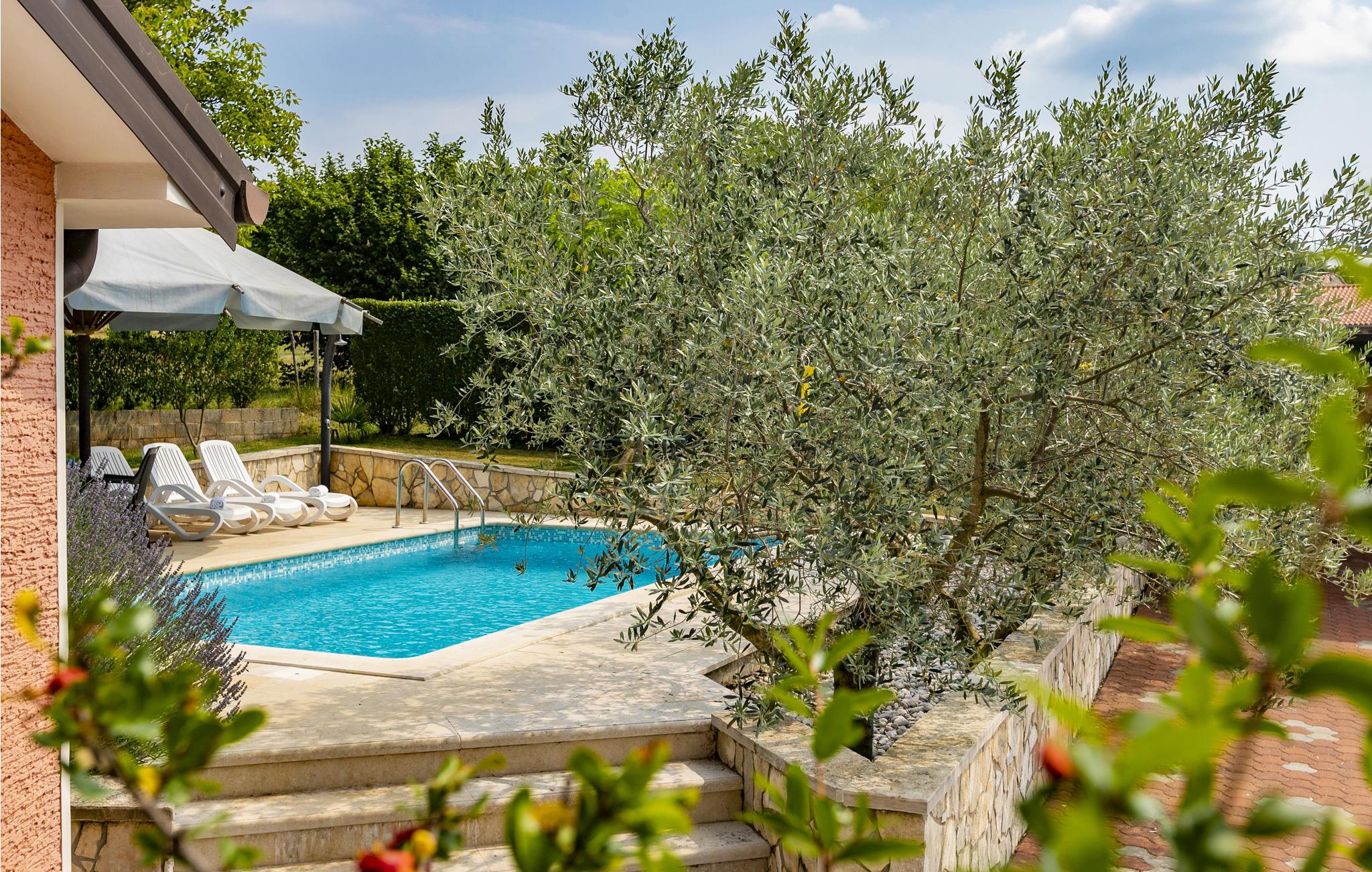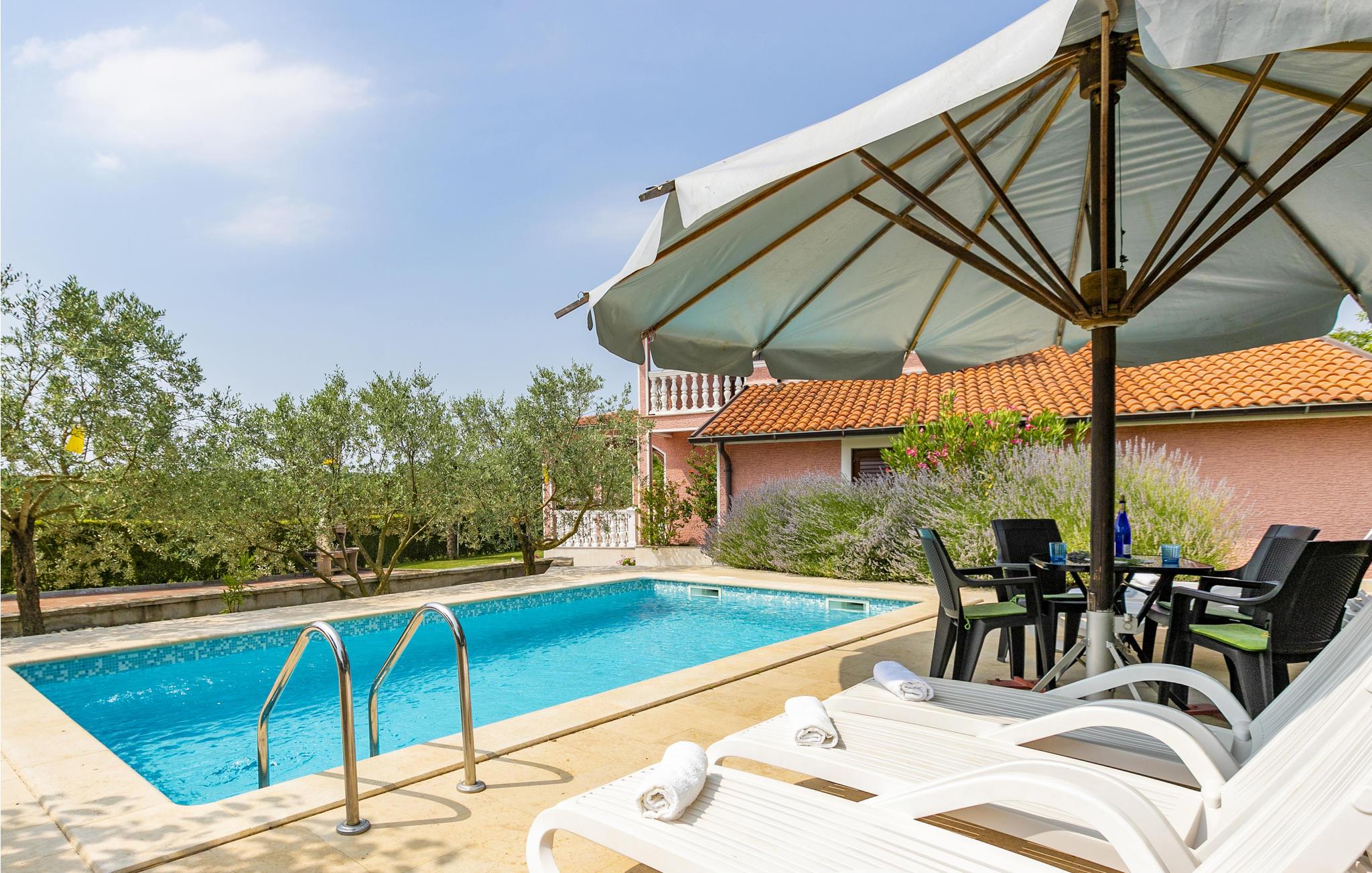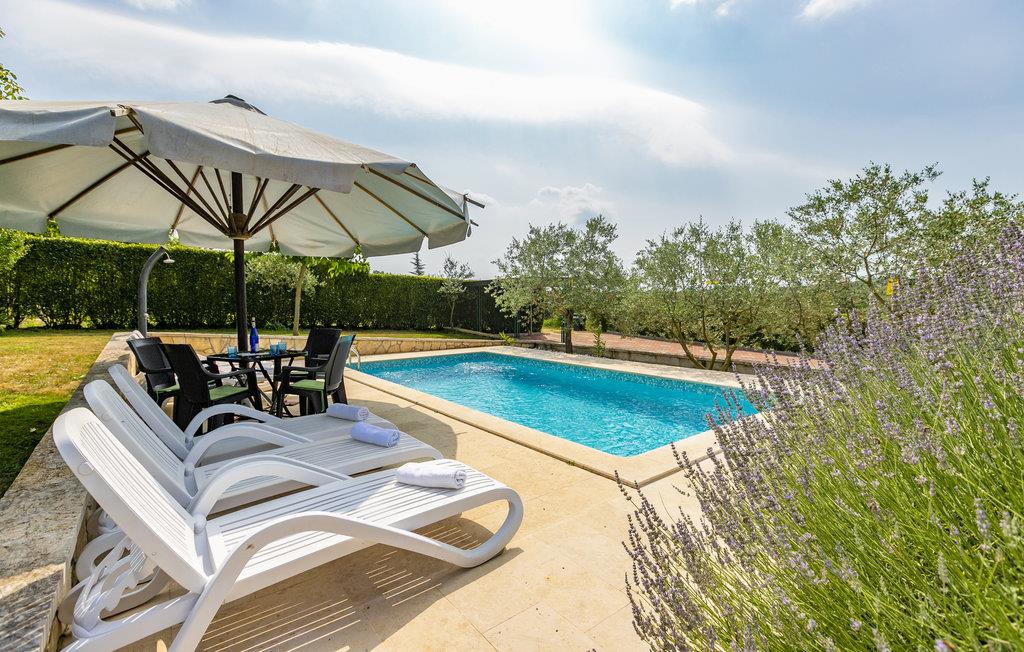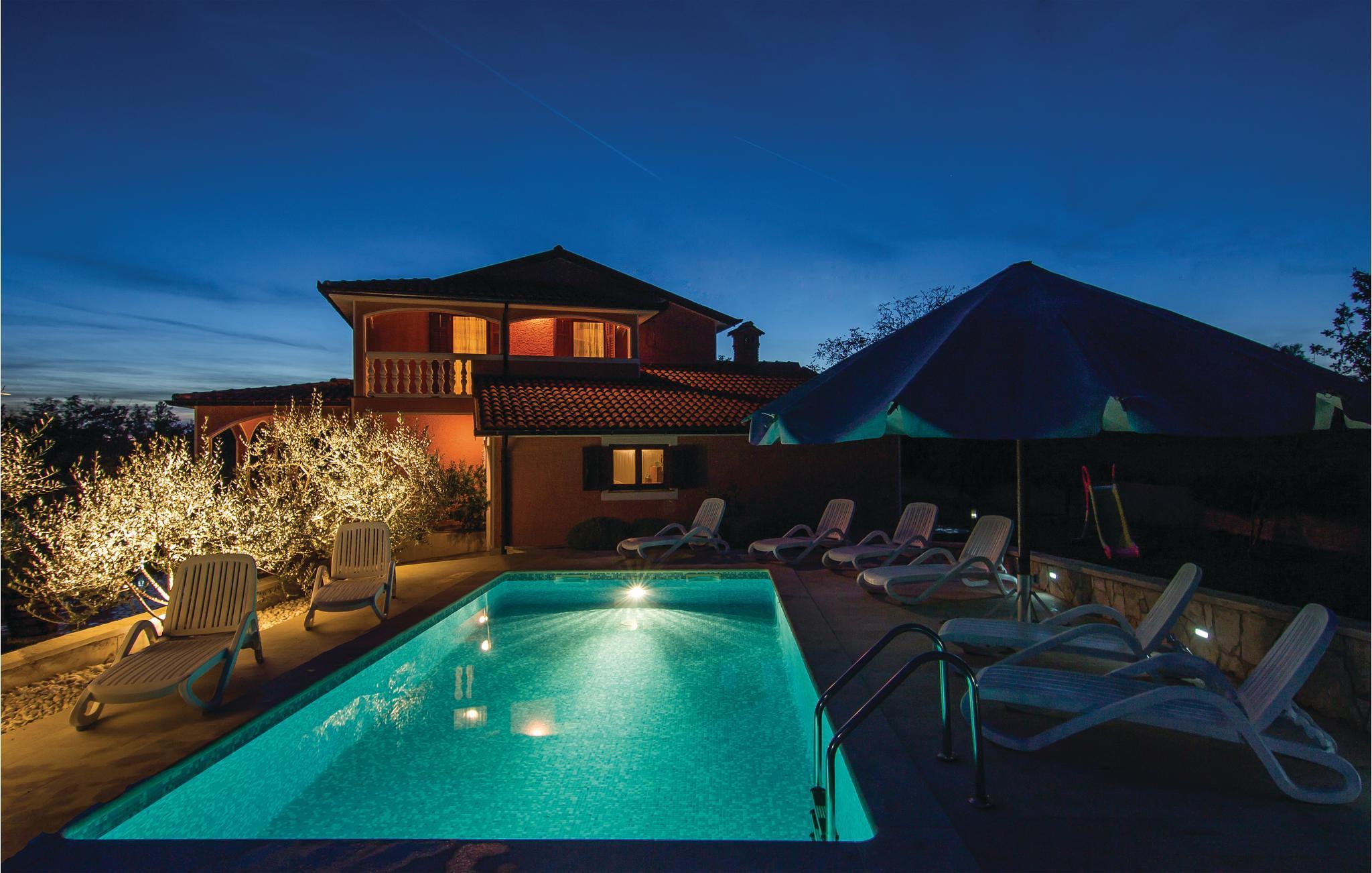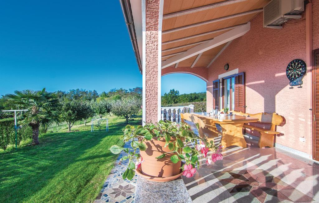 Dette meget dejlige og hyggeligt indrettede feriehus har en stor og velholdt have med en lille legeplads og swimmingpool. Huset ligger i hjertet af halvøen. Området er meget roligt og byder på mange muligheder for vandre- og cykelture. Blot en halv time i bil fra huset finder I flere gode badestrande. Tag en tur til den gamle bydel i Motovun og nyd jeres aftensmad på en restaurant med udsigt over landskabet. Floden Pazincica slutter sit løb over jorden i Pazin slugten og flyder under byens mure og fortsætter underjordiske mod syd. Den imponerende slugt Pazin, også kendt som Jama, har inspireret mange rejseskribenter ved at se på den unikke natur og til skrive om det. I Pazin er der hver måned et stort marked med forskellige varer og produkter.