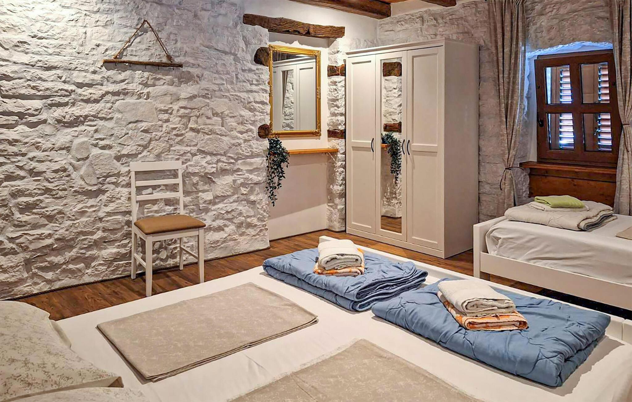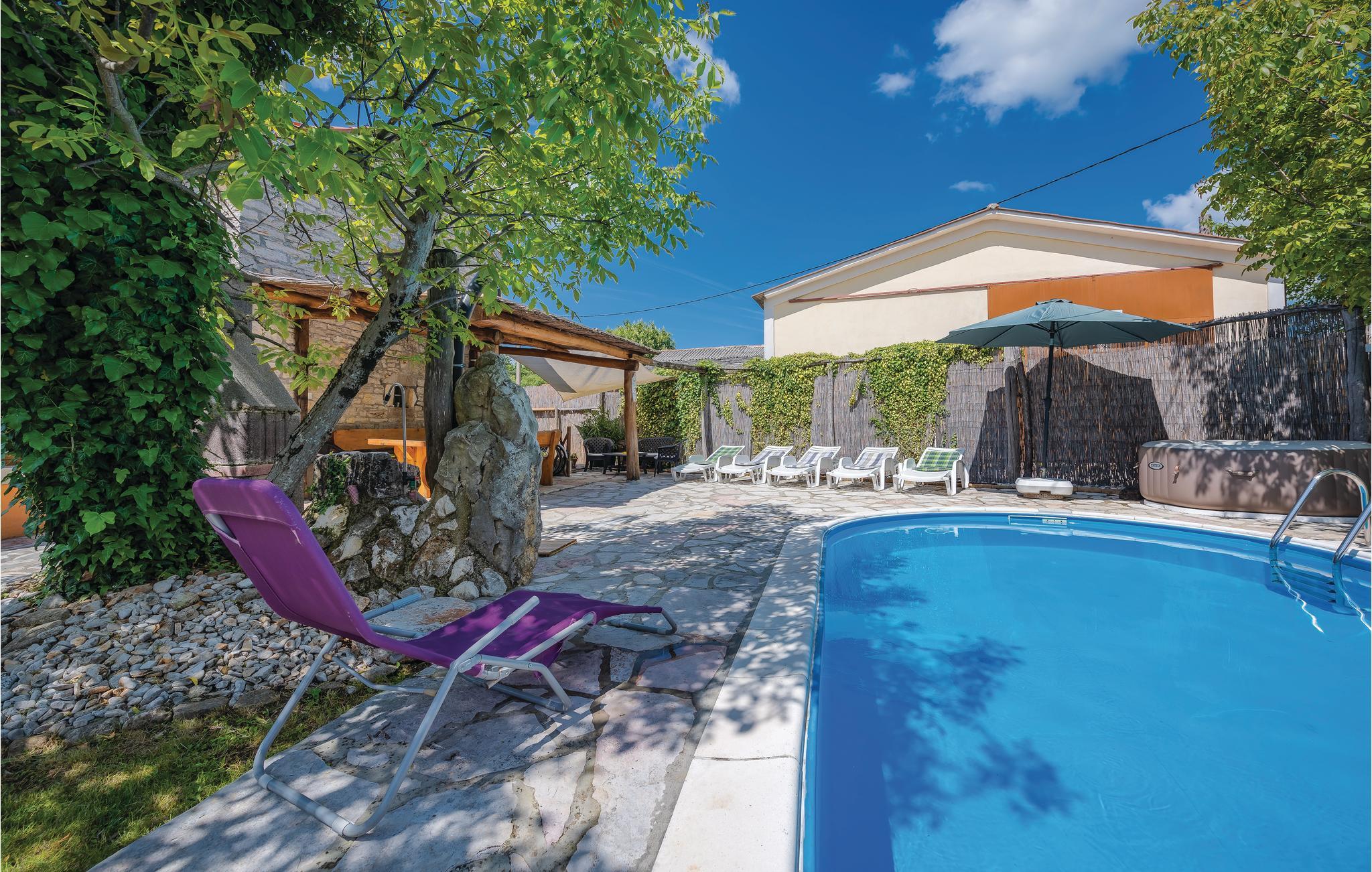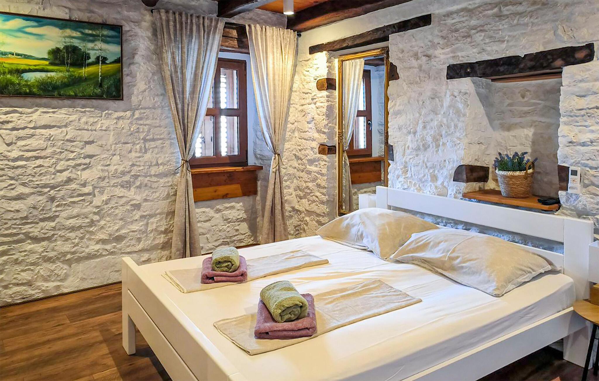Dette feriehus ligger smukt på en bakke i den lille by Marserti med skøn udsigt over landskabet. Huset er et dobbelthus omgivet af de stenmure, der er så typiske i Kroatien, men huset er holdt i moderne stil og er omgivet af en dejlig have. Ved siden af terrassen ligger poolen. Til børnene er der også legeplads med gynge. De voksne kan nyde ferien på den overdækkede terrasse ved siden af gyngen. To soveværelser ligger separat med en ekstra indgang til huset. I dette feriehus kan I nyde at bo helt ugenert – her har I haven og poolen helt for jer selv. Plænen med to fodboldmål og volleyballnet deles med gæsterne i CIC157. Nabohuset CIL157 kan også lejes, såfremt I er mange der vil holde ferie sammen, men vil bo hver for sig.
