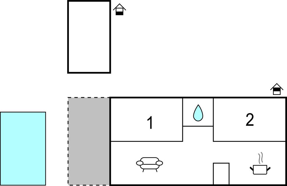 Opholdsstue/køkken - 2 Sovepladser. (Sofa, madras eller lignende).