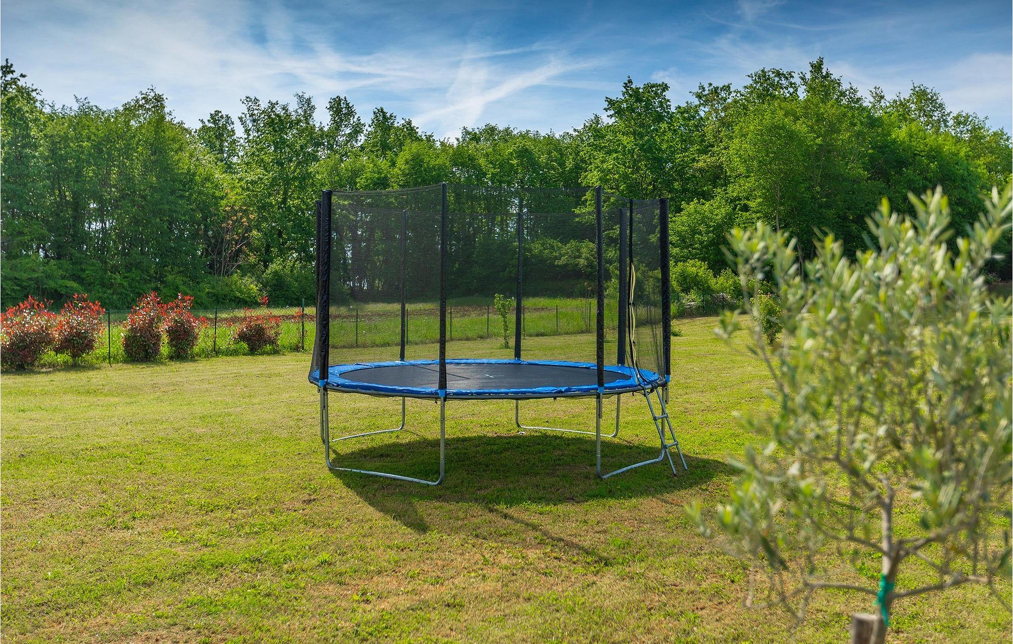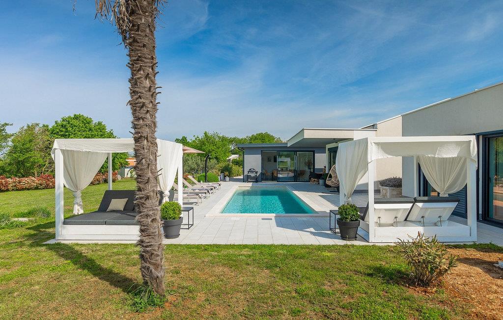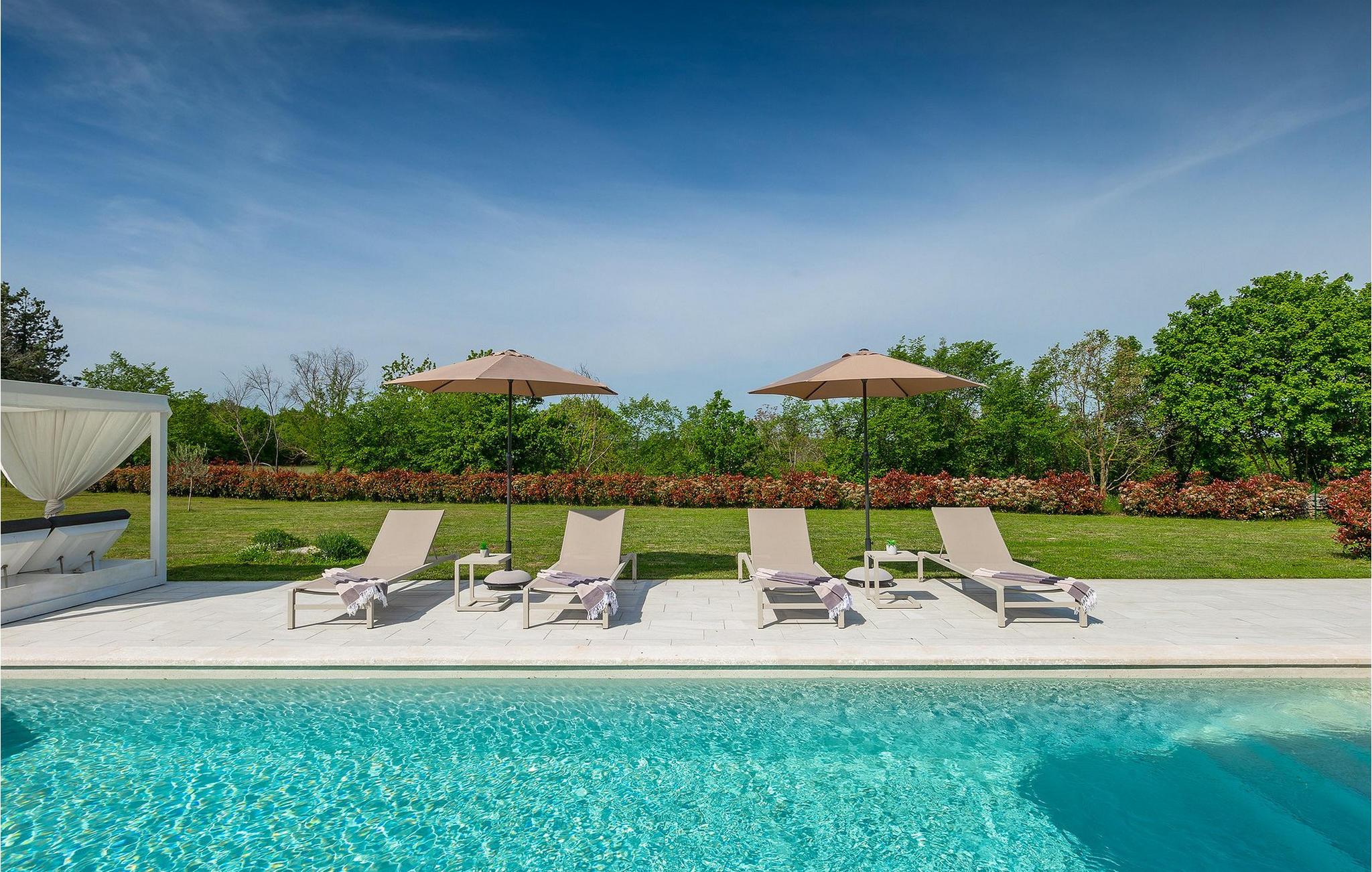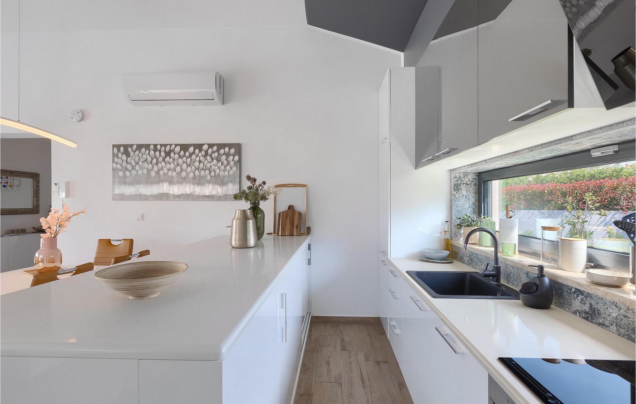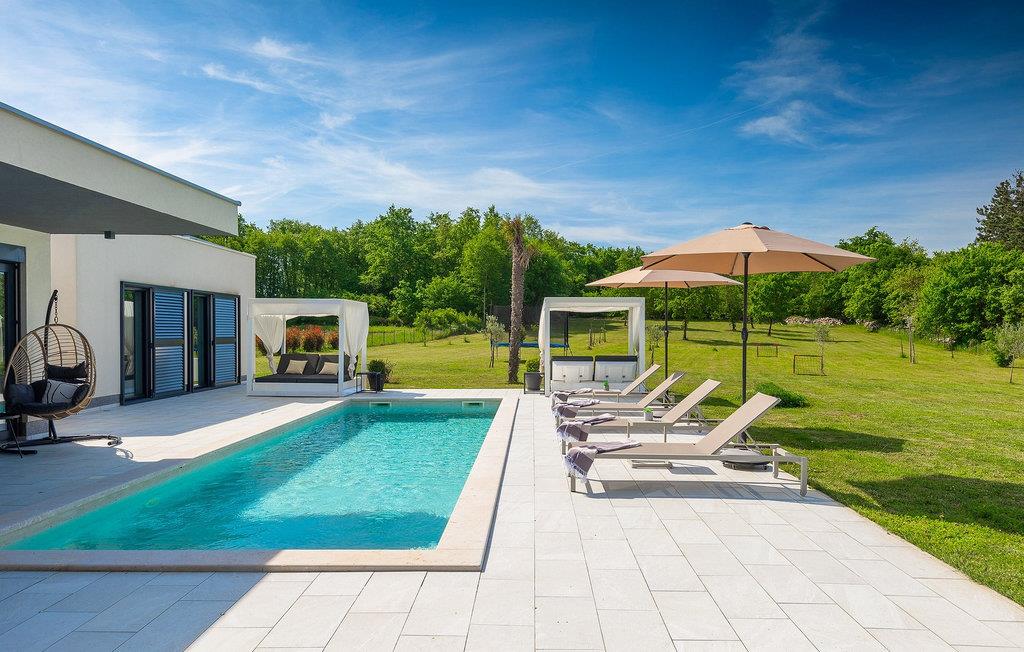 Nyd din ferie i den smukke, moderne indrettede Villa Mala Oaza beliggende i den lille by midt i de grønne bakker i det centrale Istrien. Denne en-etagers villa tilbyder overnatning til 6 gæster og er ideel til familieferier. I vil helt sikkert bruge meget tid sammen omkring den store, private pool. Mens du tilbereder måltider på grillen, kan børnene spille volleyball i den rummelige have. Med talrige havemøbler og liggestole byder haven på masser af plads til at slappe af, solbade eller bare slappe af i skyggen af parasollerne. Alle værelser er placeret i stueetagen. Det centrale rum til at komme sammen forbinder køkken, stue og spisestue i et åbent koncept. Dette varme-farvede område er indrettet med mange stilfulde detaljer og vidunderlige malerier. Køkkenet med en ø er fuldt møbleret og byder på god plads til madlavning. De store glasdøre åbner området op med udsigt til villaens indbydende pool. Udenfor finder du grillen og plads nok til at have en dejlig udendørs middag. Gangen fører til de smarte soveværelser med spændende tapeter, elegant indrettet med direkte udgang til haven. Hvert soveværelse råder over dobbeltsenge og klimaanlæg. Her kan du slappe af og planlægge din tur til Istriens magiske bagland. Den lille landsby Sv. Petar u Sumi er et roligt og afslappende sted, ikke langt væk fra det travle turistcenter Porec og Rovinj. De første købmandsforretninger ligger kun 1 km fra villaen, mens du kan finde større butikker inden for 5 km fra villaen. Selvom dette er en lille landsby, kan du her besøge smukke kirker (klosterkirken St. Peter og Paulus apostlen), fantastisk at se, hvis du er til arkitektur og mosaikker fra den gotiske periode. Du bør også besøge den nærliggende by Pazin. I hundreder af århundreder var Pazin den stærkeste Habsburg-fæstning i dette område og hovedkvarteret for den tidligere Pazin-hersker. Dette middelalderfort ("Kastel") er velbevaret, så du kan besøge det i dag. Det bliver brugt som et etnografisk museum i Istrien og museet for byen Pazin. Udforsk det istriske bagland gennem vandre- eller cykelture og prøv berømte specialiteter som trøfler.