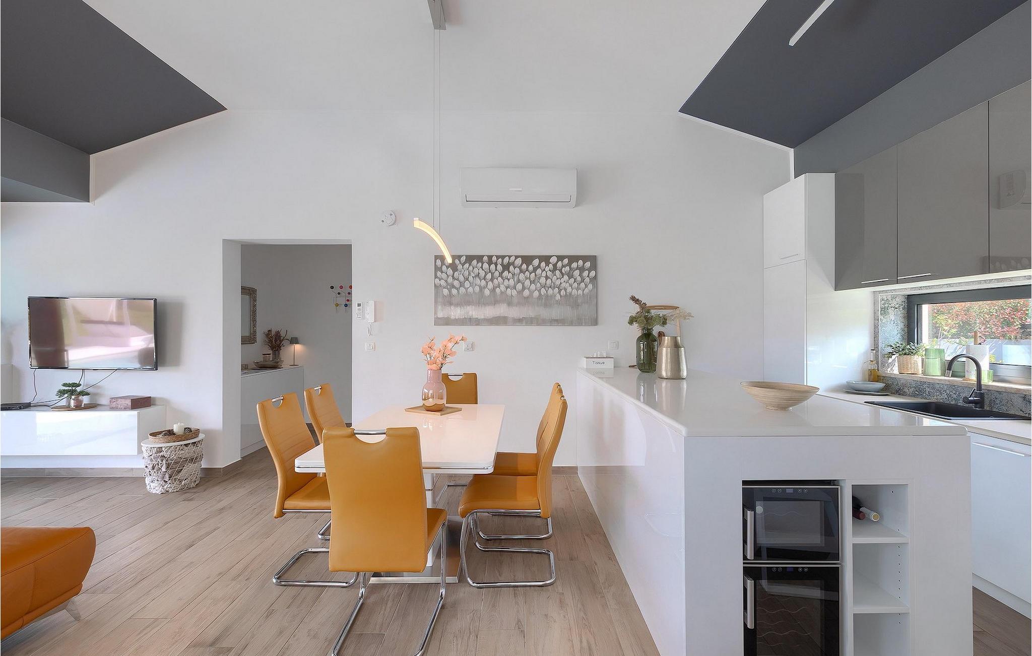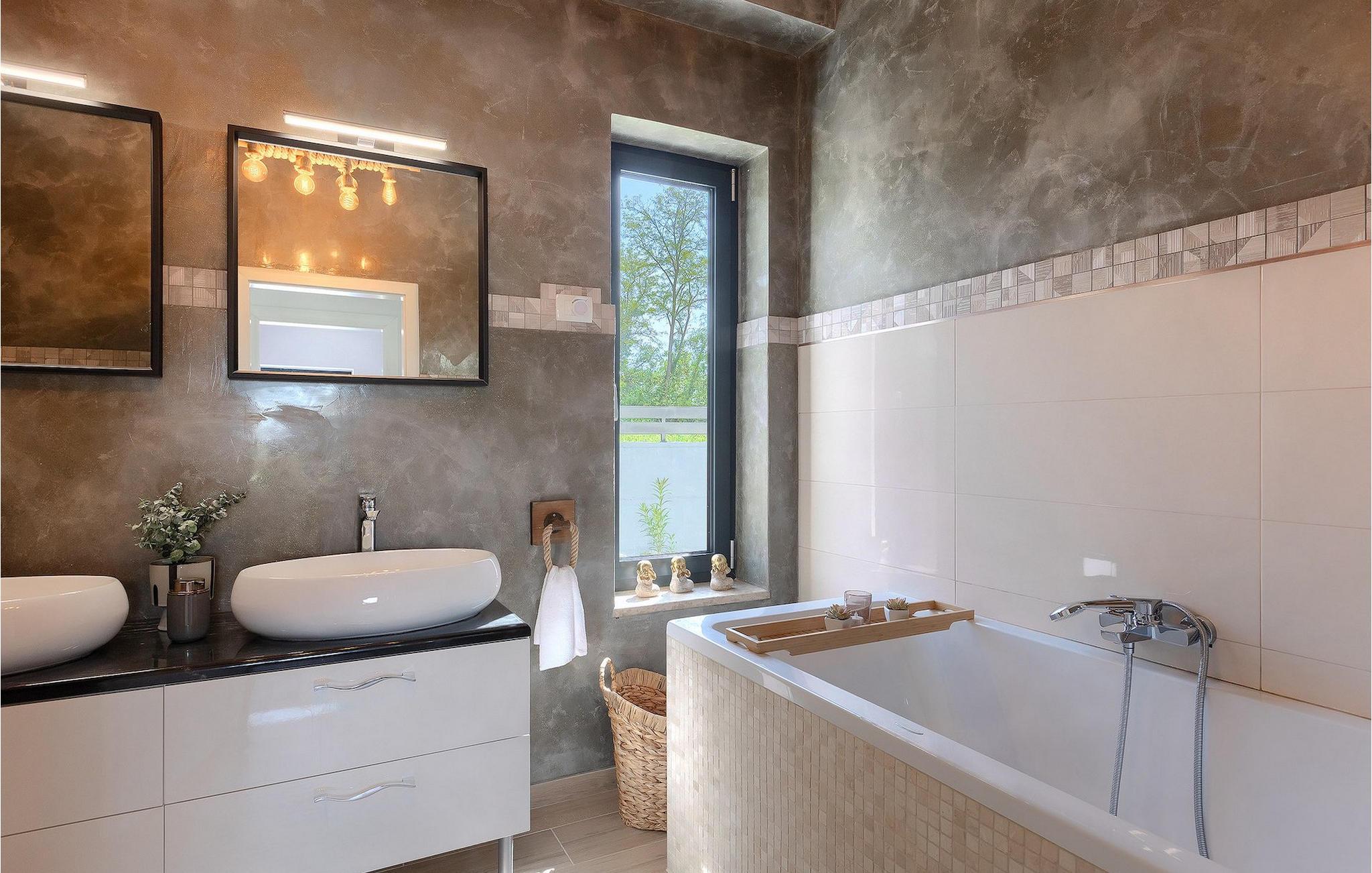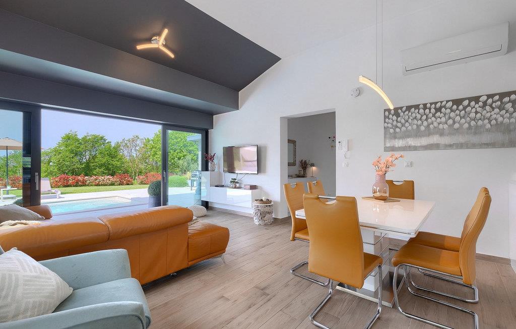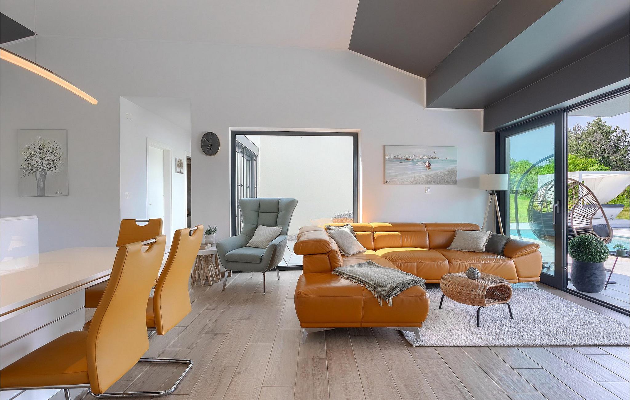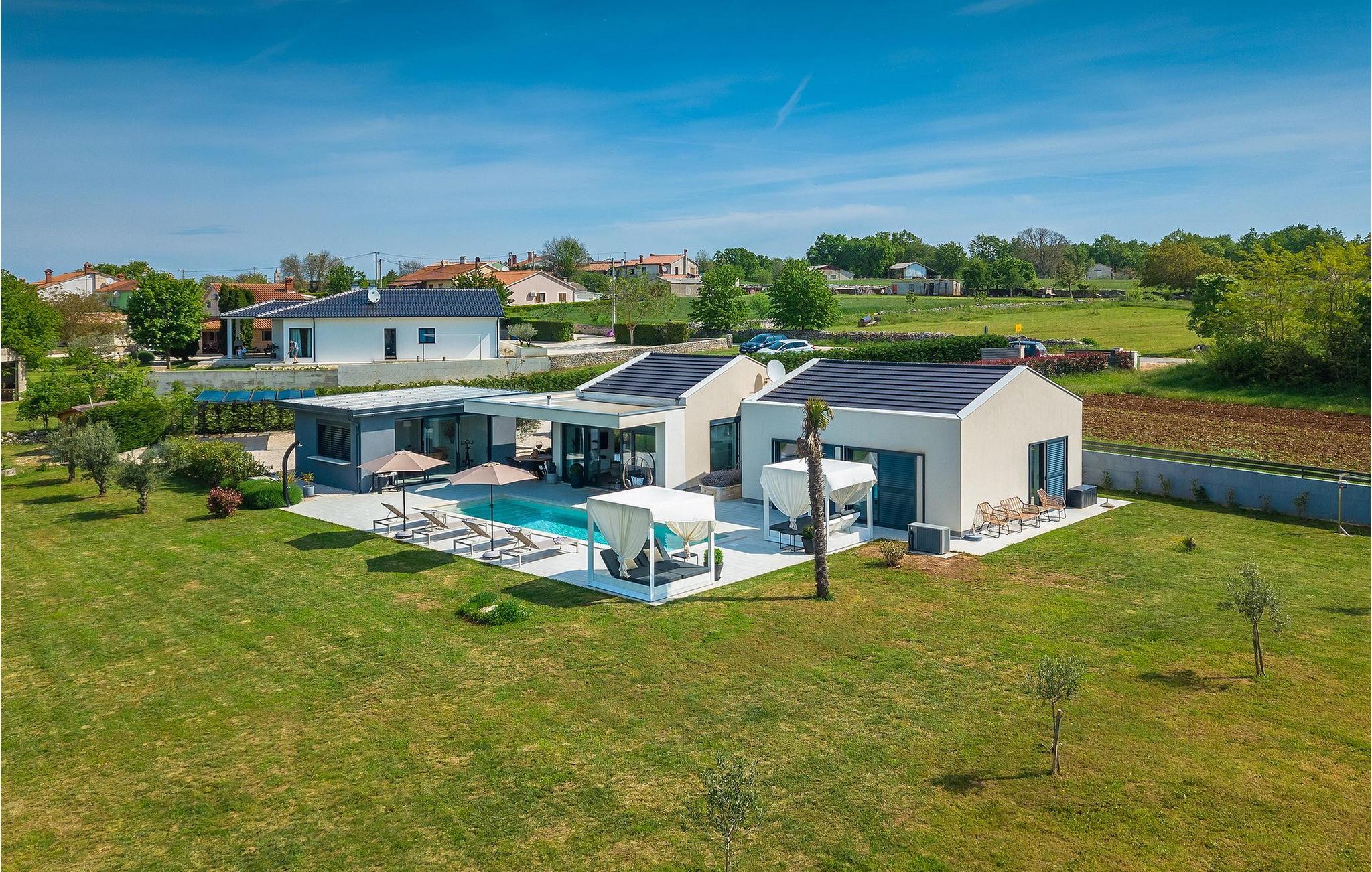 Nyd din ferie i den smukke, moderne indrettede Villa Mala Oaza beliggende i den lille by midt i de grønne bakker i det centrale Istrien. Denne en-etagers villa tilbyder overnatning til 6 gæster og er ideel til familieferier. I vil helt sikkert bruge meget tid sammen omkring den store, private pool. Mens du tilbereder måltider på grillen, kan børnene spille volleyball i den rummelige have. Med talrige havemøbler og liggestole byder haven på masser af plads til at slappe af, solbade eller bare slappe af i skyggen af parasollerne. Alle værelser er placeret i stueetagen. Det centrale rum til at komme sammen forbinder køkken, stue og spisestue i et åbent koncept. Dette varme-farvede område er indrettet med mange stilfulde detaljer og vidunderlige malerier. Køkkenet med en ø er fuldt møbleret og byder på god plads til madlavning. De store glasdøre åbner området op med udsigt til villaens indbydende pool. Udenfor finder du grillen og plads nok til at have en dejlig udendørs middag. Gangen fører til de smarte soveværelser med spændende tapeter, elegant indrettet med direkte udgang til haven. Hvert soveværelse råder over dobbeltsenge og klimaanlæg. Her kan du slappe af og planlægge din tur til Istriens magiske bagland. Den lille landsby Sv. Petar u Sumi er et roligt og afslappende sted, ikke langt væk fra det travle turistcenter Porec og Rovinj. De første købmandsforretninger ligger kun 1 km fra villaen, mens du kan finde større butikker inden for 5 km fra villaen. Selvom dette er en lille landsby, kan du her besøge smukke kirker (klosterkirken St. Peter og Paulus apostlen), fantastisk at se, hvis du er til arkitektur og mosaikker fra den gotiske periode. Du bør også besøge den nærliggende by Pazin. I hundreder af århundreder var Pazin den stærkeste Habsburg-fæstning i dette område og hovedkvarteret for den tidligere Pazin-hersker. Dette middelalderfort ("Kastel") er velbevaret, så du kan besøge det i dag. Det bliver brugt som et etnografisk museum i Istrien og museet for byen Pazin. Udforsk det istriske bagland gennem vandre- eller cykelture og prøv berømte specialiteter som trøfler.