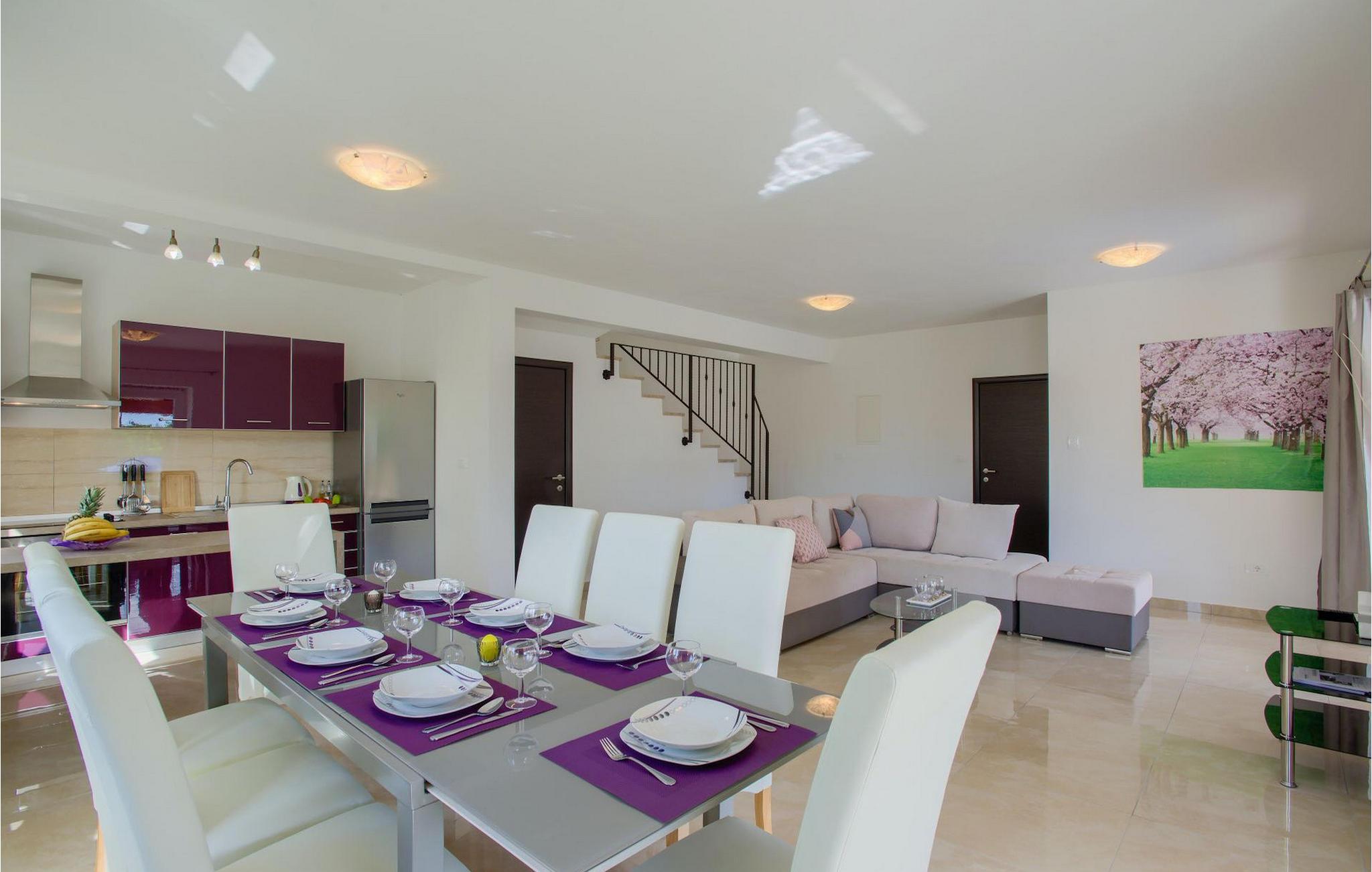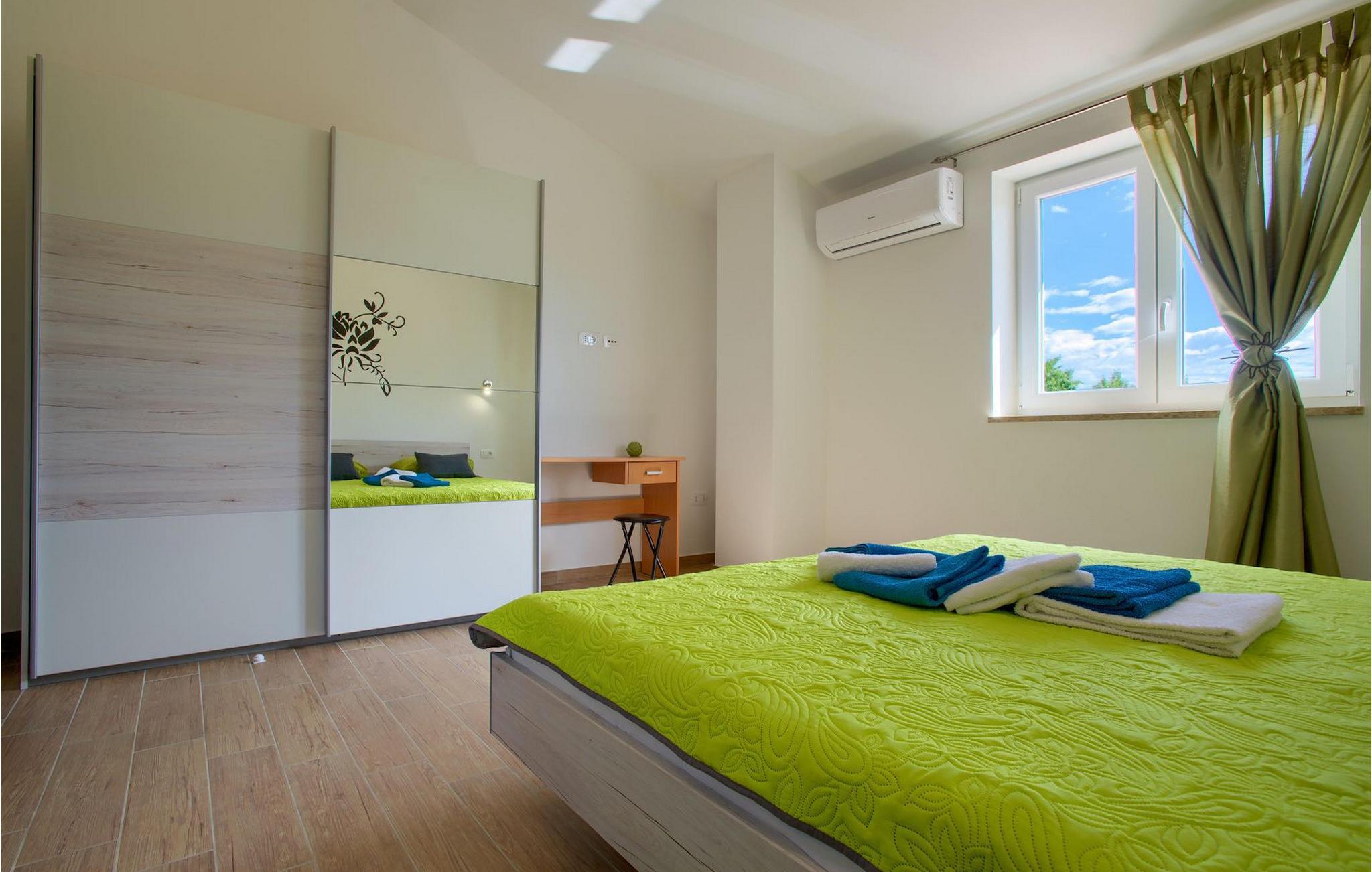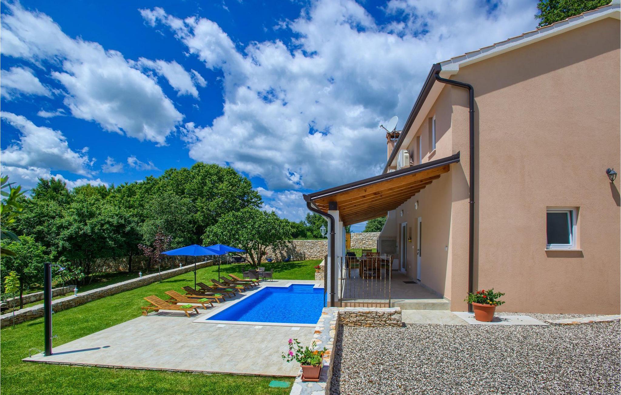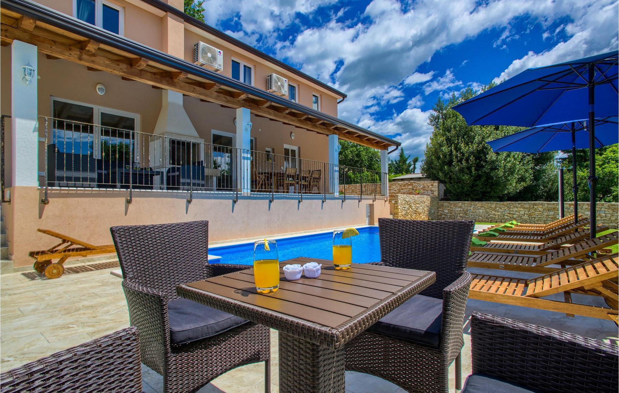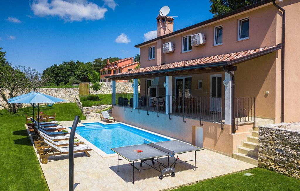 Hvis du gerne vil tilbringe din ferie i en villa med privat pool og en stor grøn have, kunne villa Samanta være et perfekt valg eller dig! Denne charmerende villa byder på fire soveværelser til otte personer, med mulighed for yderligere overnatning for to personer. Tre lyse soveværelser er placeret på første sal. Alle værelser har dobbeltseng, eget badeværelse og aircondition. I stueetagen finder du endnu et soveværelse med aircondition og to enkeltsenge samt et ekstra badeværelse. Der er også en komfortabel stue med tv og en sovesofa, som er forbundet med spisepladsen og det fuldt udstyrede køkken. Hele dette område har aircondition. Fra stuen og spisepladsen er der udgang til en overdækket terrasse med udsigt over poolen. På terrassen er der et spisebord, en grill og et opholdsområde. Poolen med liggestole er omgivet af en smuk grøn have. Hvis du leder efter en aktivitet, kan du more dig med at spille bordtennis ved poolen. De gæster, der ønsker at gemme sig i skyggen, kan slappe af i havens gynge under træet, som har udsigt til poolen. I den nederste del af haven finder du en grøn oase for vores yngre gæster, som kan hygge sig på et gyngestativ, eller spille badminton, volleyball eller fodbold. Villa Samanta er fuldt indhegnet, har privat parkering til fire biler (2 er lukkede, 2 er uden for hegnet) og giver alt hvad du behøver til en afslappende og uforglemmelig familieferie. perfekt tilbagetog fra et moderne livs hastværk. Det centrale Istrien, kendt for sine bakketopbyer og smukke landskab, er ideel til at køre bil, cykle og gå. Strande og Istriens turist- og historiske centre, såsom Porec, Rovinj og Pula, ligger kun en kort køretur fra villaen. Porec turisme er mere end hav og sol. Her kan du finde museer, gallerier og mange værdifulde bypaladser. Hele den gamle bykerne er et levende kulturminde. Porecs gader er hjemsted for adskillige ateliergallerier og udstillingsrum, som plejer traditionen på en moderne måde med deres udstillinger. En god måde at lære Istrien at kende på er gennem dens enestående gastronomi. Smagssymfonierne i istrisk mad kommer til at vække alle dine sanser. Istrien er et land med lækker mad, men den gastronomiske perle er uden tvivl trøflen.