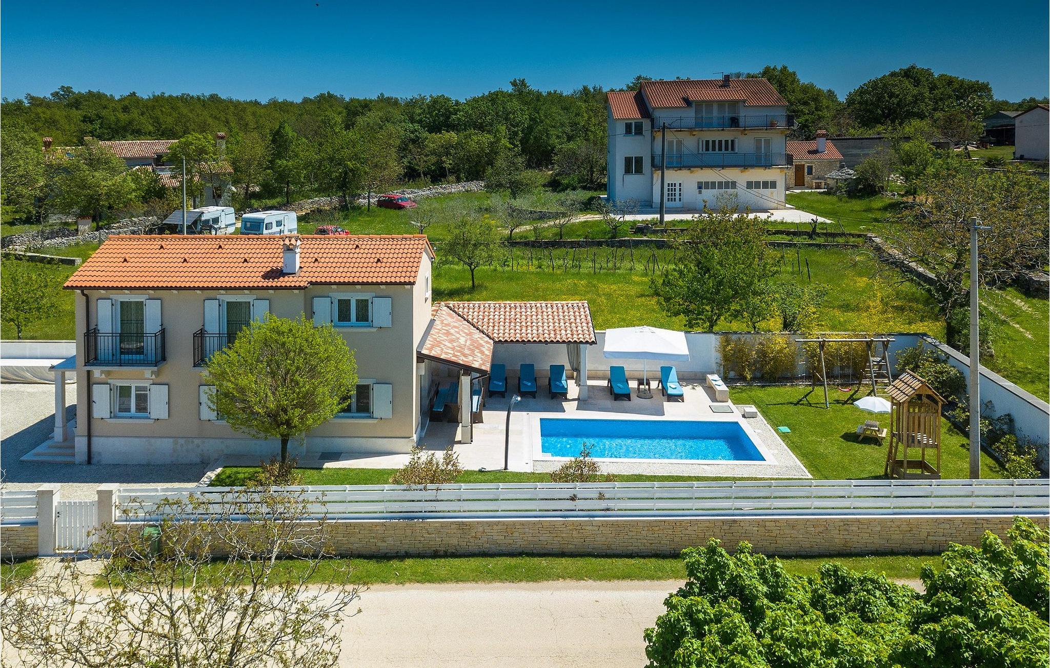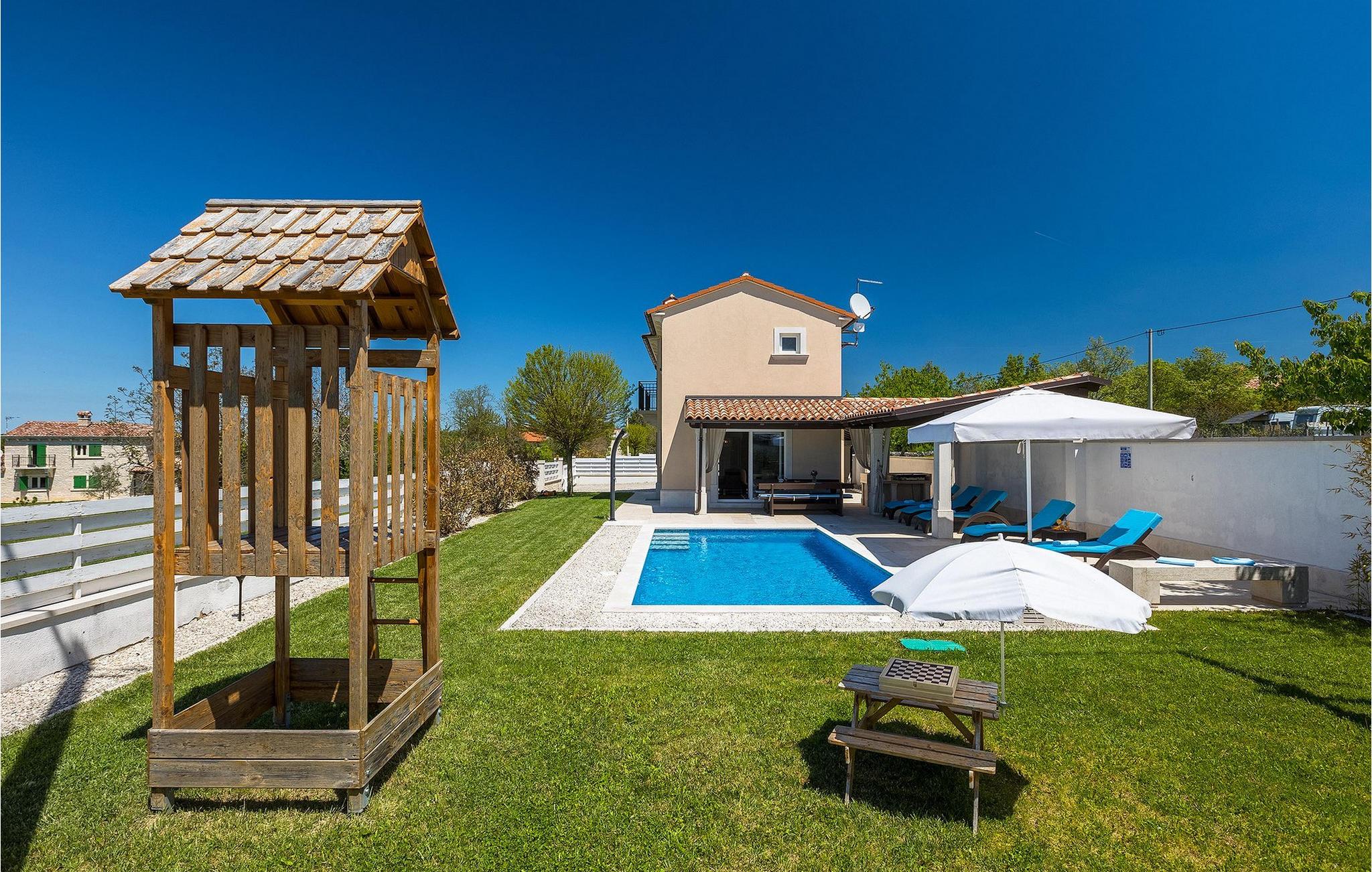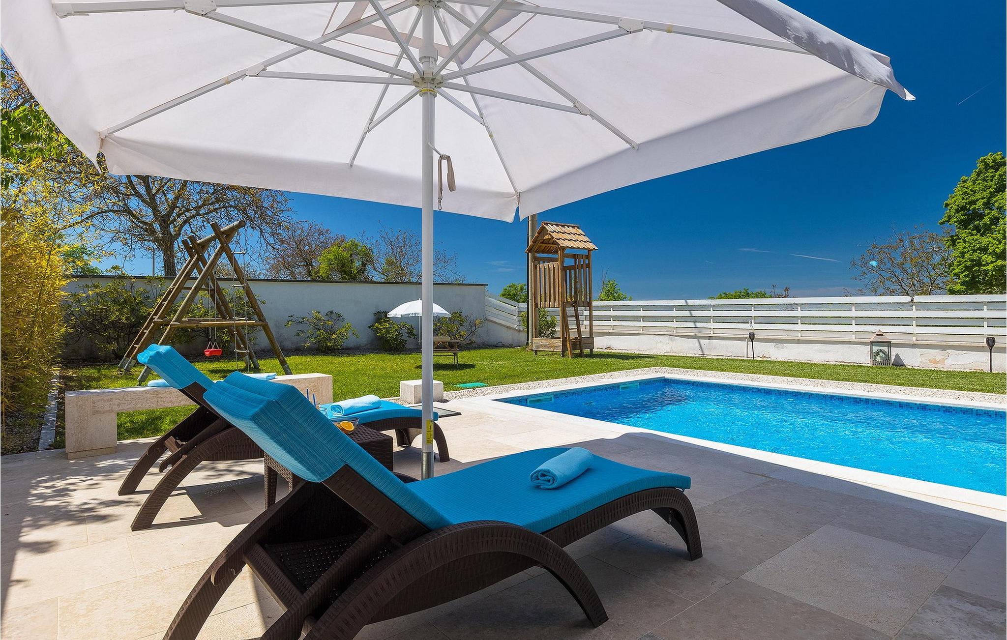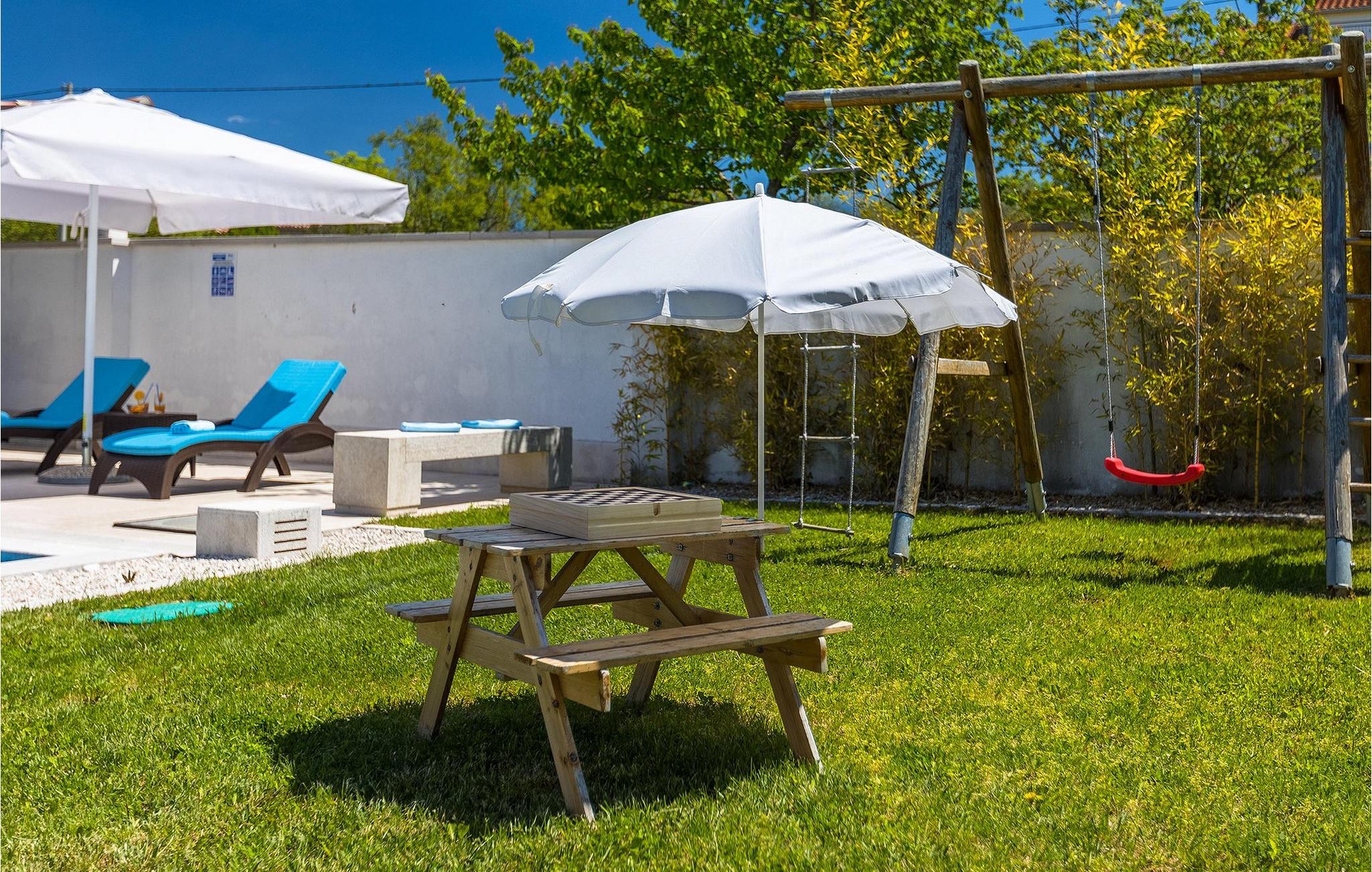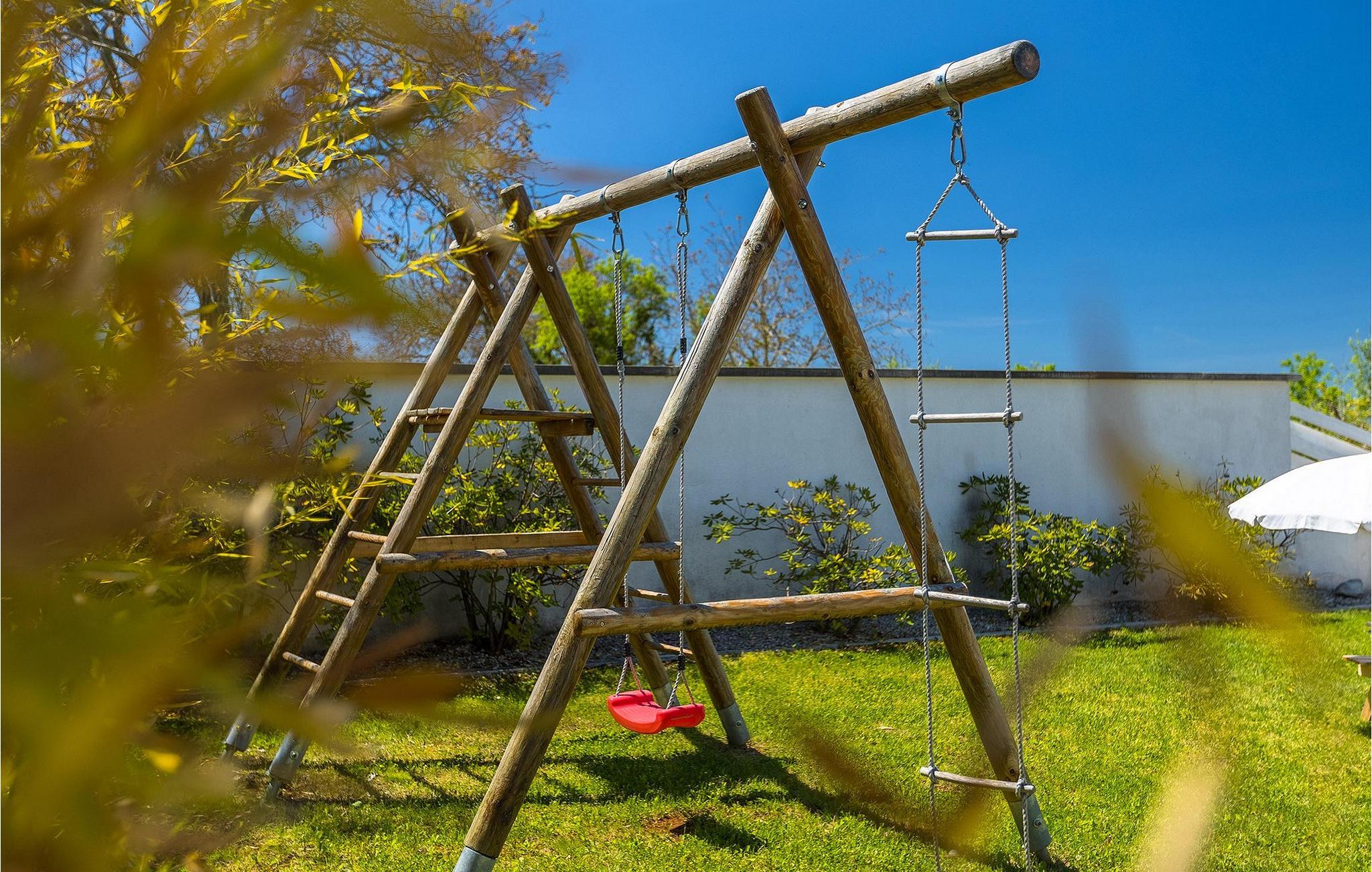 Den Jüngsten wird sicherlich der Kinderspielplatz im Garten der Villa gefallen, auf dem sie spielen können, wenn sie nicht im Pool schwimmen. :)