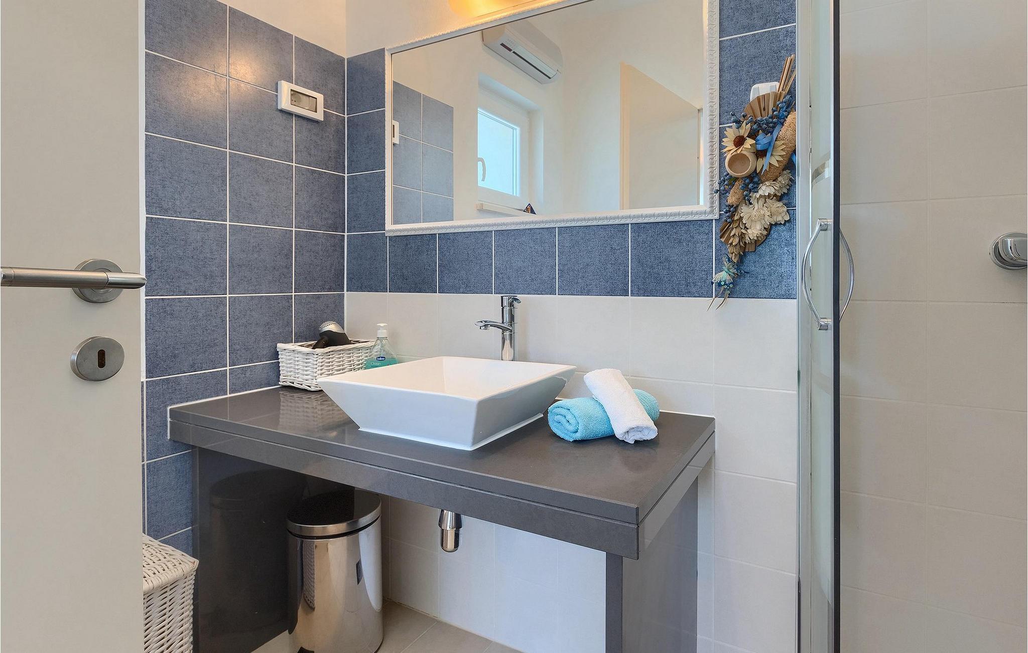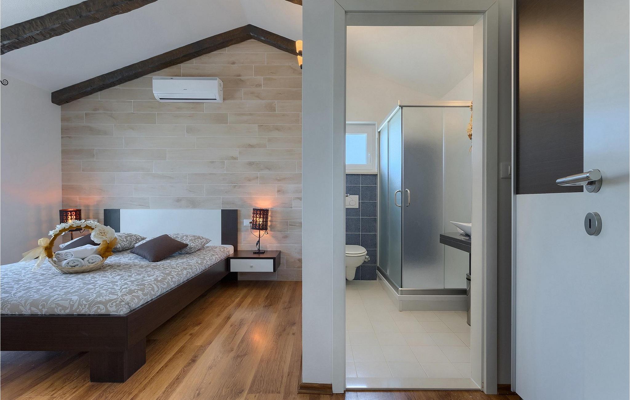 Die 3 Schlafzimmer befinden sich im ersten Stock, ebenso wie 2 Badezimmer. Alle Schlafzimmer sind mit einem Doppelbett ausgestattet und in einem Schlafzimmer befindet sich ein Zustellbett für eine Person.