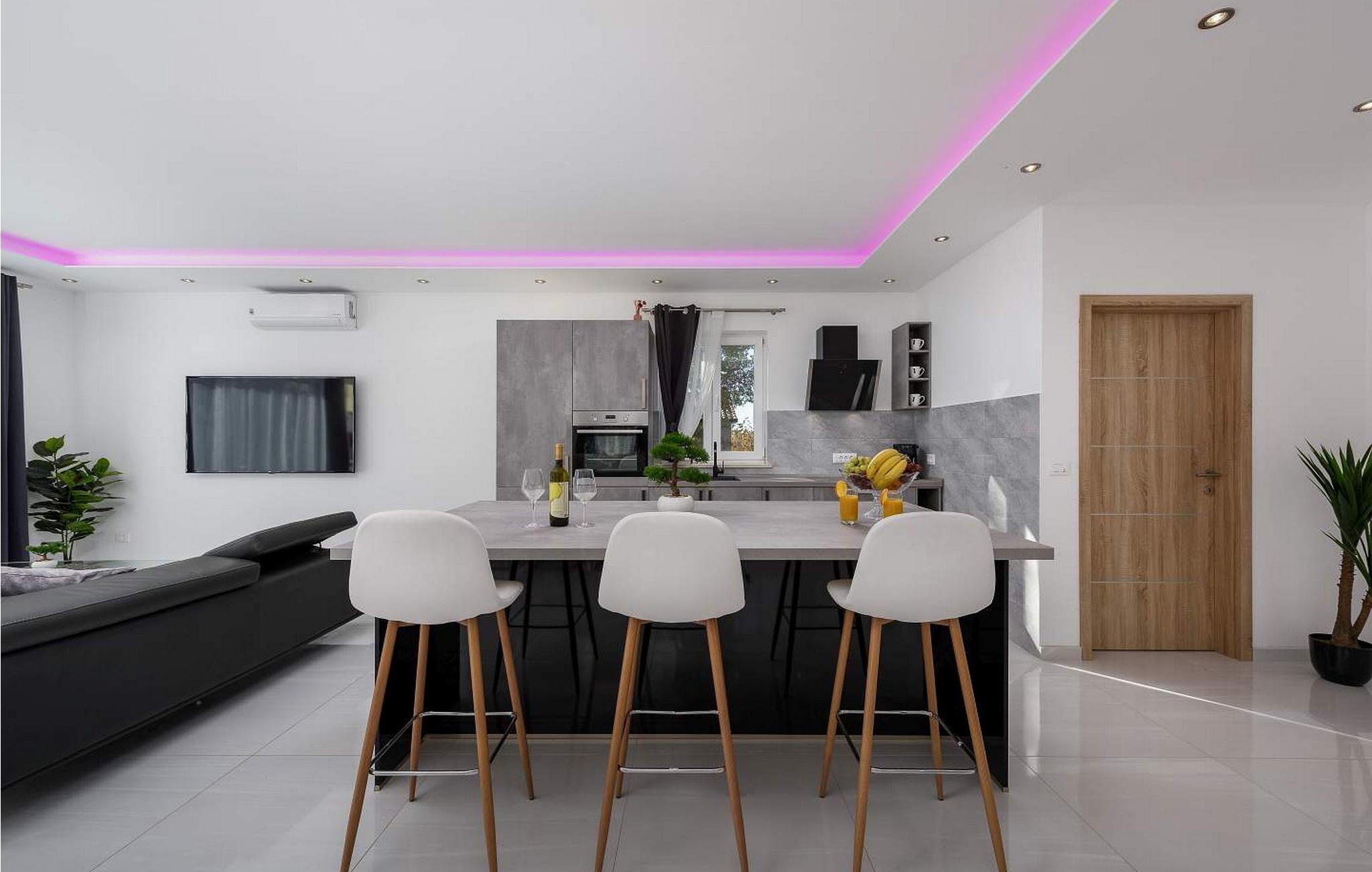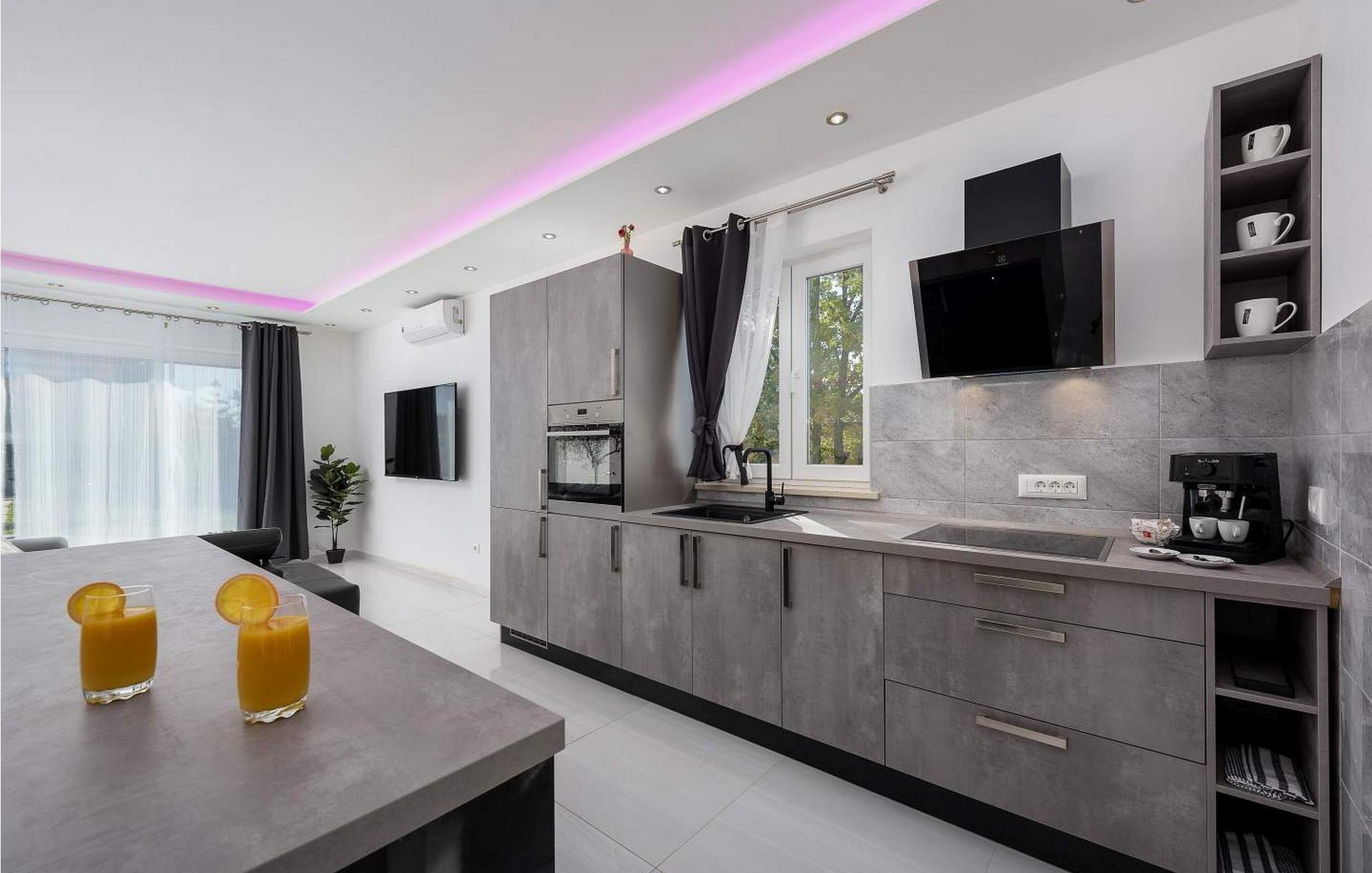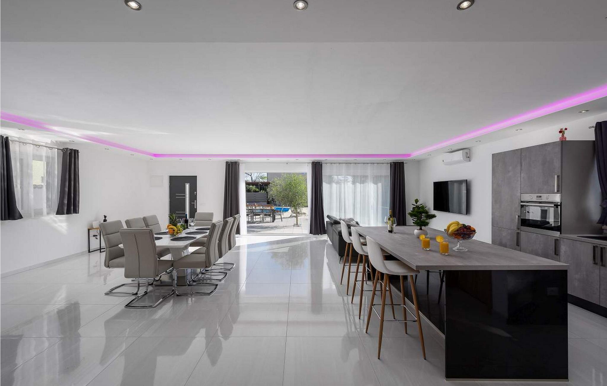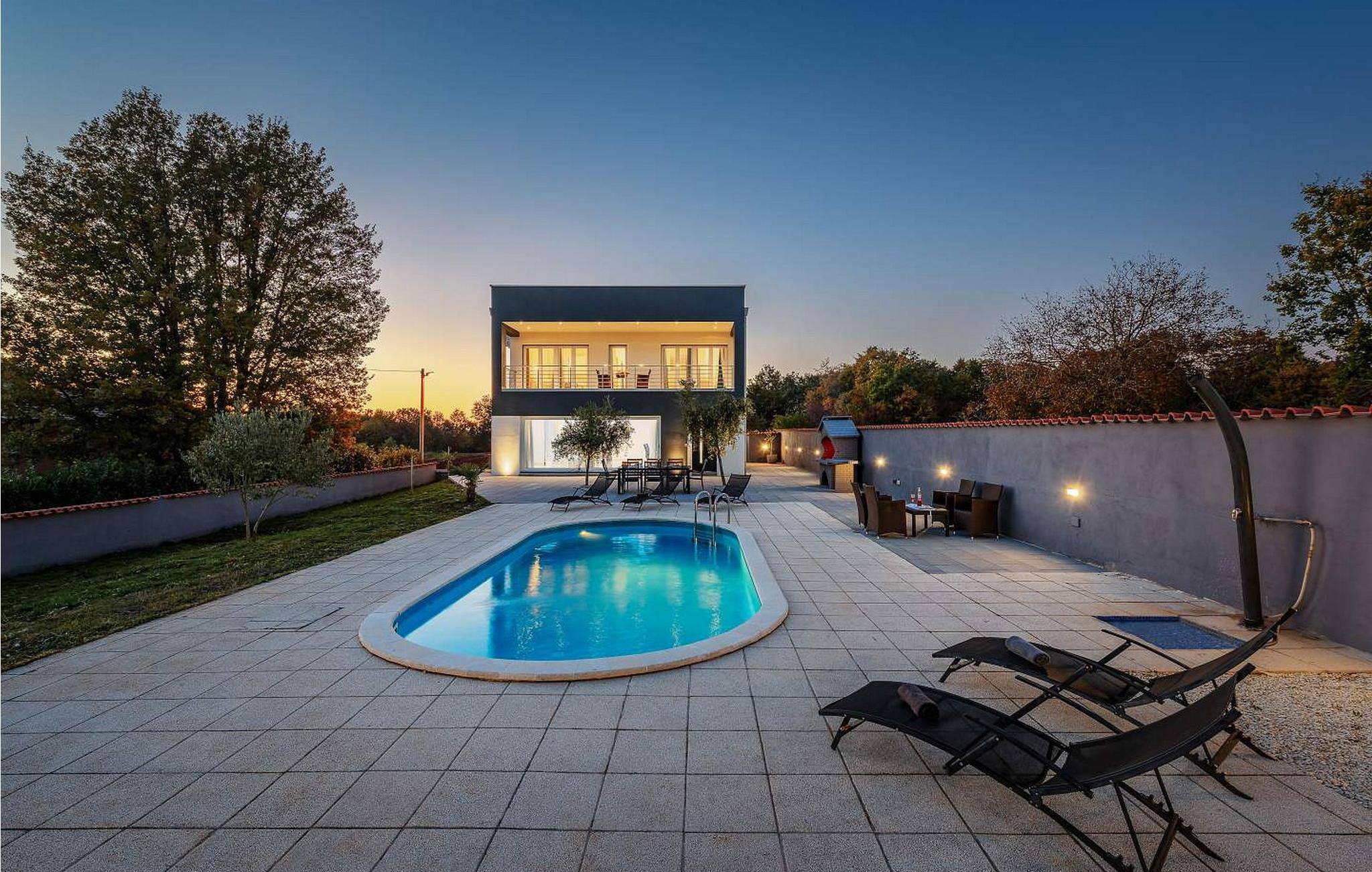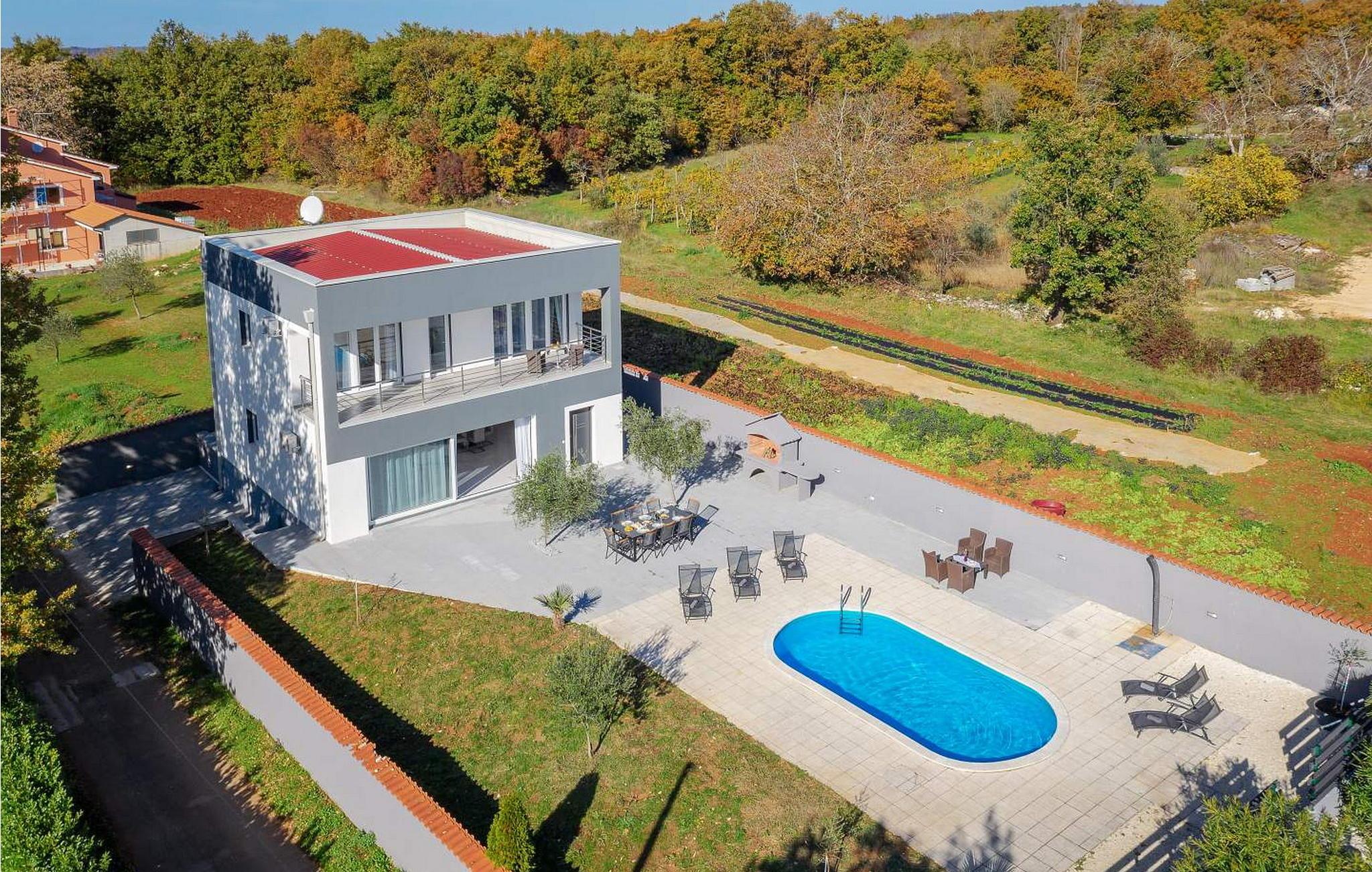 Villa Bella Area er et moderne feriehus med swimmingpool i det centrale Istrien. På egen ejendom har gæsterne pool, bord og stole, pejs, liggestole og to parkeringspladser til deres rådighed. Feriehuset ligger på stedet Sveti Petar u Sumi, berømt for et kloster fra det XII århundrede og for de traditionelle pølser, du kan prøve i en af de traditionelle taverner i området. Byen Pazin ligger 9 km væk, og de populære turistbyer Rovinj og Pore er omkring 25 km væk. Villa med pool på 175 kvm strækker sig over to etager med aircondition. I stueetagen er der en rummelig stue med siddegruppe, spisestue og udstyret køkken, separat toilet. På første sal er der tre soveværelser, hver med dobbeltseng og satellit-tv, der er også et badeværelse og en balkon. Bemærk venligst, at denne ejendom ikke accepterer ungdomsgrupper eller polterabends. En ungdomsgruppe på denne ejendom er en gruppe bestående af personer på 26 år eller derunder. Book ikke denne ejendom, hvis du er en ungdomsgruppe eller et polterabend, da din reservation vil blive afvist efter booking, hvilket kan omfatte ved ankomst til ejendommen eller under dit ophold, og du vil ikke blive refunderet.