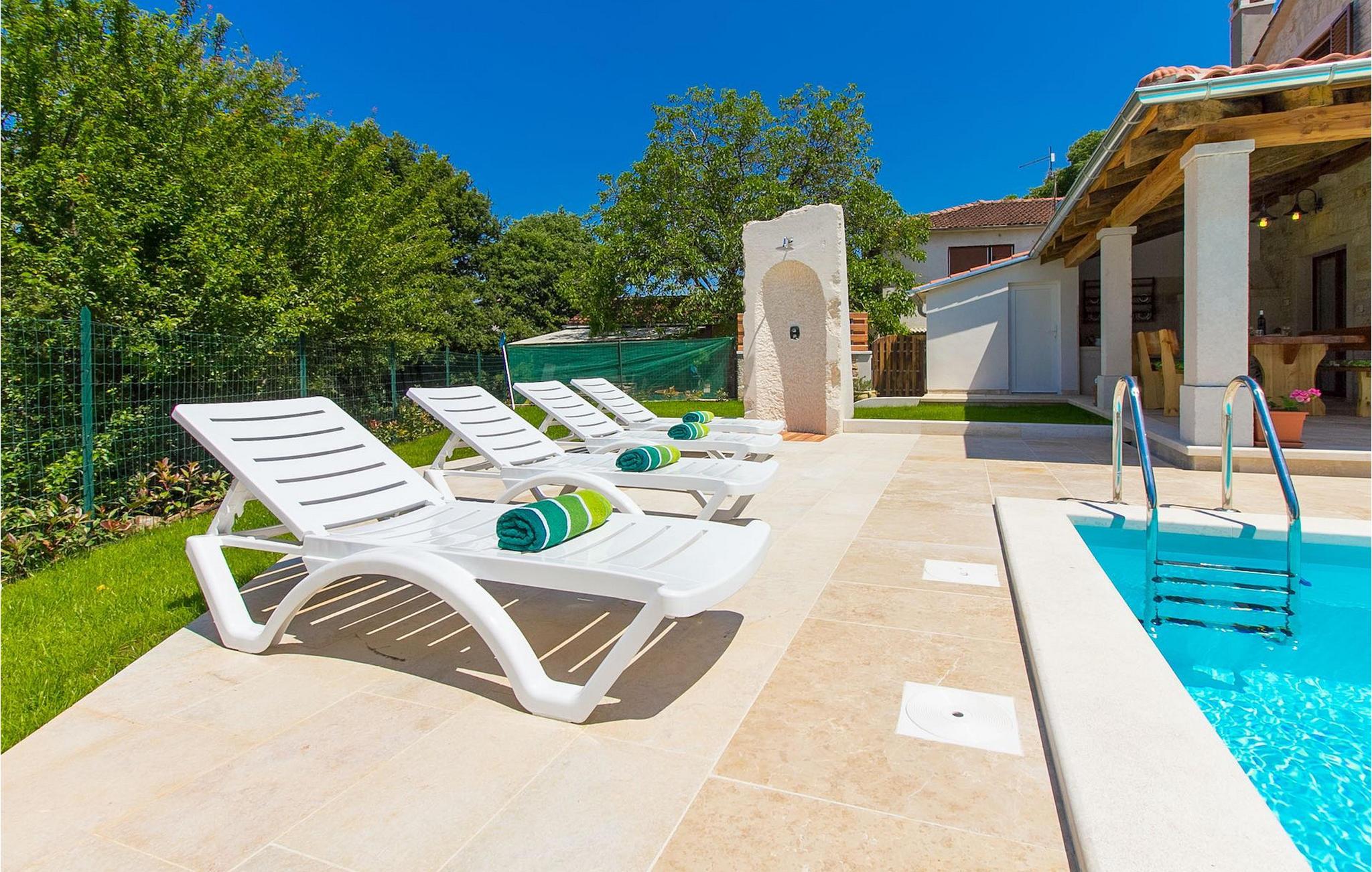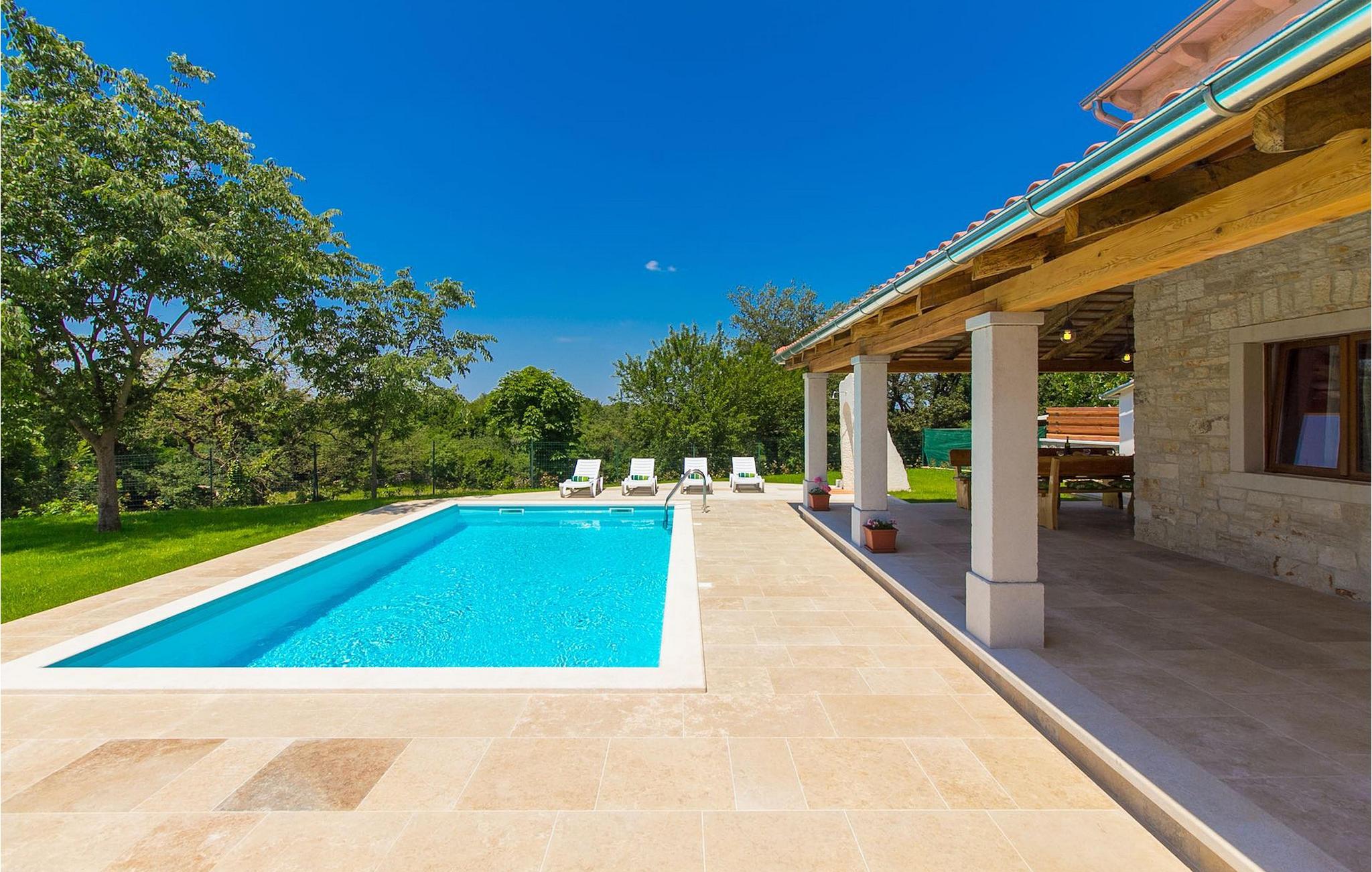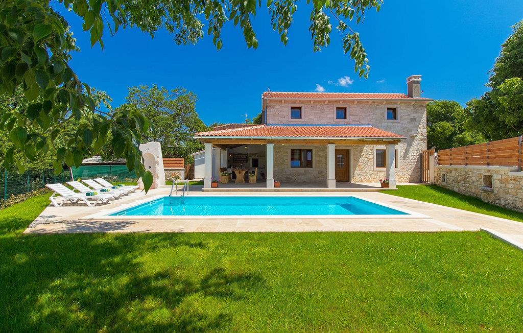 Den smukke familievilla Ladonja ligger i Sveti Petar u Šumi, en meget malerisk landsby i det centrale Istrien. Den charmerende villa er nedsænket i det grønne i det landlige Istrien, hvor du helt sikkert kan nyde en afslappende ferie med din familie og stadig være tæt på alle turistdestinationer. Denne fuldt indhegnede villa har en swimmingpool, hvor du kan svømme og forfriske dig på varme sommerdage, eller du kan solbade på liggestolene og nyde solens stråler. Ønsker I at tilberede frokost til jeres familie i det fri, er der grill, terrasse og overdækket spiseplads til jeres rådighed. Når du træder ind i villaen i stueetagen, er der et fuldt udstyret og moderne køkken, der har alt hvad du behøver for at tilberede en række delikatesser, en spiseplads og en stue. På første sal er der to soveværelser med hver sit badeværelse. Villa Ladonja har Wi-Fi internet og privat parkering til to biler. Book din villa til tiden og nyd en fredelig grøn oase med din familieVilla Ladonja er beliggende i den lille istriske by kaldet Sveti Petar u Šumi, i det centrale Istrien. Det er roligt og afslappende, men alligevel er det travle turistcenter Porec og Rovinj med deres strande og krystalklare Adriaterhav og seværdigheder kun en kort køretur væk. Det centrale Istrien er kendt for et landskab af små, maleriske middelalderbyer, der minder om Toscana eller Provence. Det byder også på rester af kulturarv. Istrien med sine cykelveje er perfekt cykeldestination. Vejforbindelserne er fremragende med adgang til en hurtig motorvej til Pula eller Trieste lufthavne.
