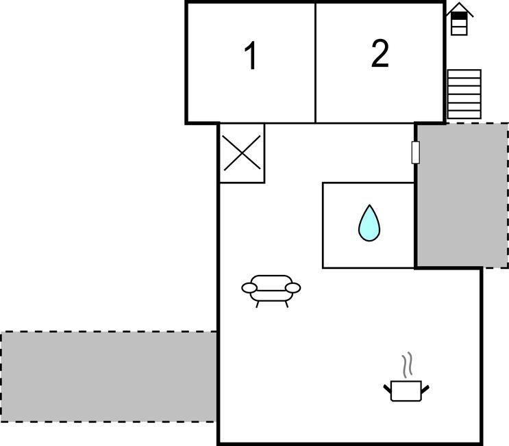Opholdsstue/køkken - 2 Sovepladser. (Sofa, madras eller lignende).