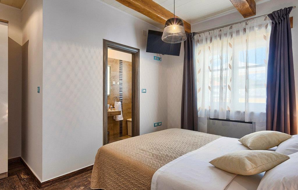 Beliggende i byen Pazin tilbyder den charmerende nybyggede Villa Patrick et roligt, fredeligt miljø i hjertet af Istrien. Villaen er fuldstændig indhegnet og tilbyder fuldstændig privatliv. Du kan prøve zip-linjen, Pazincica åen, hvor du også kan svømme på varme sommerdage, prøve mange kirker, naturparker osv. Villaen har plads til 8 personer og har 4 en-suite soveværelser og et ekstra badeværelse i stueetagen. Hele villaen har gulvvarme, og hvert værelse har aircondition for at gøre dit ophold så behageligt som muligt uanset årstiden. Køkkenet er fuldt udstyret med alle nødvendige hvidevarer og er forbundet med stuen, hvor du kan slappe af ved pejsen og have udsigt til terrassen med privat pool. Uden for villaen er der også en legeplads med trampolin og rutsjebane til børnene, mens de voksne kan nyde deres tid med at tilberede måltider ved pejsen ved poolen. Alle villagæster modtager en velkomstpakke ved ankomsten for at gøre deres ophold i denne villa endnu mere behageligt. Der kan højst bo 8 personer + 2 personer mere i villaen, men mod et ekstra gebyr på 50 € per person hele året rundt.