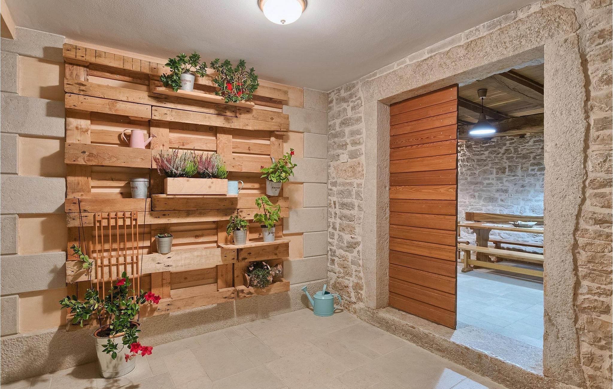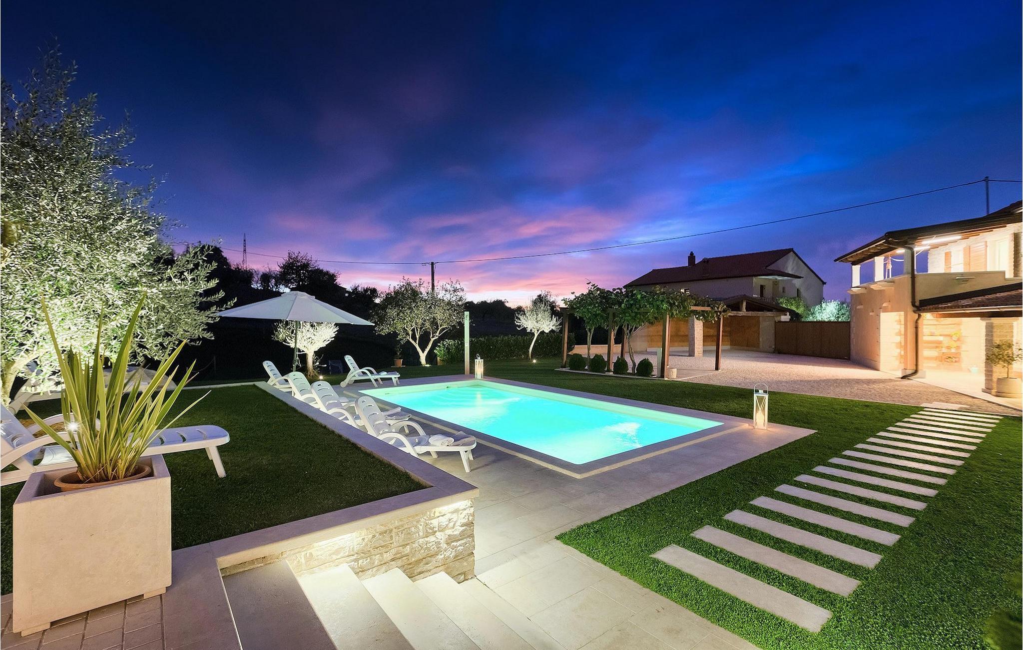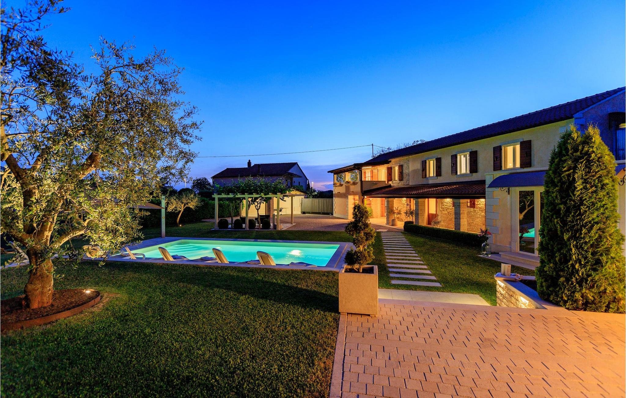 Kan du forestille dig noget mere behageligt end at slappe af på en terrasse under den blå himmel, med en betagende udsigt, der strækker sig over det maleriske istriske landskab, kendt for sine endeløse grønne marker og vinmarker? Er det lige præcis den slags ferie, du ønsker, så er Villa Viscum det perfekte hus for dig. Der blev lagt en masse omtanke og omhu i at holde denne villa i harmoni med den omgivende natur, men alligevel gøre den både komfortabel og funktionel. Villaen består af 3 soveværelser og 2 badeværelser, hvoraf det ene er ensuite. Tilbring din ferie i Istrien med at svømme eller dyppe i poolen, mens den varme kroatiske sol fylder batterierne op. Vil du holde en mere aktiv ferie, står villaens private idrætsplads til rådighed, hvor du kan tilbringe tid med venner og familie til volleyball, fodbold eller badminton. Efter en aktiv dag er den perfekte ting at gøre at gøre brug af grillen og den udendørs terrasse, hvor du kan nyde nogle af de bedste kroatiske kulinariske specialiteter. Villa Viscum ligger i et fredeligt og roligt område med udsigt over vinmarker, landsbyer og bondegårde spredt ud over de maleriske bølgende bakker med den smukke sø Butoniga som baggrund. Den stolte middelalderby Pazin ligger dog kun 4 km væk. Bygget på stejle klipper med udsigt over den mægtige dybe kløft, har det altid været genstand for historier, legender og interesser. Sådanne bemærkelsesværdige landskaber har inspireret den berømte franske forfatter Jules Verne, såvel som mange andre kroatiske forfattere, så du vil bestemt ikke lade dig uinspireret. Det kan prale af det bedst bevarede slot i Istrien, en massiv bygning, hvorfra hele Istrien engang blev styret. Slottet er nu et museum, som blandt andet opbevarer gamle istriske klokker. Neden for slottet falder floden Pazincica, mens den velkendte Pazin Chasm stadig holder på sine hemmeligheder. Grotten med sine imponerende søer er stadig en udfordring for speleologer, mens hele området bugner af smukke naturlige mesterværker af vandfald, vandløb og fordybninger. Udover masser af historiske og kulturelle seværdigheder, exceptionelt traditionelt køkken, fremragende Malvasia og hjemmelavet grappa, tilbyder Pazin og dens omgivelser varierede steder for en aktiv ferie. Sports- og eventyrentusiaster vil finde masser af aktiviteter: ziplining, bjerg- og rekreationscykling, et stort antal vandre- og vandrestier omgivet af smukke naturfænomener og næsten glemte gamle kirker og paladser. Der er også berømte steder for fri klatring, imponerende speleologiske ture, fiskeri i ferskvand, mens hele dette attraktive område kan besøges ved at ride på hesteryg og lære skattene i det tidligere Pazin-amt tæt at kende. Den attraktive Adriaterhavskyst er let tilgængelig ad fremragende veje.