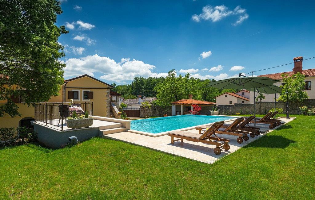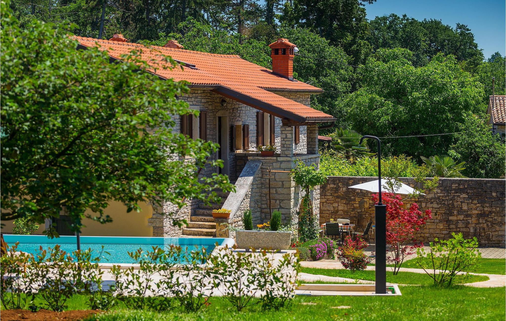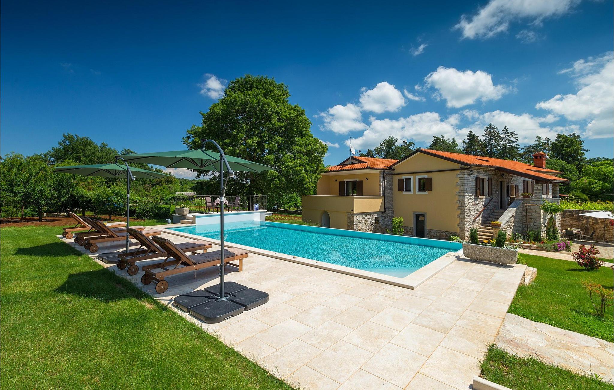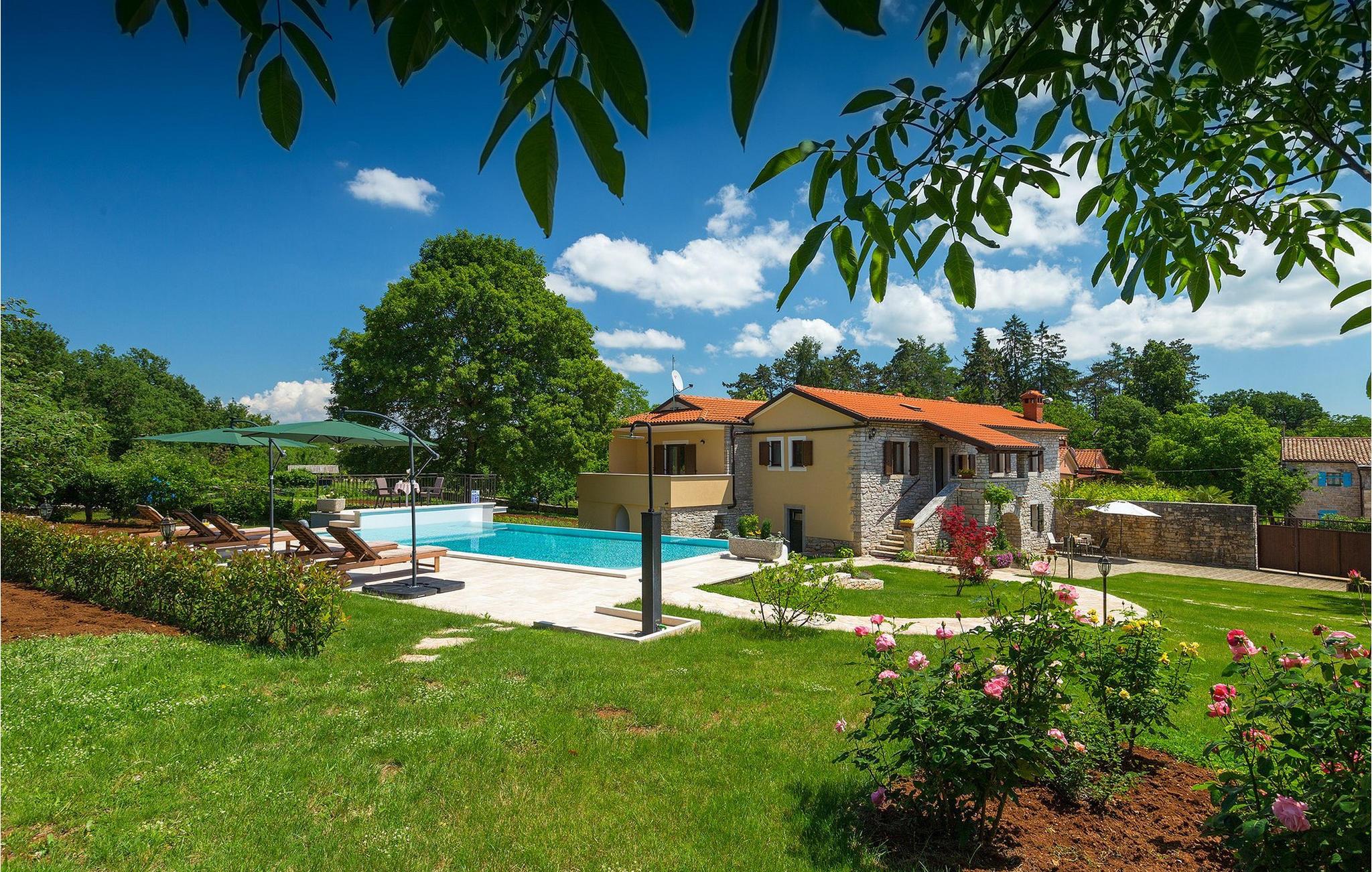 Wunderschöne Villa Sany, gelegen im Herzen Istriens, ist die ideale Wahl für diejenigen, die von einem entspannenden Urlaub träumen. Rustikale Steinvilla hat einen privaten, großen und sorgfältig gepflegten Garten, wo die jüngsten Gäste rumlaufen können, währen der Rest der Gruppe die Sonne am Pool genießt. Neben dem Pool mit Hydromassage befindet sich eine Außenküche mit Grill, wo Sie lokale Spezialitäten zubereiten und im Freien essen können, während Sie vom Duft des Mittelmeers umgeben sind. Das Innere der Villa ist wurde mit Liebe eingerichtet. Alle Räume befinden sich auf dem ersten Stock. Das Erdgeschoß wird nicht vermietet. Zur Verfügung stehen Ihnen 3 Schlafzimmer, das gemütliche Wohnzimmer und die komplett ausgestattete Küche mit Essbereich. Mit 3 Schlafzimmern, die Villa kann bis zu 6 Personen beherbergen. Eines der Schlafzimmer hat sogar eine eigene Terrasse mit Blick auf den Pool-Bereich und den Garten. Die Villa ist klimatisiert, hat WiFi und 3 Parkplätze.Atemberaubende Villa Sany befindet sich inmitten von Zentralisten und ist von wunderschöner, friedlicher Natur umgeben. Nur eine kurze Fahrt von der Villa entfernt finden Sie das Schloss von Pazin und die Höhle von Pazin, wo Sie die bekannteste Zipline - Fahrt in Kroatien ausprobieren können. In der Nähe gibt es auch einen Reitklub und einen Kinderspielplatz. Von Pazin sind die Küstenstädte in Istrien leicht erreichbar - Poren und Rovinj an der Westküste und Pula im Süden der Halbinsel. In Zentralistrien können Sie die zahlreichen kleinen, mittelalterlichen Städte besuchen und traditionelle Spezialitäten ausprobieren, wobei Sie gleichzeitig einen schönen Blick auf die Umgebung genießen, die unwiderstehlich an Toskana oder Provence erinnert. Istrien ist für seine Küche bekannt - berühmter istrischer Schinken, Schweinefilet und Wurst haben einen speziellen Geschmack und Duft, während Fisch und Meeresfrüchte aus dem idyllischen Archipel stammen. Zentralisten ist ideal für Radfahren und Wandern.