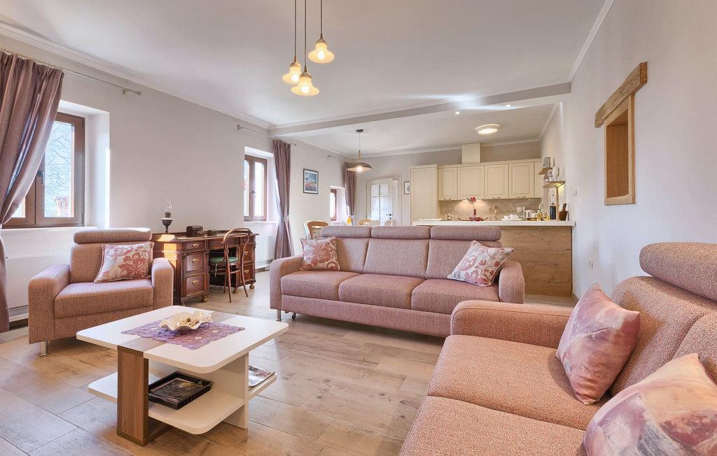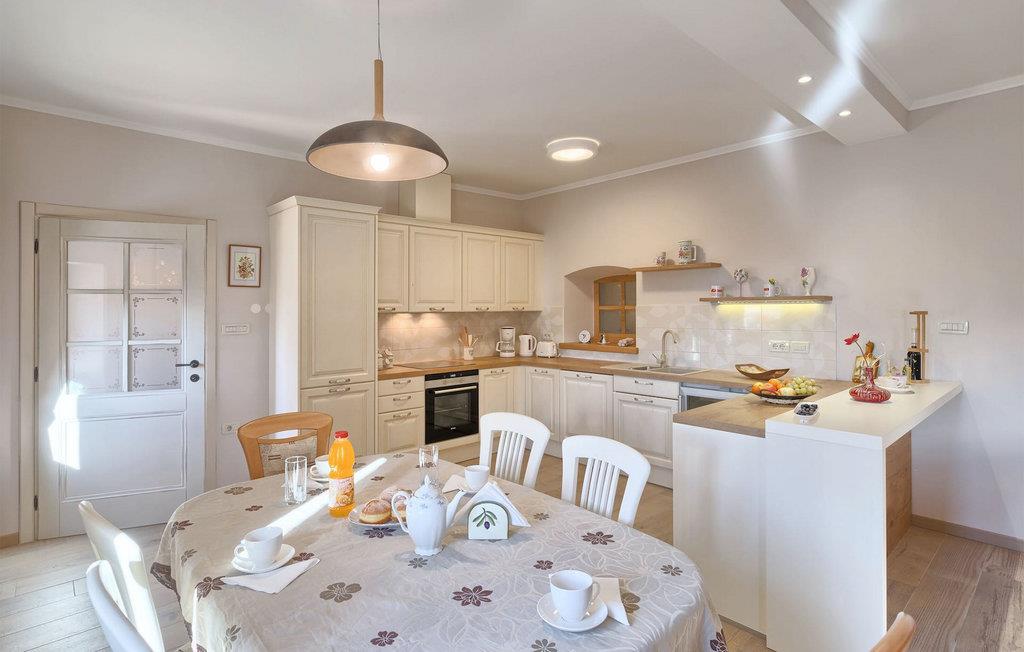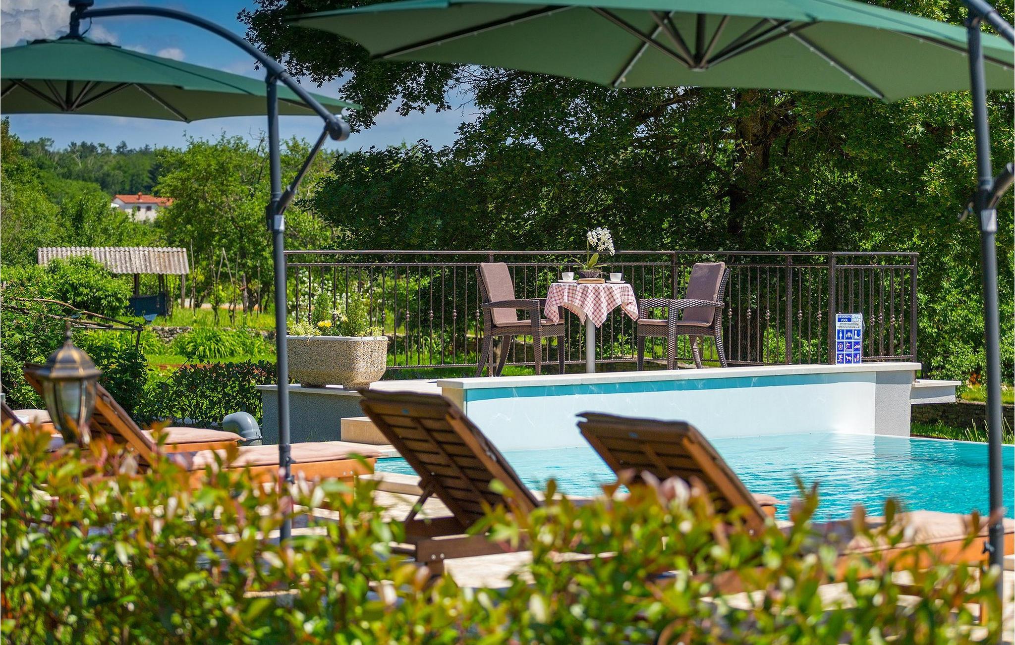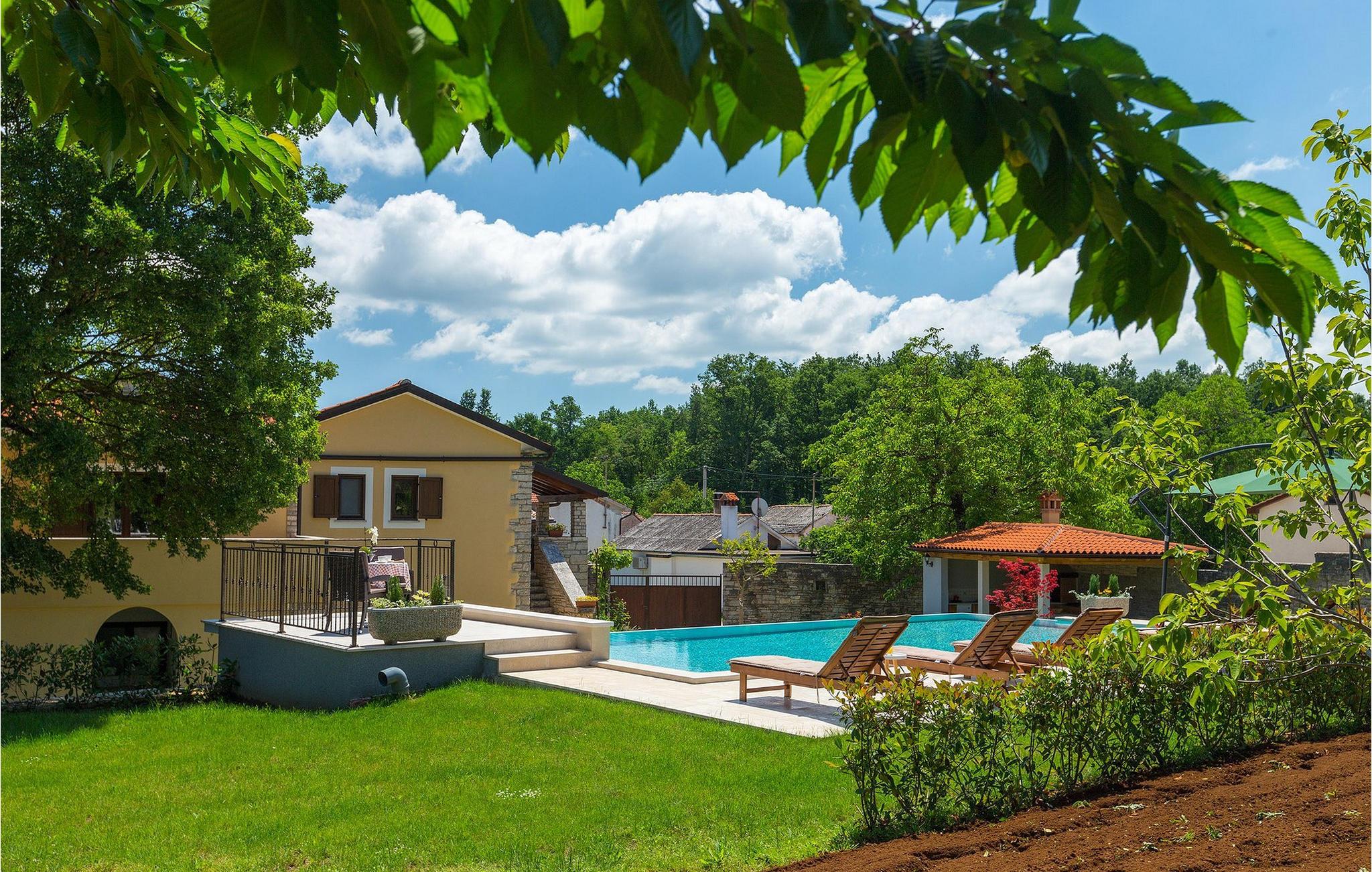 Wunderschöne Villa Sany, gelegen im Herzen Istriens, ist die ideale Wahl für diejenigen, die von einem entspannenden Urlaub träumen. Rustikale Steinvilla hat einen privaten, großen und sorgfältig gepflegten Garten, wo die jüngsten Gäste rumlaufen können, währen der Rest der Gruppe die Sonne am Pool genießt. Neben dem Pool mit Hydromassage befindet sich eine Außenküche mit Grill, wo Sie lokale Spezialitäten zubereiten und im Freien essen können, während Sie vom Duft des Mittelmeers umgeben sind. Das Innere der Villa ist wurde mit Liebe eingerichtet. Alle Räume befinden sich auf dem ersten Stock. Das Erdgeschoß wird nicht vermietet. Zur Verfügung stehen Ihnen 3 Schlafzimmer, das gemütliche Wohnzimmer und die komplett ausgestattete Küche mit Essbereich. Mit 3 Schlafzimmern, die Villa kann bis zu 6 Personen beherbergen. Eines der Schlafzimmer hat sogar eine eigene Terrasse mit Blick auf den Pool-Bereich und den Garten. Die Villa ist klimatisiert, hat WiFi und 3 Parkplätze.Atemberaubende Villa Sany befindet sich inmitten von Zentralisten und ist von wunderschöner, friedlicher Natur umgeben. Nur eine kurze Fahrt von der Villa entfernt finden Sie das Schloss von Pazin und die Höhle von Pazin, wo Sie die bekannteste Zipline - Fahrt in Kroatien ausprobieren können. In der Nähe gibt es auch einen Reitklub und einen Kinderspielplatz. Von Pazin sind die Küstenstädte in Istrien leicht erreichbar - Poren und Rovinj an der Westküste und Pula im Süden der Halbinsel. In Zentralistrien können Sie die zahlreichen kleinen, mittelalterlichen Städte besuchen und traditionelle Spezialitäten ausprobieren, wobei Sie gleichzeitig einen schönen Blick auf die Umgebung genießen, die unwiderstehlich an Toskana oder Provence erinnert. Istrien ist für seine Küche bekannt - berühmter istrischer Schinken, Schweinefilet und Wurst haben einen speziellen Geschmack und Duft, während Fisch und Meeresfrüchte aus dem idyllischen Archipel stammen. Zentralisten ist ideal für Radfahren und Wandern.