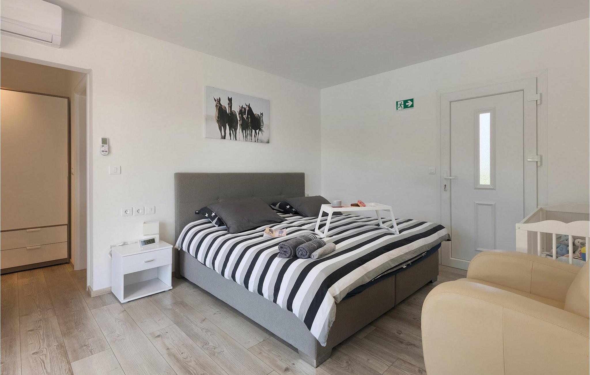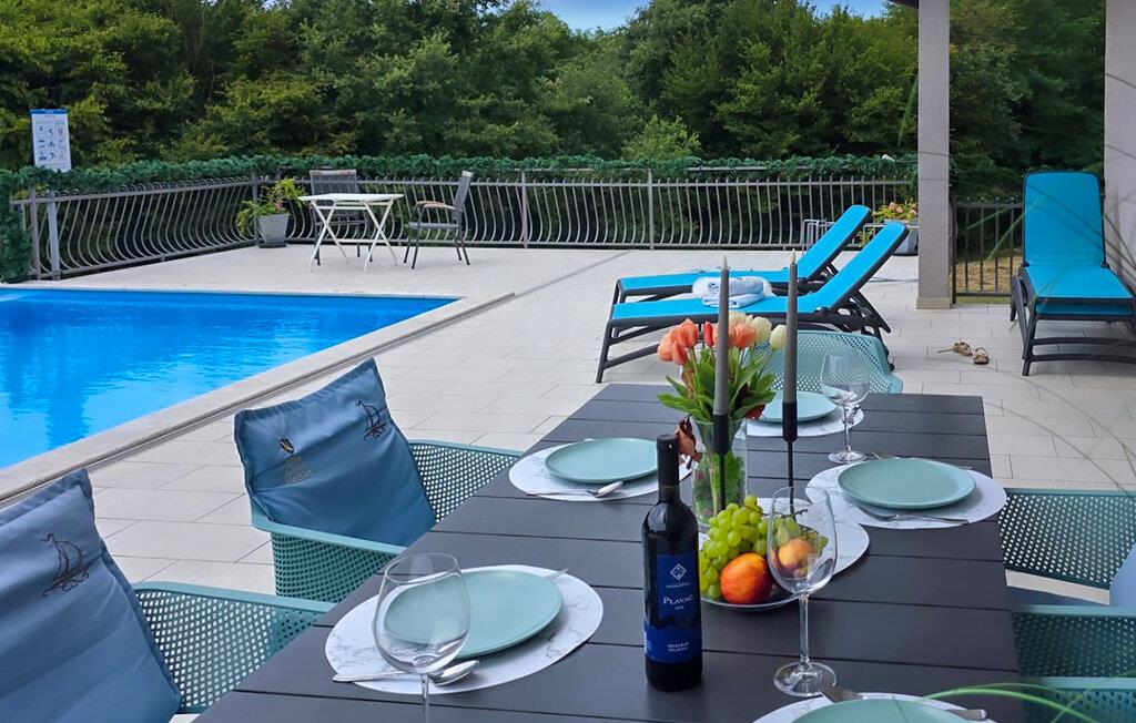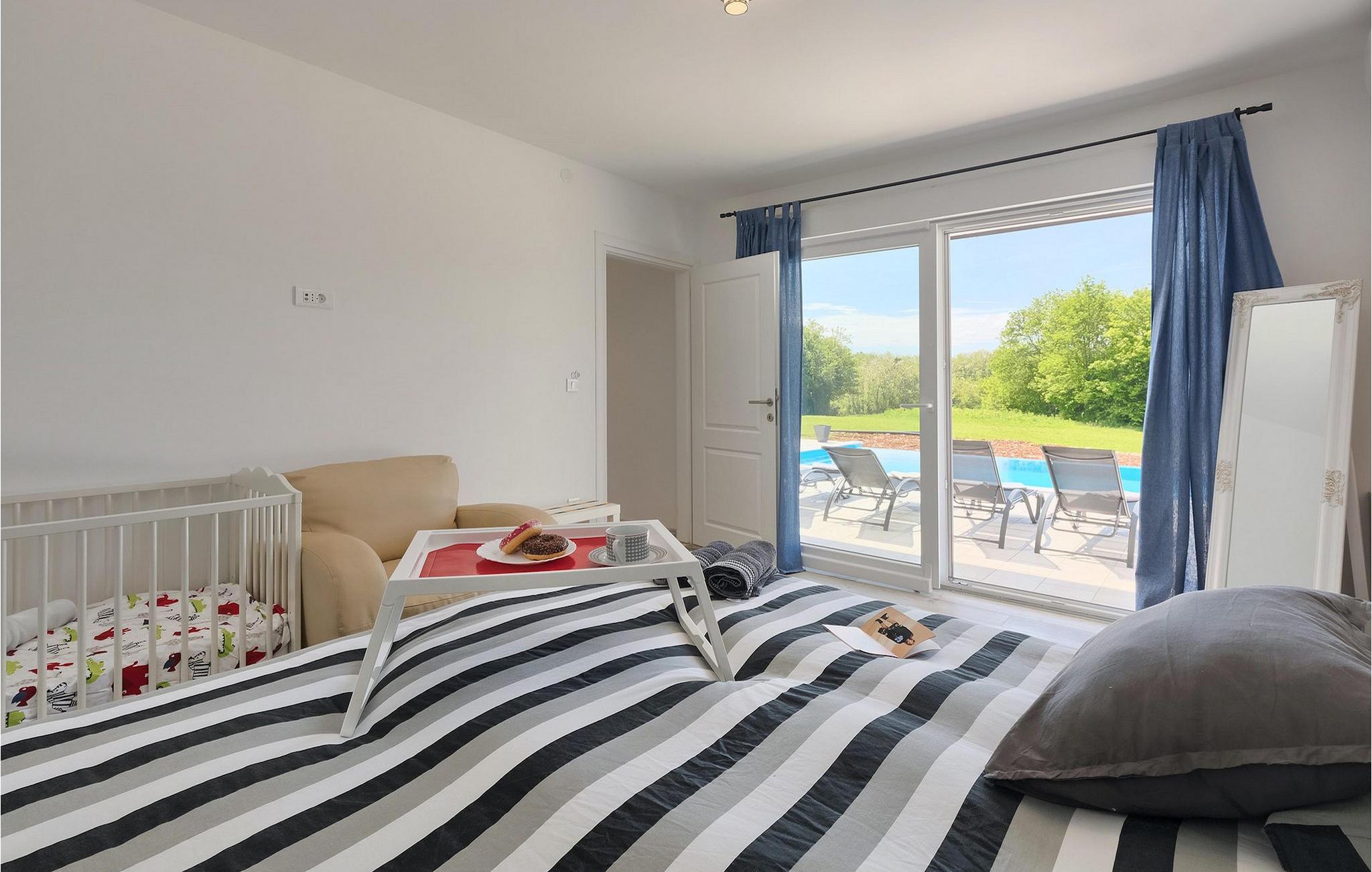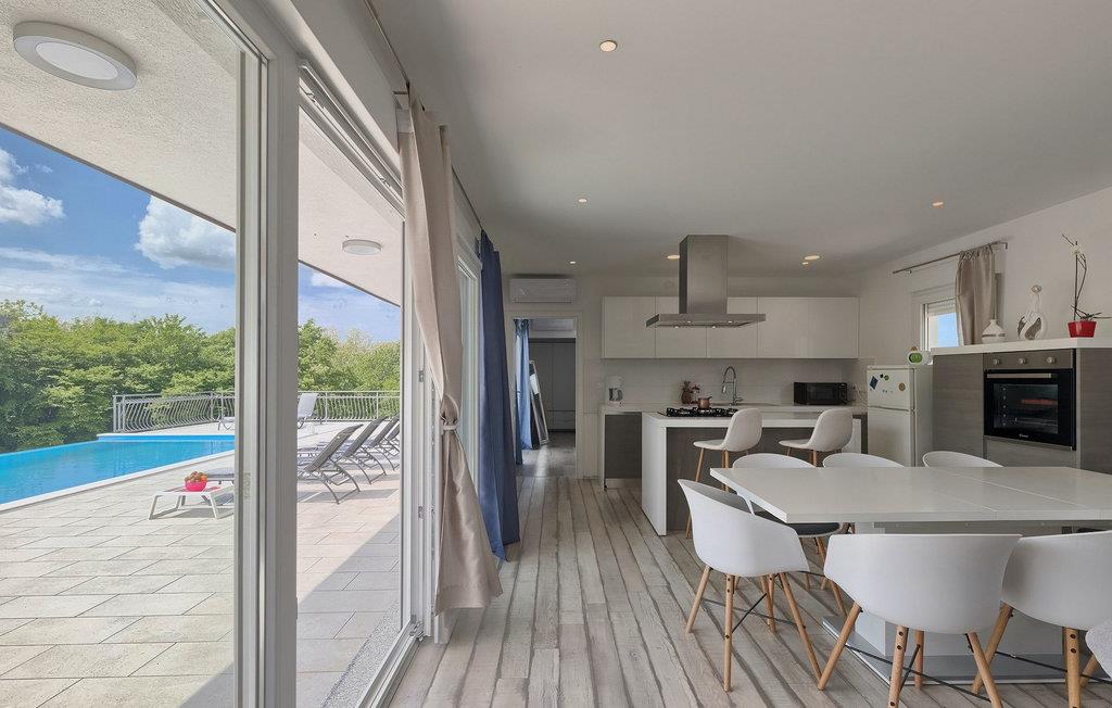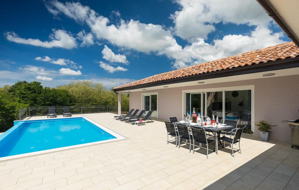 Denne pragtfulde ejendom er beliggende på en 6000 m2 stor grund i det maleriske centrale Istrien, nær den lille middelalderby Pazin. Villaen kan rumme op til 8 gæster og har 3 smagfuldt indrettede soveværelser. Det er en ensom villa uden naboer i sigte i 300m rundt om selve villaen. Hvert soveværelse har aircondition, har udsigt over poolområdet og har eget badeværelse for mere komfort. To soveværelser har en dobbeltseng og det ene har to enkeltsenge. En ekstra seng er tilgængelig i et af værelserne, og sovesofaen i stuen er også til rådighed for yderligere to gæster. Den store åbne stue og spisestue med et fuldt udstyret køkken er meget lyse takket være de store glasflader, der også har direkte adgang til terrassen og poolområdet. Udenfor er der et spisebord til al fresco spisning og en gas-/kulgrill. Slap af på liggestolene ved siden af poolen og nyd blot freden i dette himmelsk smukke område. Villaen har en "meditationshave". Denne smukke villa er beliggende i det centrale Istrien, i hjertet af den betagende Istrien halvø. Grotten i Pazin og slottet i Pazin, som inspirerede den franske forfatter Jules Verne til hans roman "Mathias Sandorf", ligger i meget kort afstand fra villaen.Det centrale Istrien er kendt for et landskab af små, maleriske middelalderbyer, der minder om af Toscana eller Provence. Besøg under dit ophold i Istrien det episkopale kompleks af Euphrasian Basilica (Unesco-arv) i det historiske centrum af Porec og det velbevarede romerske amfiteater i Pula, eller bare nyd på den nærmeste strand. Mens du bor i Villa Heaven kan også nyde lokale retter og et glas god istrisk Malvazija.