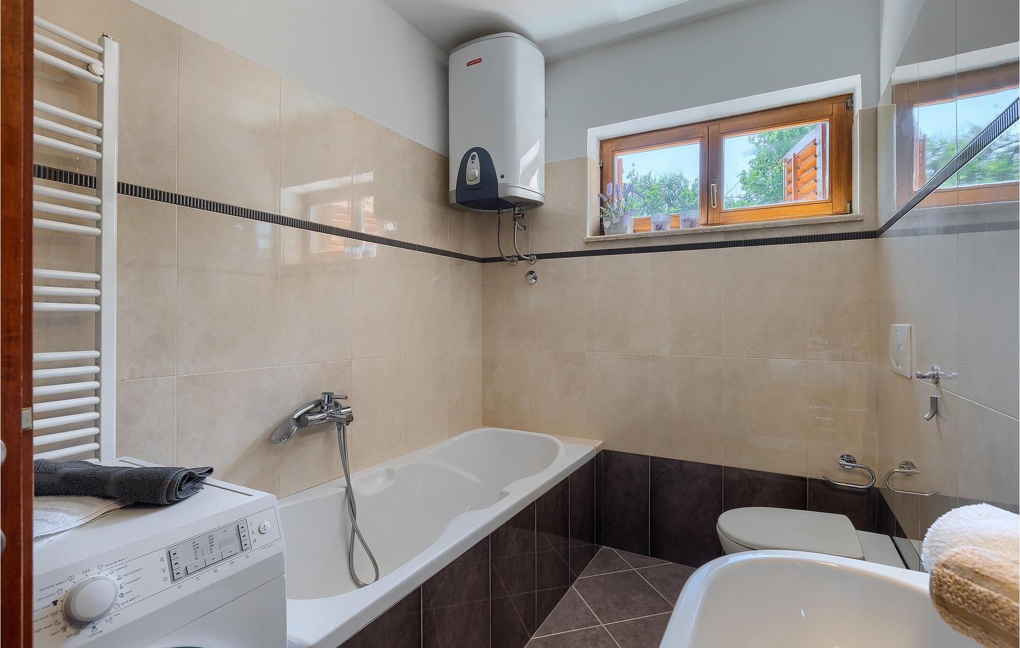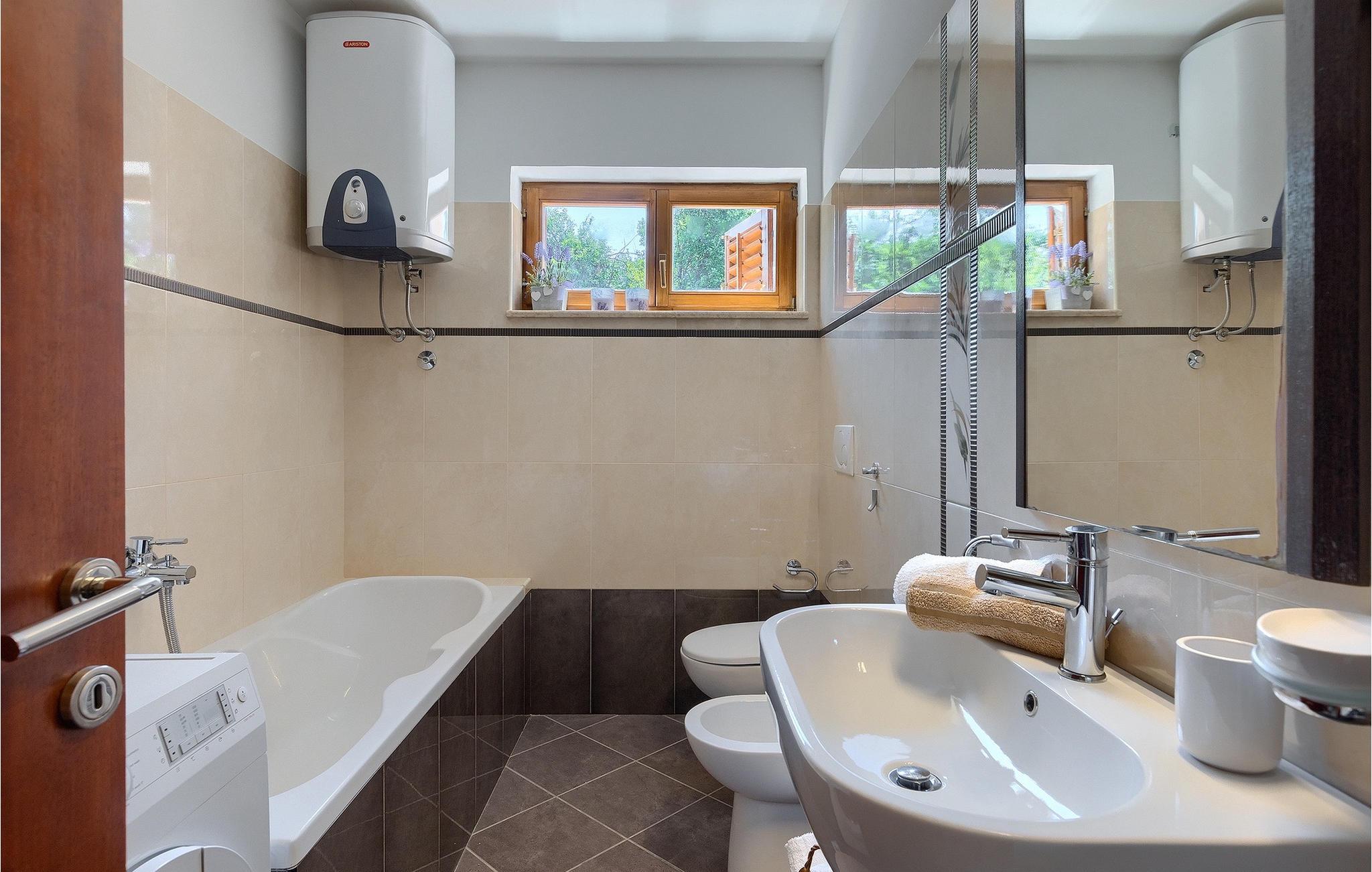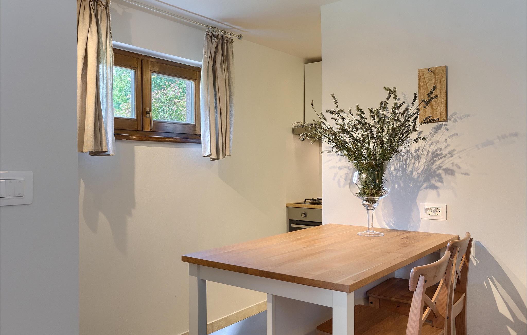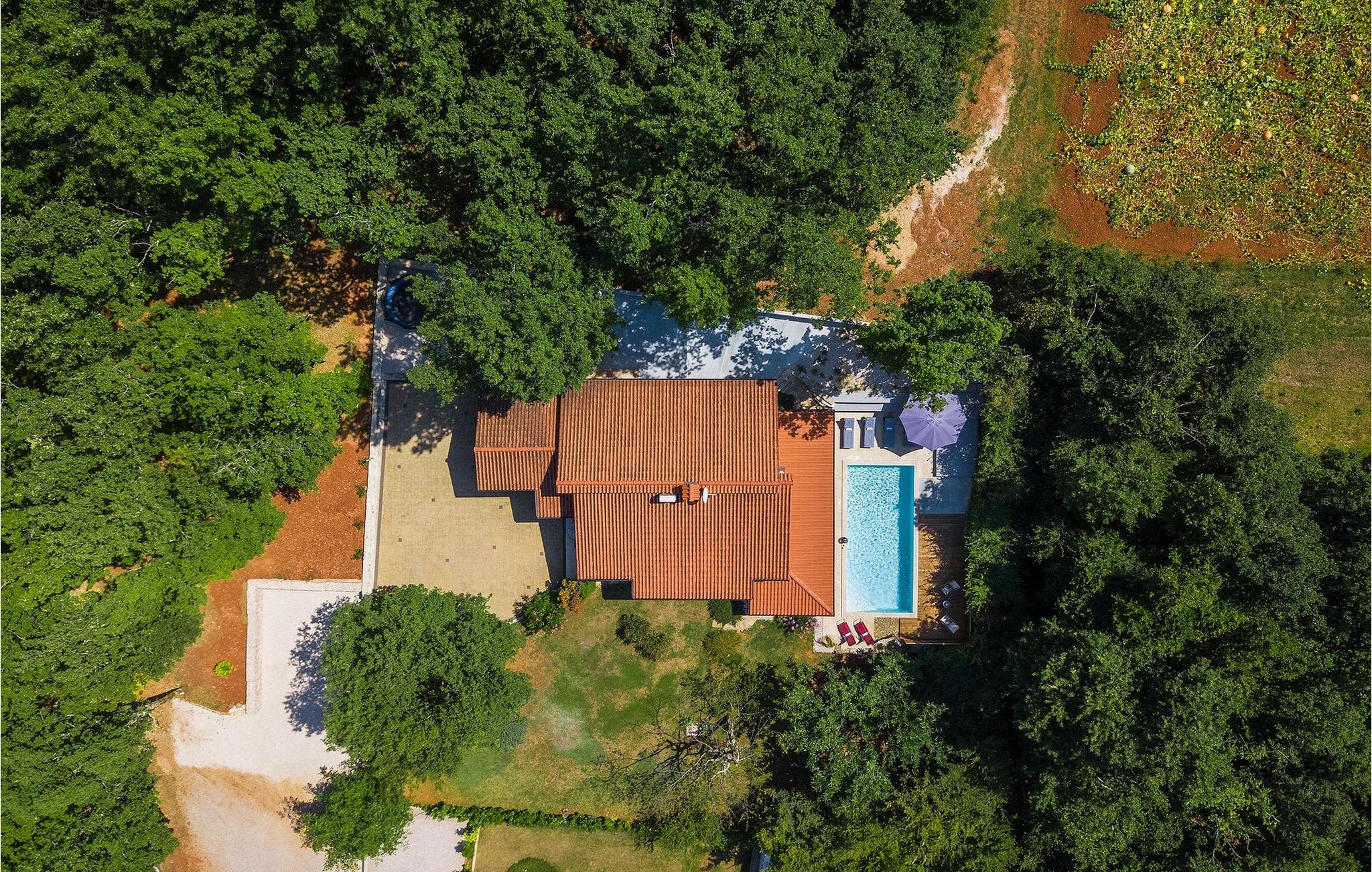 Alle, der leder efter en overordnet afslappende ferie, vil helt sikkert finde deres perfekte sted i denne charmerende villa i hjertet af Istrien. Villa Tila er velegnet til en gruppe på 8 gæster, der kan indkvarteres i 4 hyggelige soveværelser. Det ligger på en 1150 m2 stor grund, fremhævet af en forfriskende privat pool. Haven er smukt plejet med masser af plads til, at alle kan finde deres eget sted, mens det frodige grønne område giver nok skygge på varme sommerdage. Villaen er opdelt i to etager. Stueetagen består af en stue, eller bedre et samlingsrum med et tekøkken, og et stort soveværelse med tilhørende badeværelse. Den øverste etage er hovedetagen - her er stue og spisestue, samt det fuldt udstyrede køkken. 3 soveværelser, et med en dobbeltseng og to med hver to separate senge, ligger på denne etage. Et badeværelse og et separat toilet er her også.