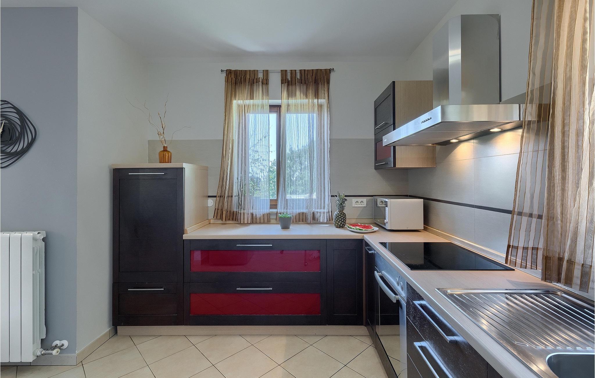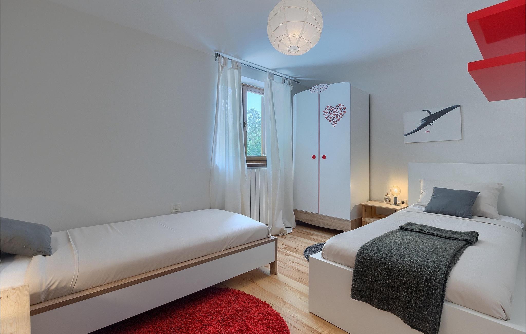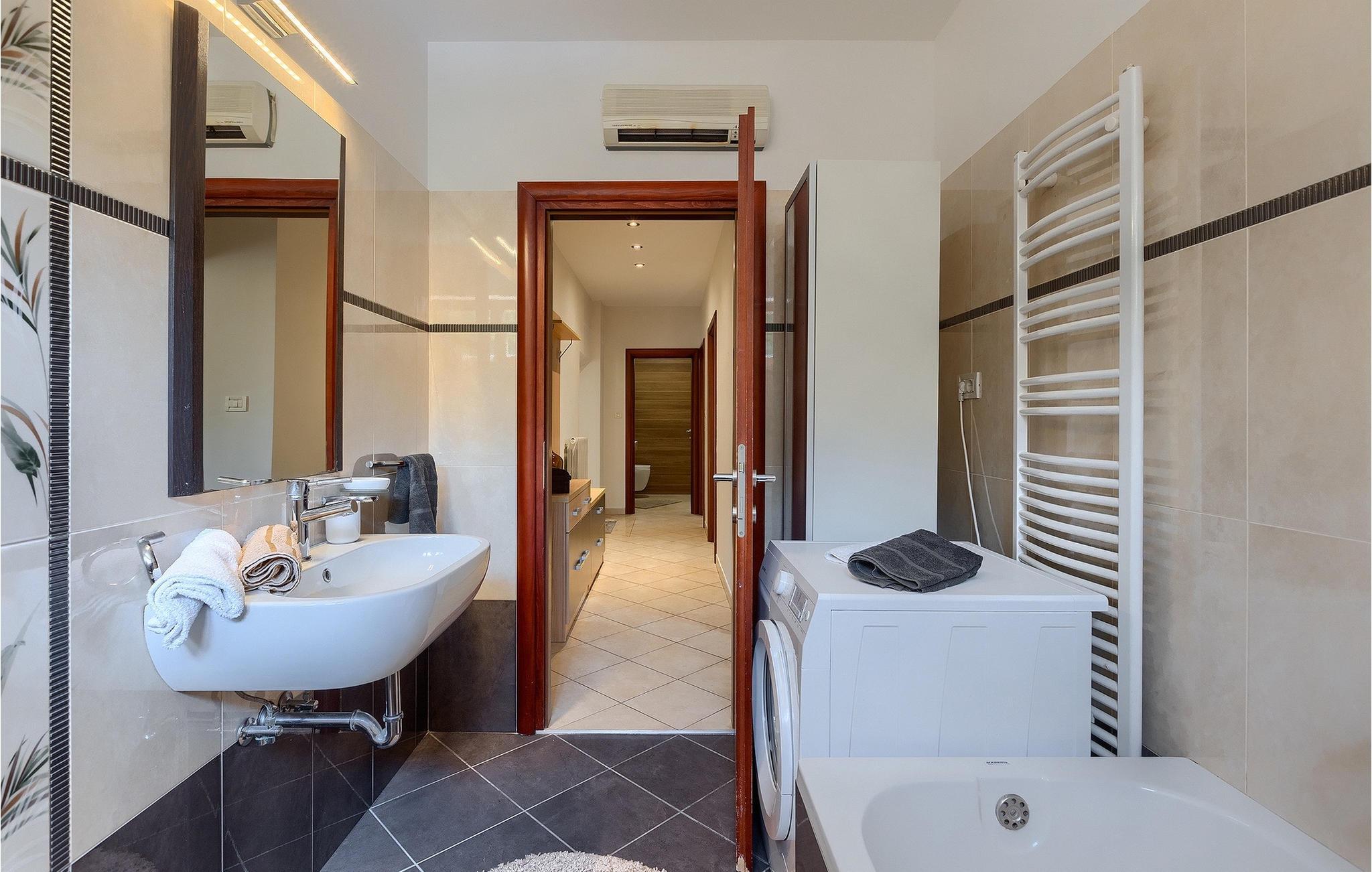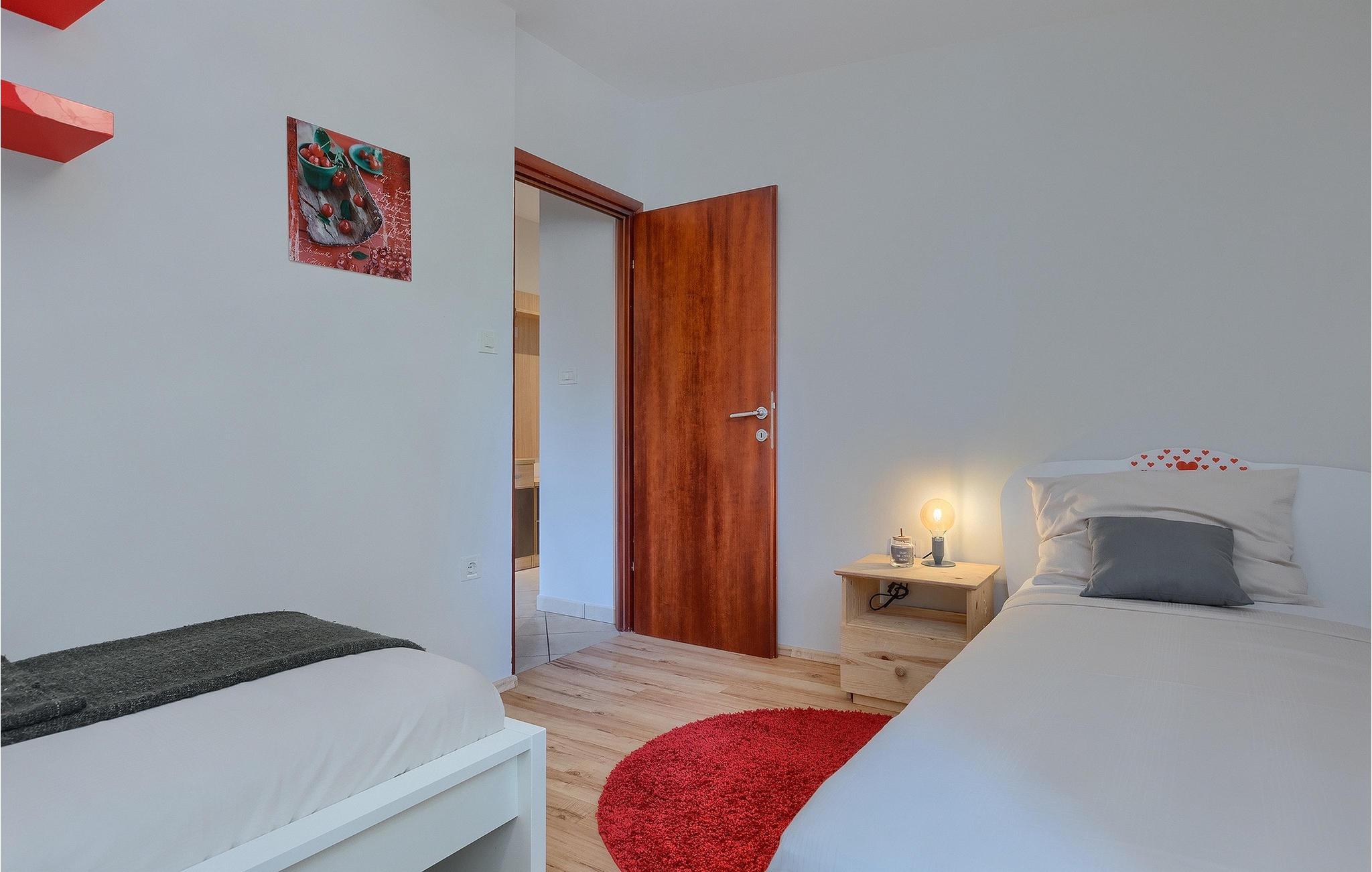 Alle, der leder efter en overordnet afslappende ferie, vil helt sikkert finde deres perfekte sted i denne charmerende villa i hjertet af Istrien. Villa Tila er velegnet til en gruppe på 8 gæster, der kan indkvarteres i 4 hyggelige soveværelser. Det ligger på en 1150 m2 stor grund, fremhævet af en forfriskende privat pool. Haven er smukt plejet med masser af plads til, at alle kan finde deres eget sted, mens det frodige grønne område giver nok skygge på varme sommerdage. Villaen er opdelt i to etager. Stueetagen består af en stue, eller bedre et samlingsrum med et tekøkken, og et stort soveværelse med tilhørende badeværelse. Den øverste etage er hovedetagen - her er stue og spisestue, samt det fuldt udstyrede køkken. 3 soveværelser, et med en dobbeltseng og to med hver to separate senge, ligger på denne etage. Et badeværelse og et separat toilet er her også.