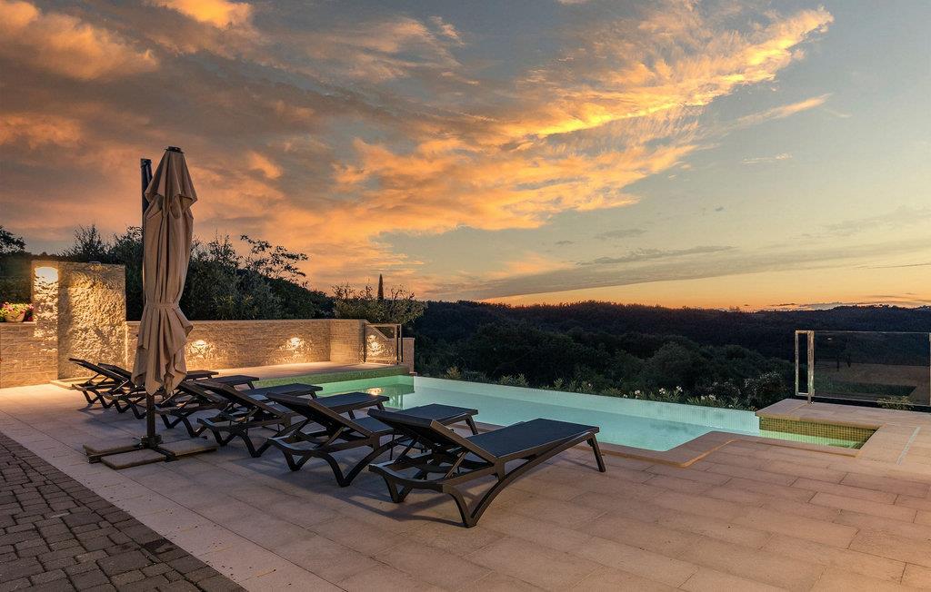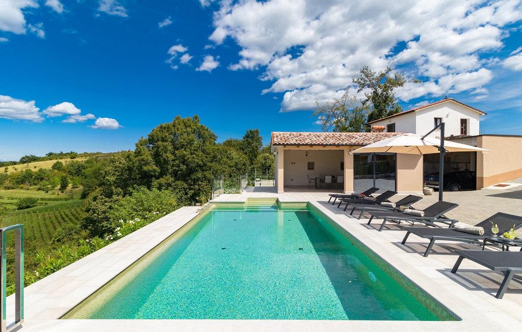 Drømmer du om en smuk villa i en idyllisk, lille landsby i det centrale Istrien, omgivet af milde bakker og natur? Villa Grazia vil gøre dine drømme til virkelighed. Dette unikke feriehus blev tidligere brugt som landbrugsbygning og blev renoveret med stor kærlighed og sans for detaljer i 2021. Det kan rumme op til seks personer og har tre soveværelser med eget badeværelse, en stue og et køkken med spiseplads areal. De tre stilfuldt indrettede soveværelser er på første sal, mens det åbne koncept stue, spisestue og køkken er i stueetagen. Det er tydeligt ved første øjekast, at Villa Grazia blev indrettet med stor omhu og sans for detaljer. De elegante, moderne møbler og de mange antikke elementer i træ og sten passer perfekt sammen og giver dette feriehus en helt unik atmosfære. I villaens udendørsområde er der en 32 kvadratmeter stor privat infinity-pool, hvorfra der er en betagende udsigt over det bakkede istriske landskab. Her kan du lade tankerne få frit løb og lade batterierne op. For de yngste gæster er der en legeplads udendørs. Hvis du har lyst til at teste dine kulinariske færdigheder og prøve nogle af de mange regionale delikatesser, kan du gøre det i det fuldt udstyrede udekøkken. Ejendommen er helt lukket og har tre parkeringspladser. Book Villa Grazia og lav minder, der vil vare hele livet!