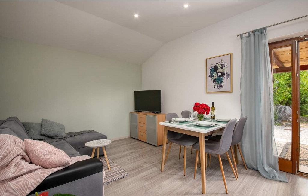 Casa Ivan er et charmerende en-etagers feriehus beliggende på en bakke med en betagende panoramaudsigt over det frodige istriske landskab og Butoniga-søen. Beliggende på indhegnet grund, er dette tilflugtssted ideel for dem, der søger fred og ro væk fra de travle turistskarer. Ejendommen har et storslået udendørsområde med swimmingpool, en overdækket terrasse ideel til udendørs spisning og en gynge for børn. Indenfor omfatter opholdsstuen med aircondition et veludstyret køkken, spiseplads og en komfortabel sovesofa. Nyd de rolige omgivelser og et fredeligt ophold her. Et besøg i den nærliggende by Pazin er et must. Kendt for sin rige historie, tilbyder Pazin et glimt af den istriske kultur gennem dens bevarede middelalderlige arkitektur og det imponerende Pazin-slot, som har udsigt over den dramatiske Pazin-grotte, et naturligt vidunder dannet af floden, der løber igennem den. Bemærk venligst, at denne ejendom kan rumme ungdomsgrupper efter anmodning. Kontakt os venligst for at tjekke. En ungdomsgruppe på denne ejendom består af personer på 26 år eller derunder. Hvis du er en ungdomsgruppe [eller planlægger en polterabend], kan du blive bedt om at betale et ekstra depositum ved ankomst. Eventuelle beløb, der kræves for at reparere eventuelle skader på ejendommen, vil blive trukket fra depositum.