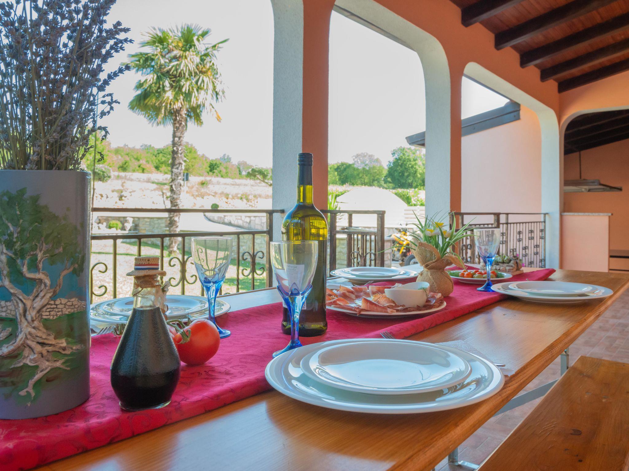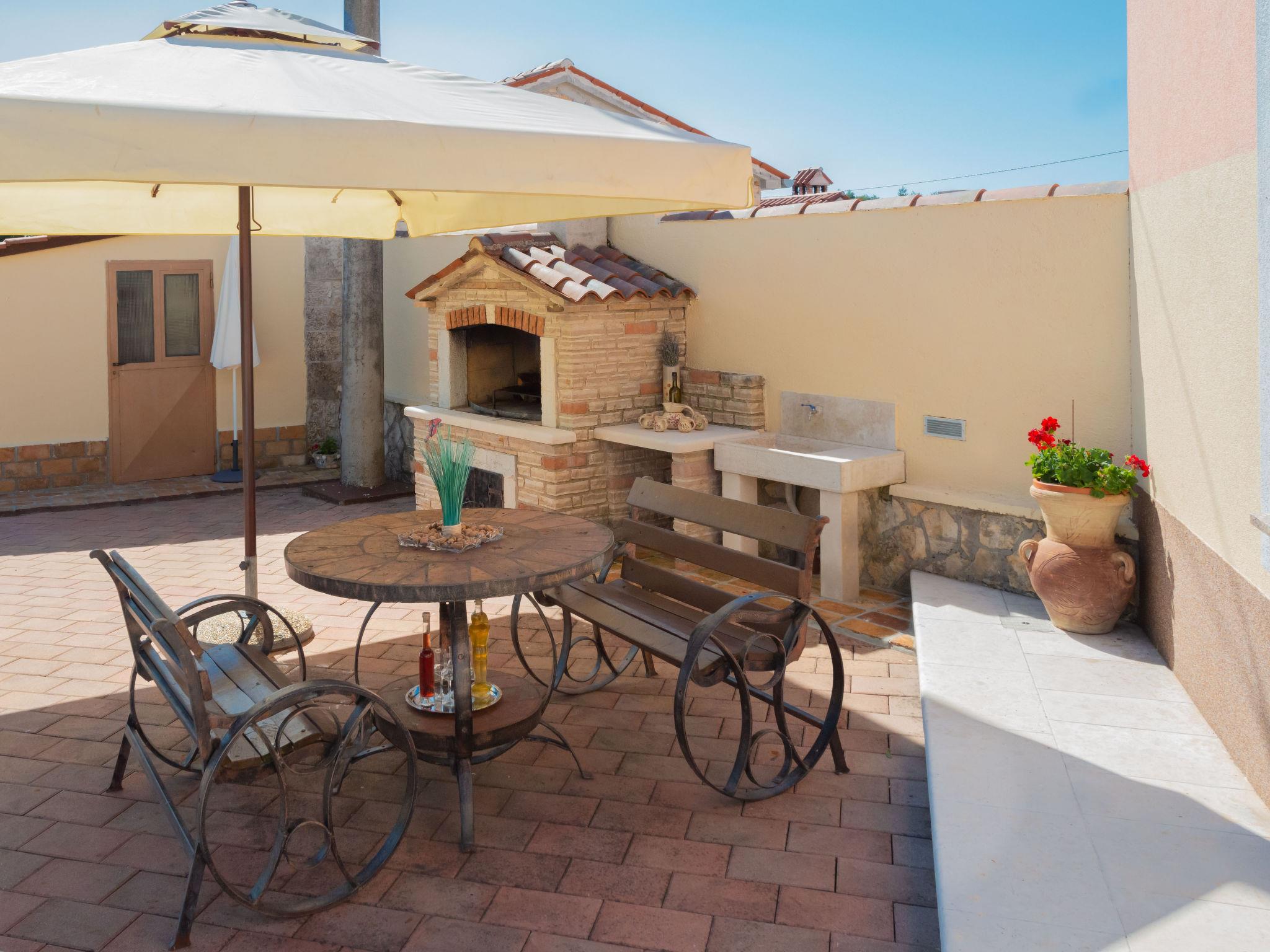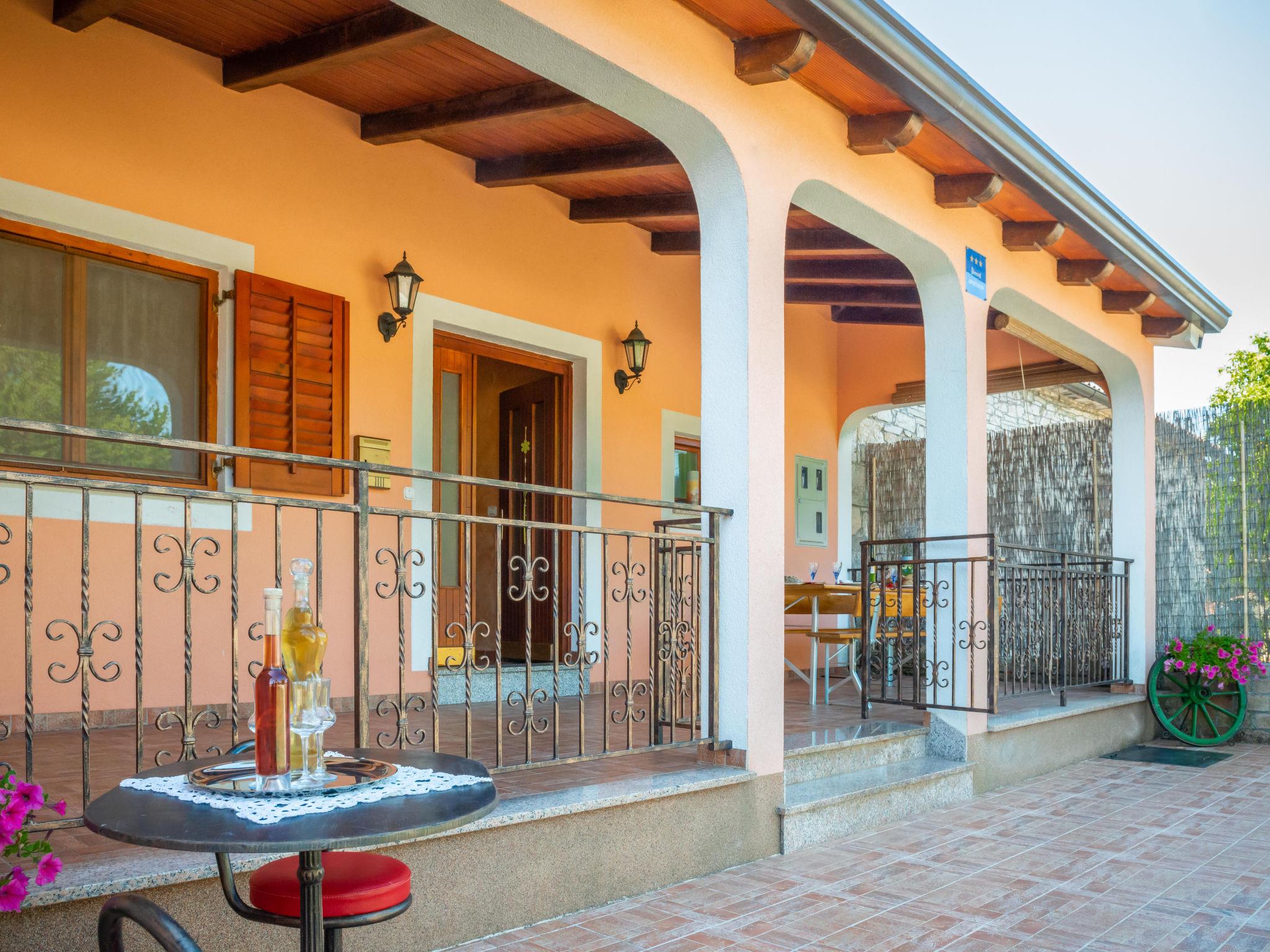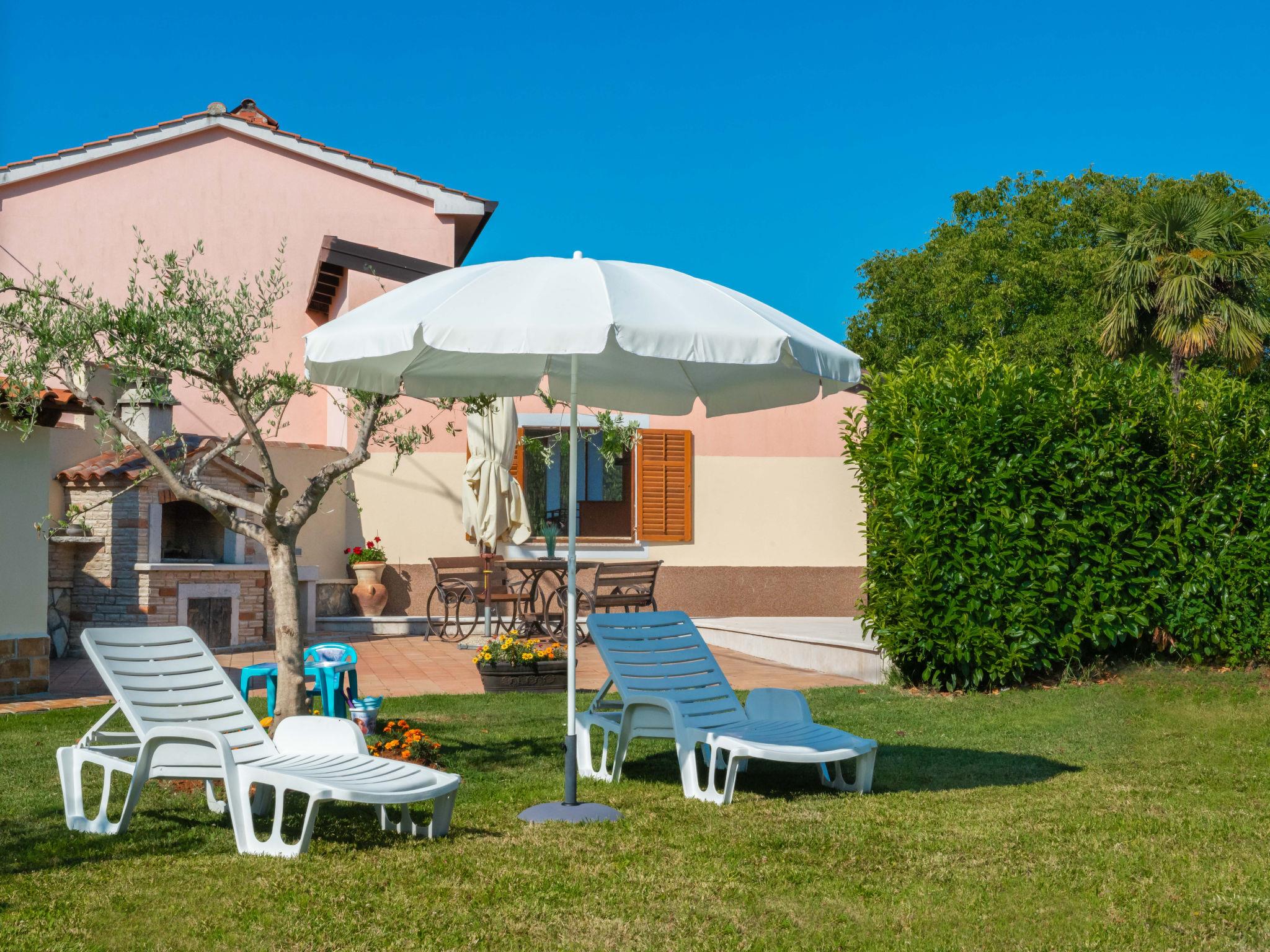 Semi-detached house "Medica", 2 storeys. In the hamlet Milotici 1 km from the centre of Tinjan, 12 km from the centre of Pazin, 20 km from the sea. Private: property 200 m2 with lawn and trees, swimming pool (24 m2, depth 135 cm, seasonal availability: 15.May. - 20.Sep.). Outdoor shower, table tennis, terrace, garden furniture, barbecue, pool maintenance by the owner/gardener. In the house: internet access. Parking on the premises, single garage. Shop 1 km, restaurant 1 km, bus stop 950 m, rocky beach 20 km.