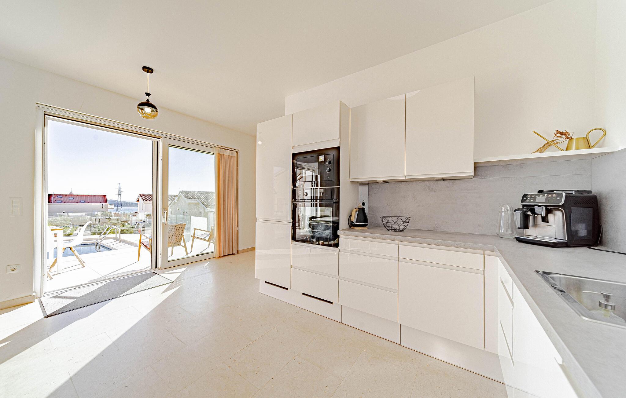 I kan være sikre på, at ingen kommer til at kede sig i dette moderne feriehus, som er noget særligt med sin elegante indretning og fremragende faciliteter. Lav mad sammen i det lyse køkken med højglansoverflader, og nyd jeres måltider i den åbne og solbeskinnede opholdsstue. Om aftenen kan I slappe af på den komfortable sofa med en god film eller finde ro i jeres egen yndlingskrog til meditation.