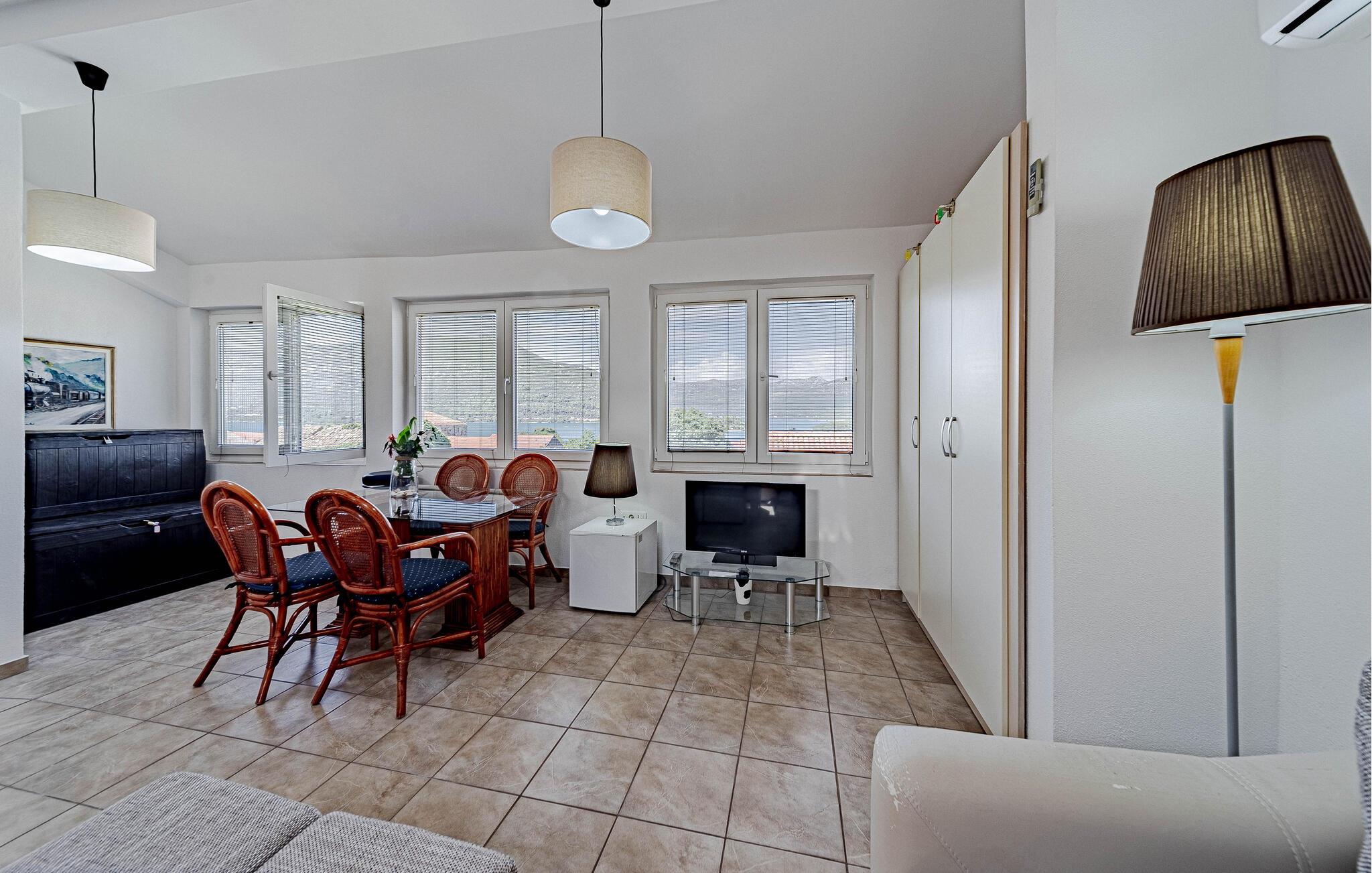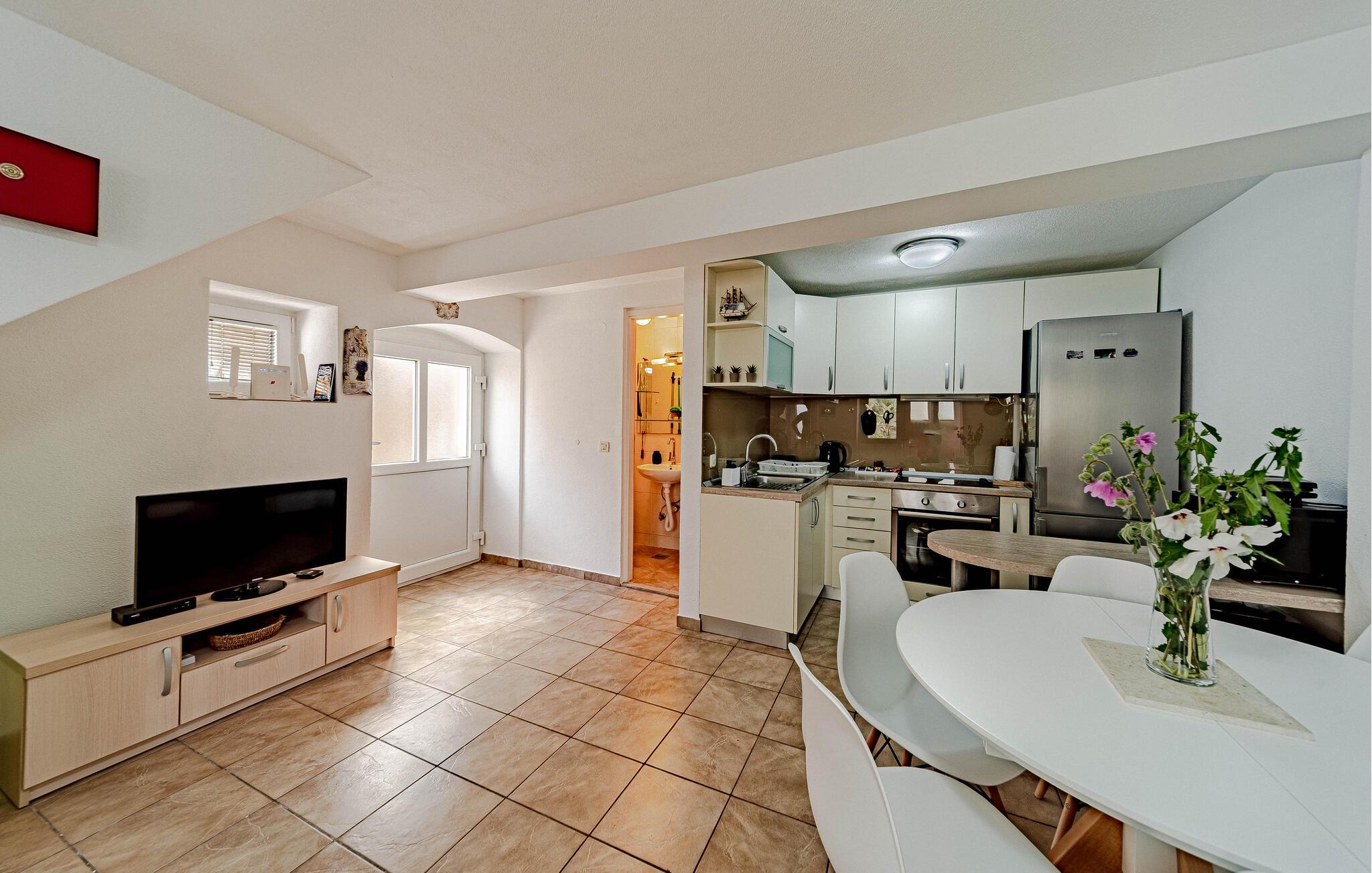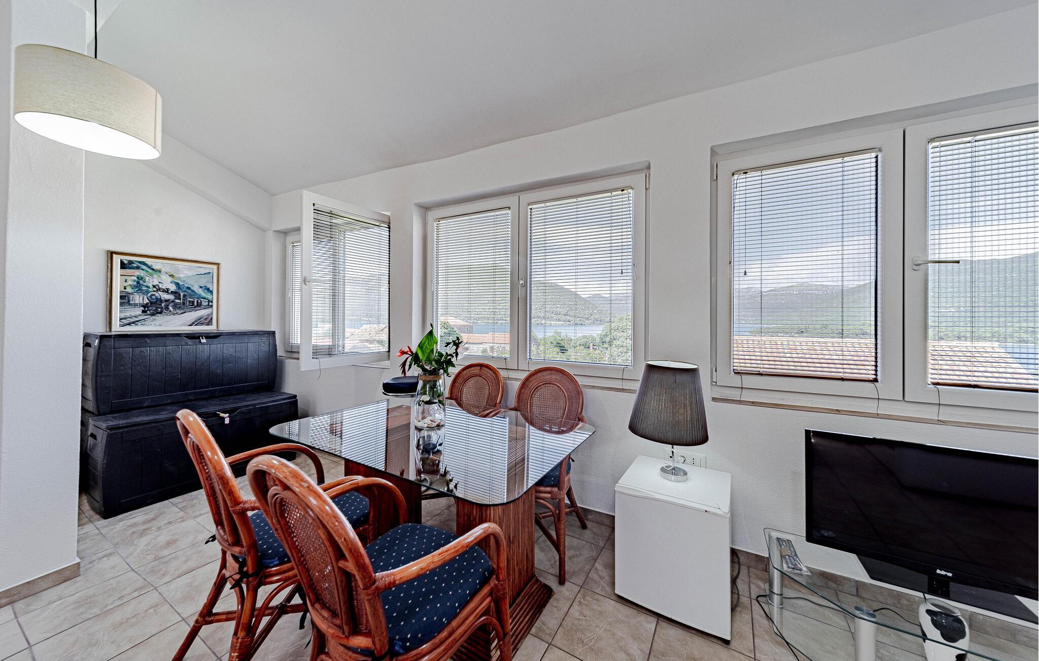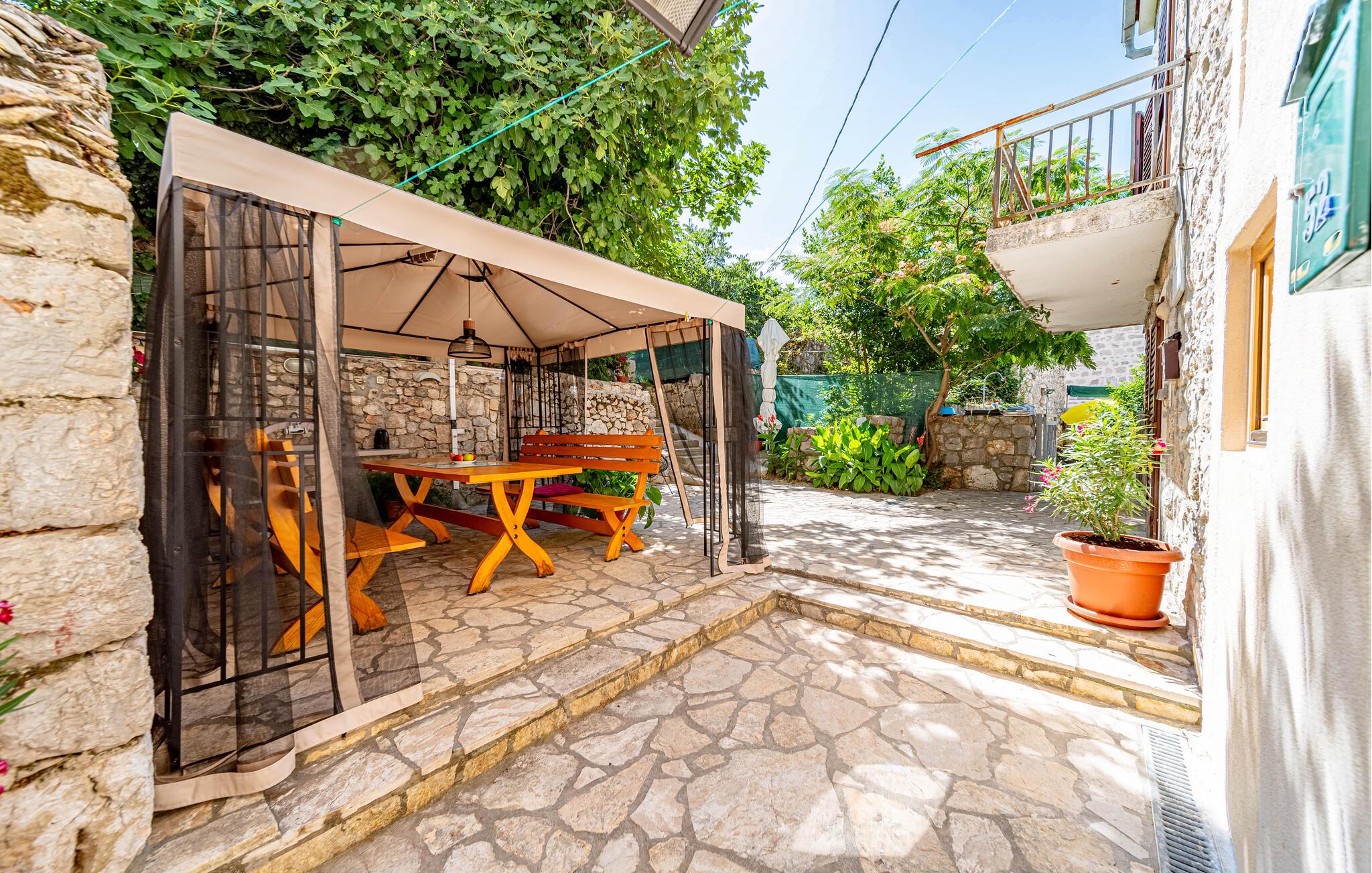 Huset ligger helt tæt på vandet så I nemt kan nyde en forfriskende dukkert i det krystalklare vand. Gå lange gåture langs kysten og hold pause ved de smukkeste steder på stranden med en vidunderlig udsigt. Udforsk området fra vandet af på små bådture til de omkringliggende. Peljesac-halvøen er bedst kendt for sin frodige planteliv og smukke bjergkæder.
