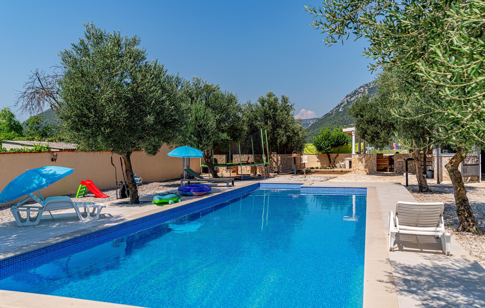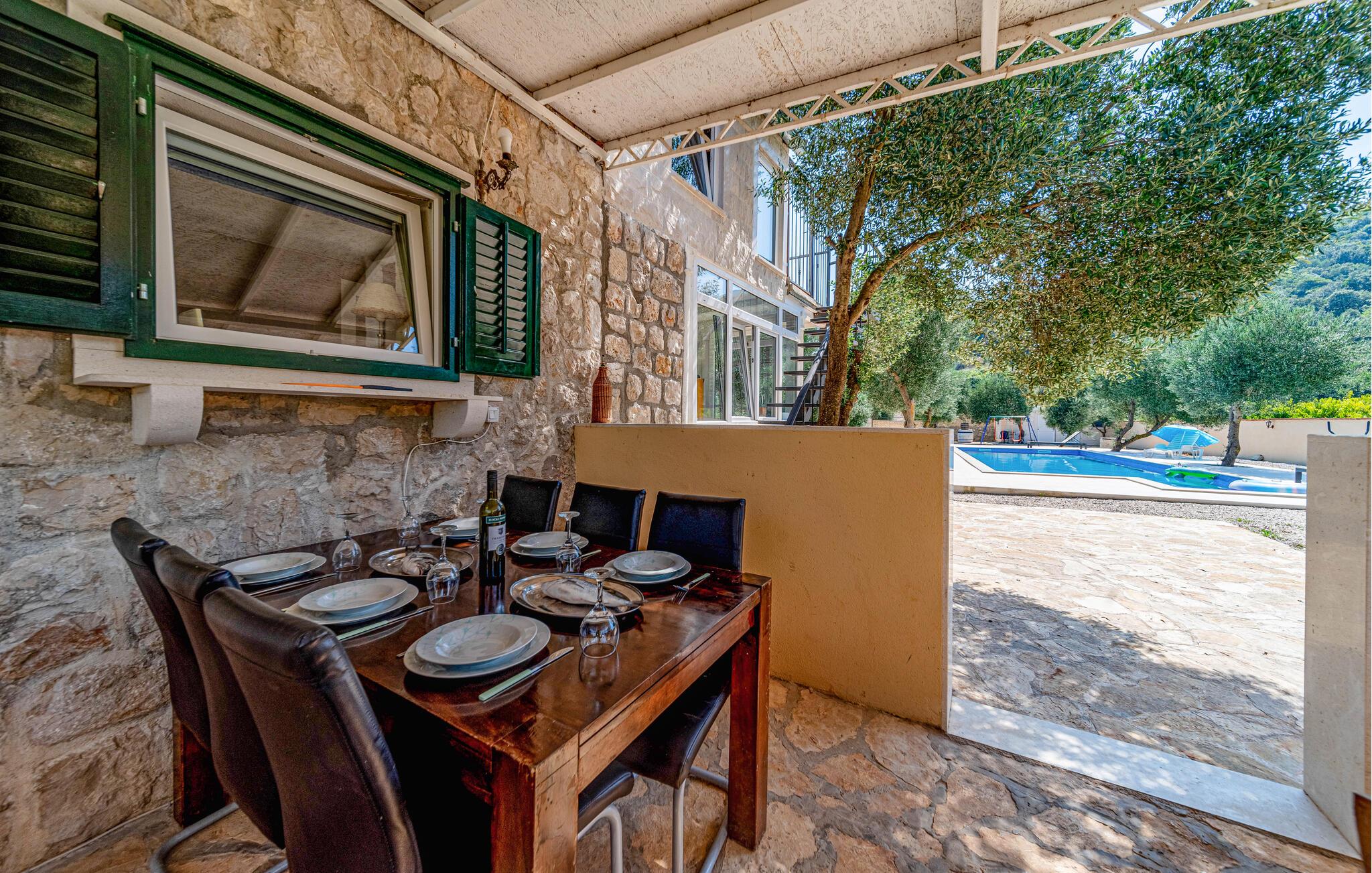 Begynd dagene på bedste vis og brug det smukke, praktiske køkken til at fremtrylle en lækker morgenmad til familien. Server jeres måltider på den rustikke overdækkede terrasse med grill. Det er her, I for alvor kommer i feriestemning. Bagefter inviterer komfortable liggestole jer til at slappe af med en kølig drink. Snup en frisk dukkert i den private pool eller nyd den imponerende havudsigt fra balkonen. Skyggetræerne omkring jeres pool giver jer en skøn oase, hvor I kan sætte jer til rette.
