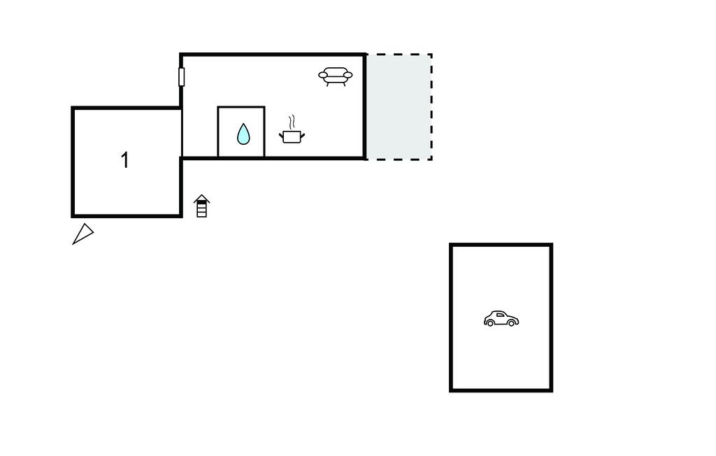 Badeværelse 5m2 (nr. 1) - WC. Varmt og koldt vand. Håndbruser