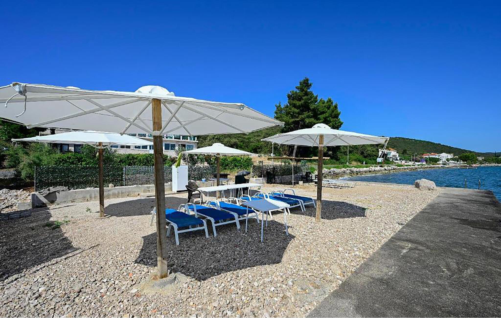 Denne praktisk indrettede lejlighed i stueetagen venter jer direkte ved strandpromenaden, hvilket giver mulighed for spontane dukkerter i Adriaterhavet. Tilbered lækre måltider her, planlæg dagens aktiviteter, og efter mange solskinstimer kan I nyde et brætspil eller streame en spændende film. I kan også nyde en direkte udsigt over det blå hav fra det fælles aktivitetsrum med poolbord, dartskive og bordtennisbord.