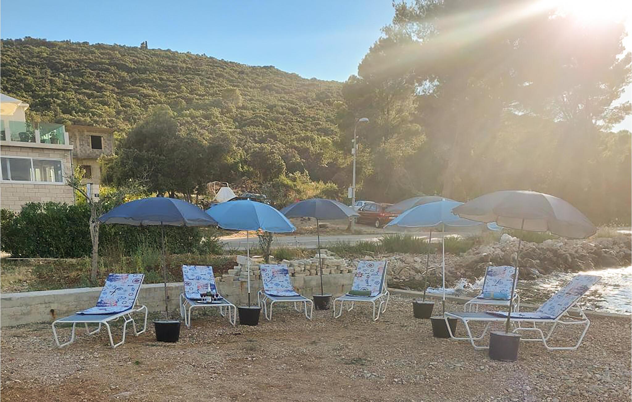 Denne praktisk indrettede lejlighed i stueetagen venter på jer direkte ved havet, hvilket giver mulighed for spontane dukkerter i Adriaterhavet. Tilbered små måltider i køkkenet, planlæg dagens aktiviteter, og efter mange solskinstimer kan I nyde et brætspil eller streame en spændende film. I kan også nyde en direkte udsigt over det blå hav fra det fælles aktivitetsrum med poolbord, bordfodboldbord og bordtennisbord.