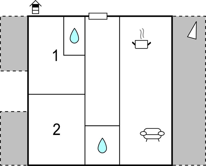Opholdsstue/køkken - 1 Soveplads. (Sofa, madras eller lignende).
