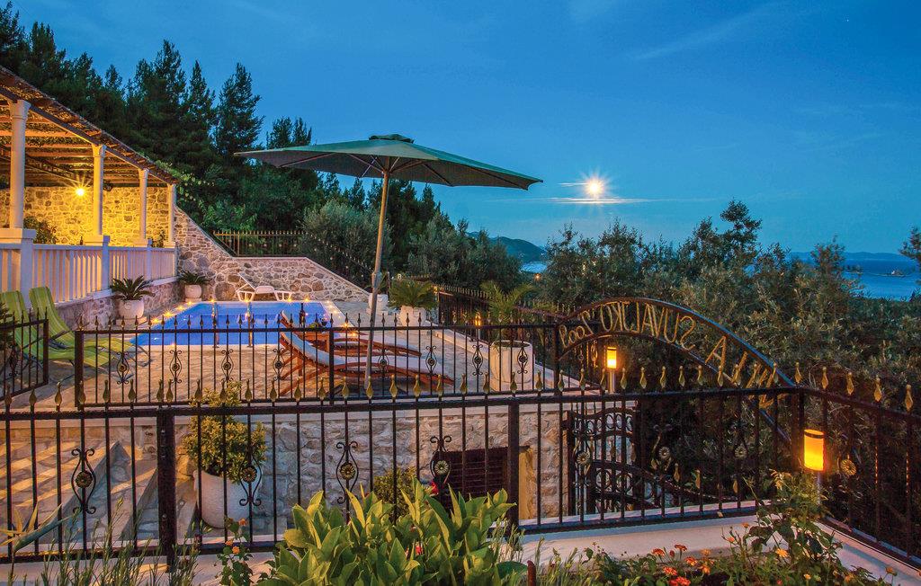 Denne smukke villa ligger på en bakke, ikke langt fra byen Orebic's centrum. Villaen er ideel til familieferie. Grunden er omgivet af smukke oliventræer og vinstokke og her er dejligt roligt. Huset er smukt indrettet med møbler i massivt træ. Der er et fuldt udstyret køkken, en smukt indrettet spisestue og et sommerkøkken med indbygget grill. Foran huset er der en rummelig terrasse og en dejlig swimmingpool, hvor der er fantastisk udsigt over havet og øen Korcula. Ingen naboer i en radius af 400 m. En ferie i dette hus giver jer lyden af græshopper, kvidrende fugle og et strejf af luksus.