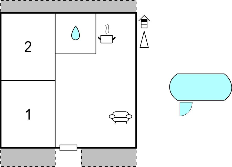 Opholdsstue/køkken - 2 Sovepladser. (Sofa, madras eller lignende).