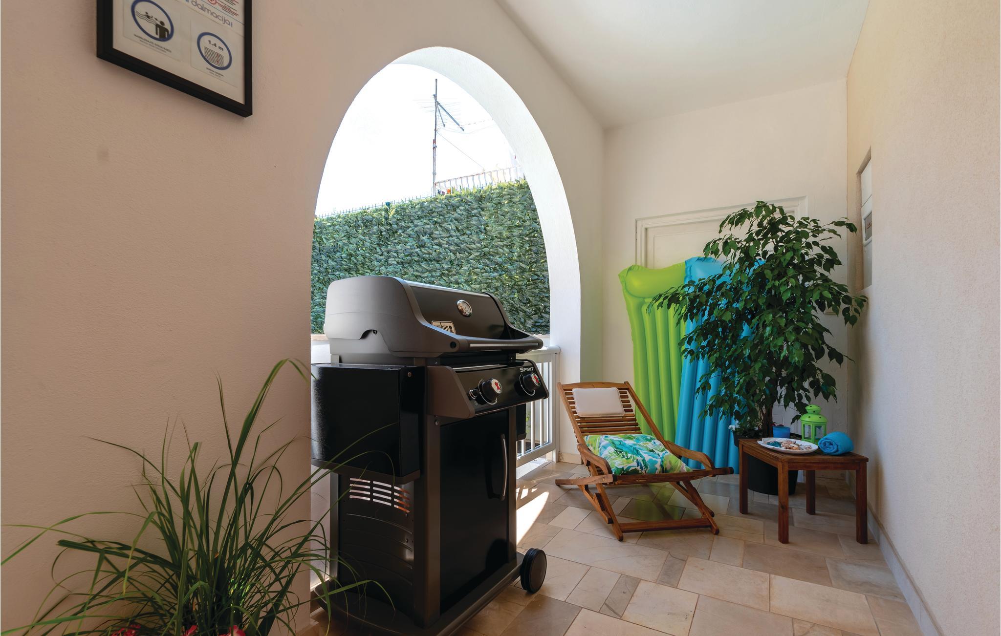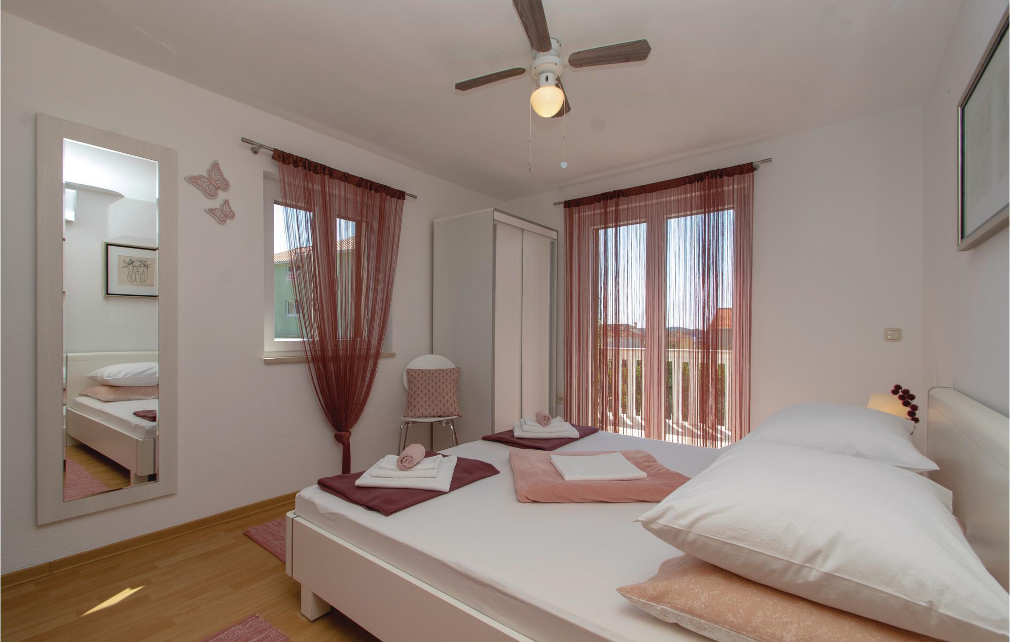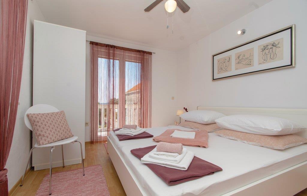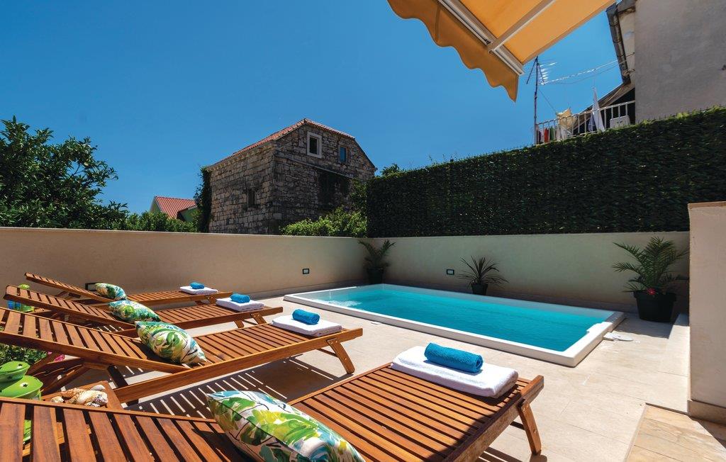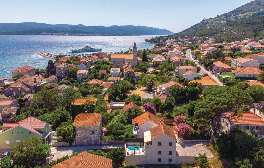 Dette stilfuldt indrettede veludstyrede feriehus, ligger kun 60 m fra en kiesstrand. I stueetagen er der køkken, badeværelse, opholdsstue og spisestue med udgang til terrassen med pool. På første sal er der to badeværelser yderligere samt to soveværelser med hver sin udgang til en terrasse med udsigt til havet. Idet i kun befinder jer 100 m fra Oberic's centrum, ligger der en række gode spisesteder i gåafstand. Herfra kan I også tage færgen til Kocula. Det tager kun 10 minutter, og øen har mange spændende seværdigheder og strande I kan opleve.