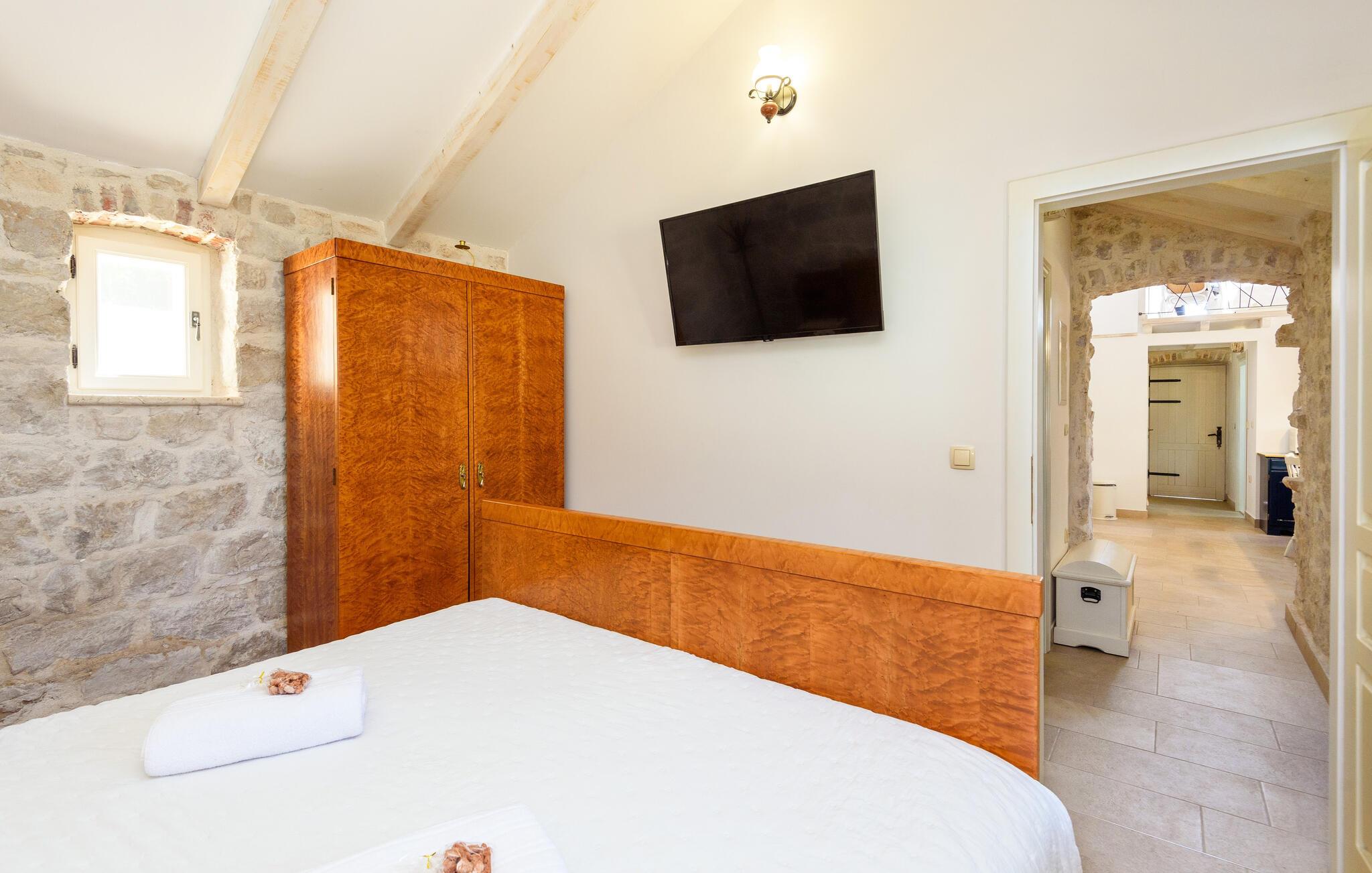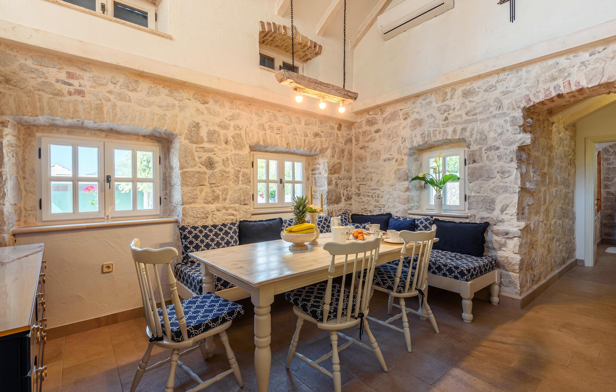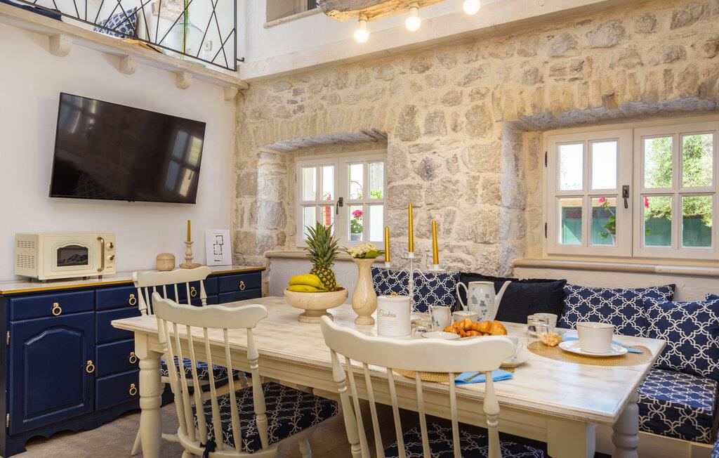 Tag familien under armen og rejs til Dalmatien, hvor venter jer en fremragende boligoplevelse i dette attraktive hus kun en kort gåtur fra stranden. Interiøret fremtræder flot og rustikt med rå stenvægge, gode træmøbler og et veludstyret køkken, hvor I kan tilberede alle dagens måltider og lægge planer for de kommende dages program.