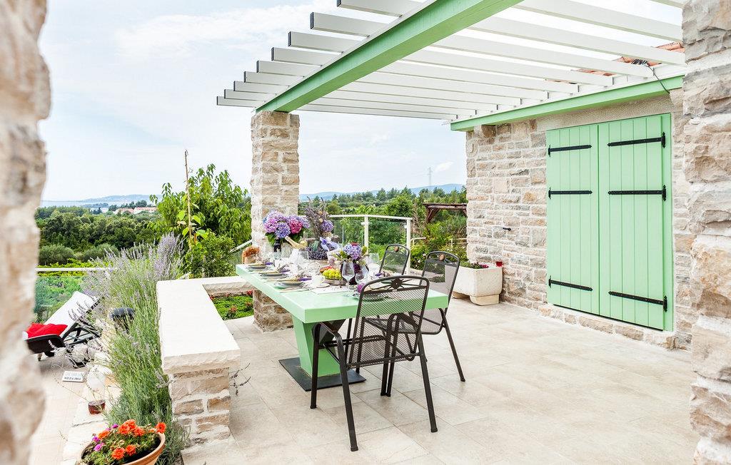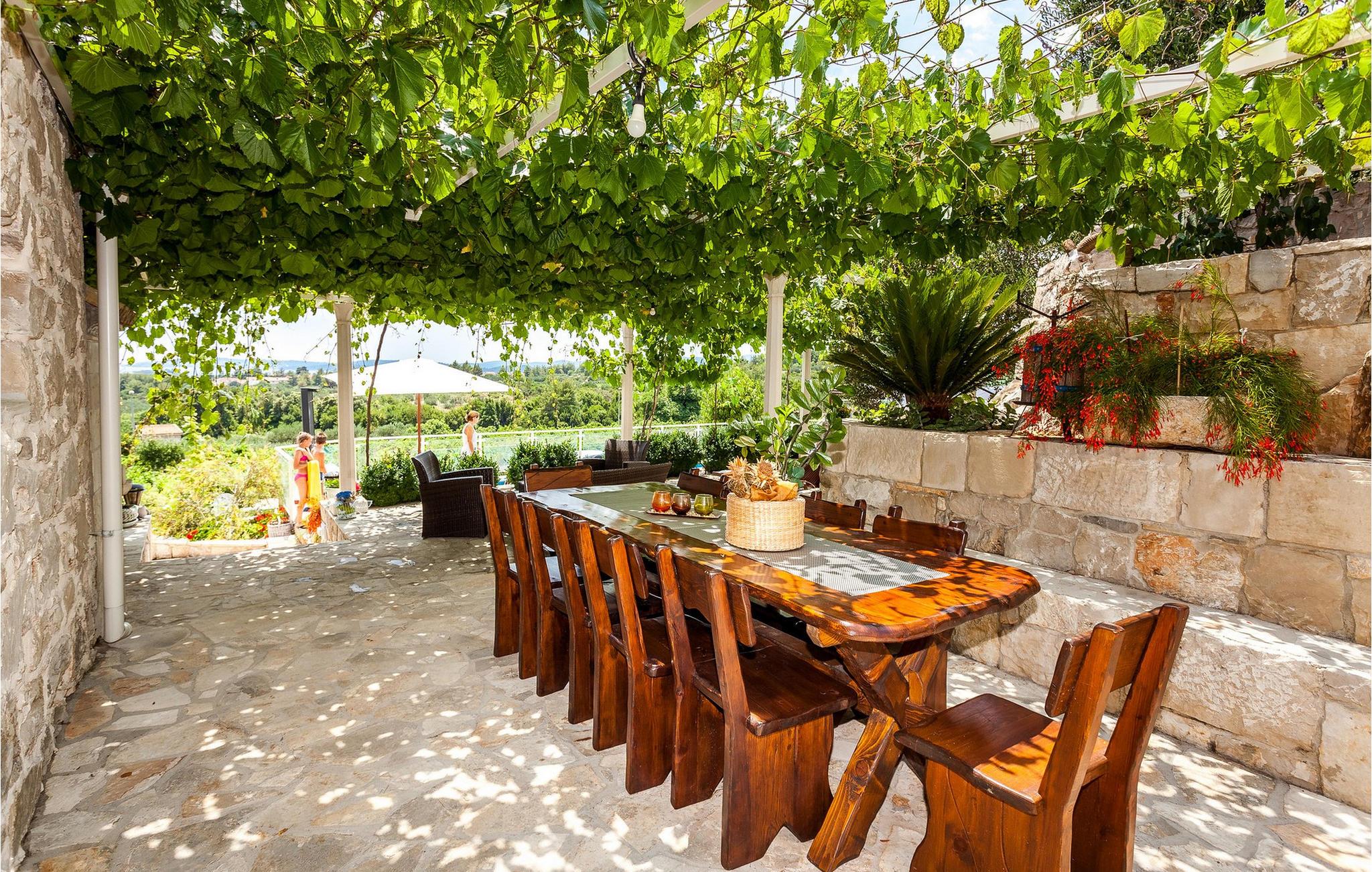 Det fortryllende udendørsområde udstråler middelhavscharme og har en storslået privat pool, perfekt til timevis af solbadning med havudsigt. Lad batterierne op på de komfortable liggestole, slap af i spabadet eller fordyb jer i en god bog på den skyggefulde terrasse, mens børnene nyder de engagerende legeområder. Fejr lune sommeraftener med lækker grillmad.