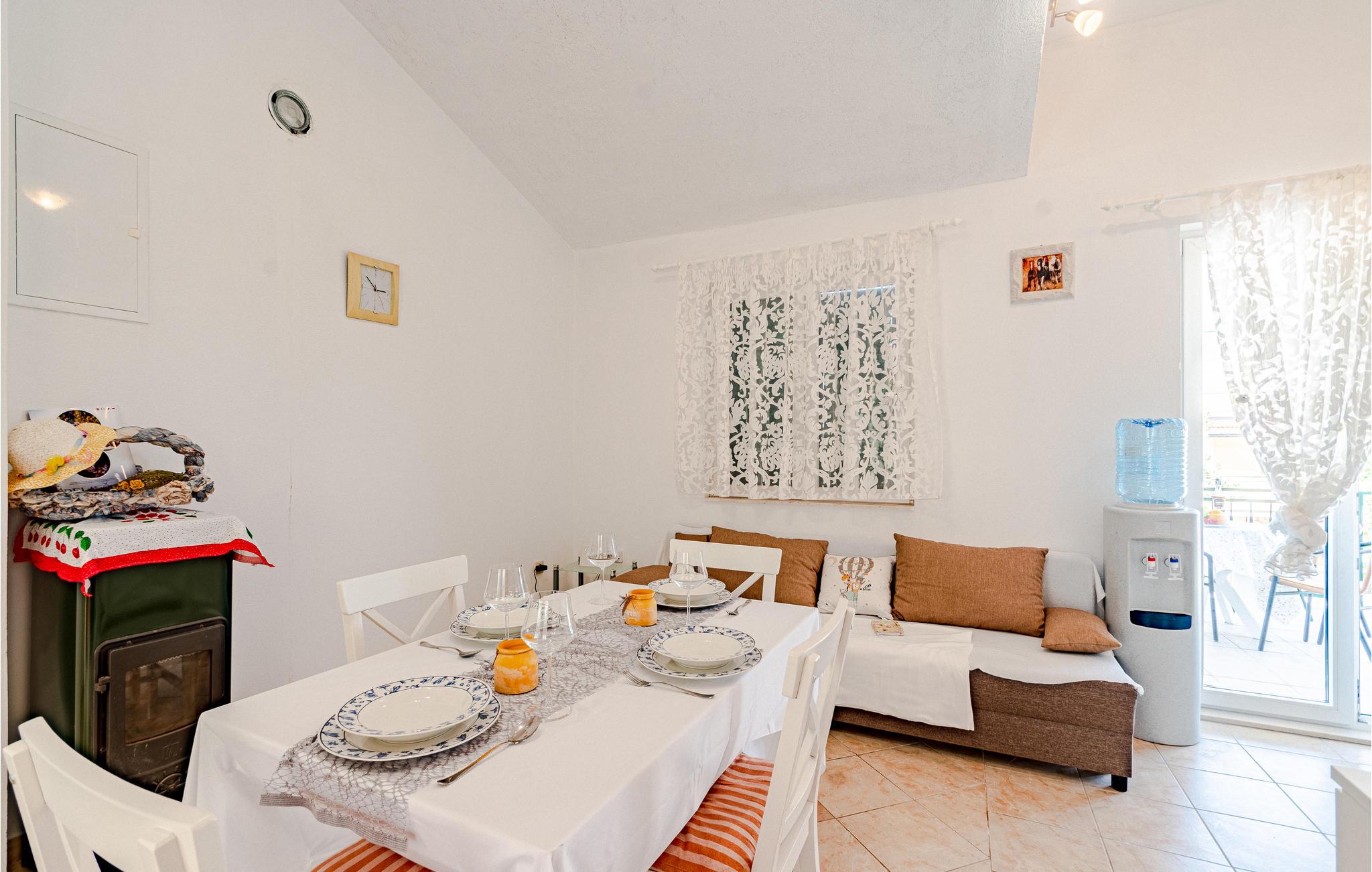 Der er tale om en rummelig lejlighed, som er funktionelt udstyret og stilfuldt indrettet. Den har en hyggelig og hjemlig atmosfære, med komfortable sofaer at slappe af i mellem feriens badeture og udflugter. Foran huset er der en overdækket terrasse, hvor du kan nyde grillede feriemåltider i skyggen til et godt glas Pelješac.