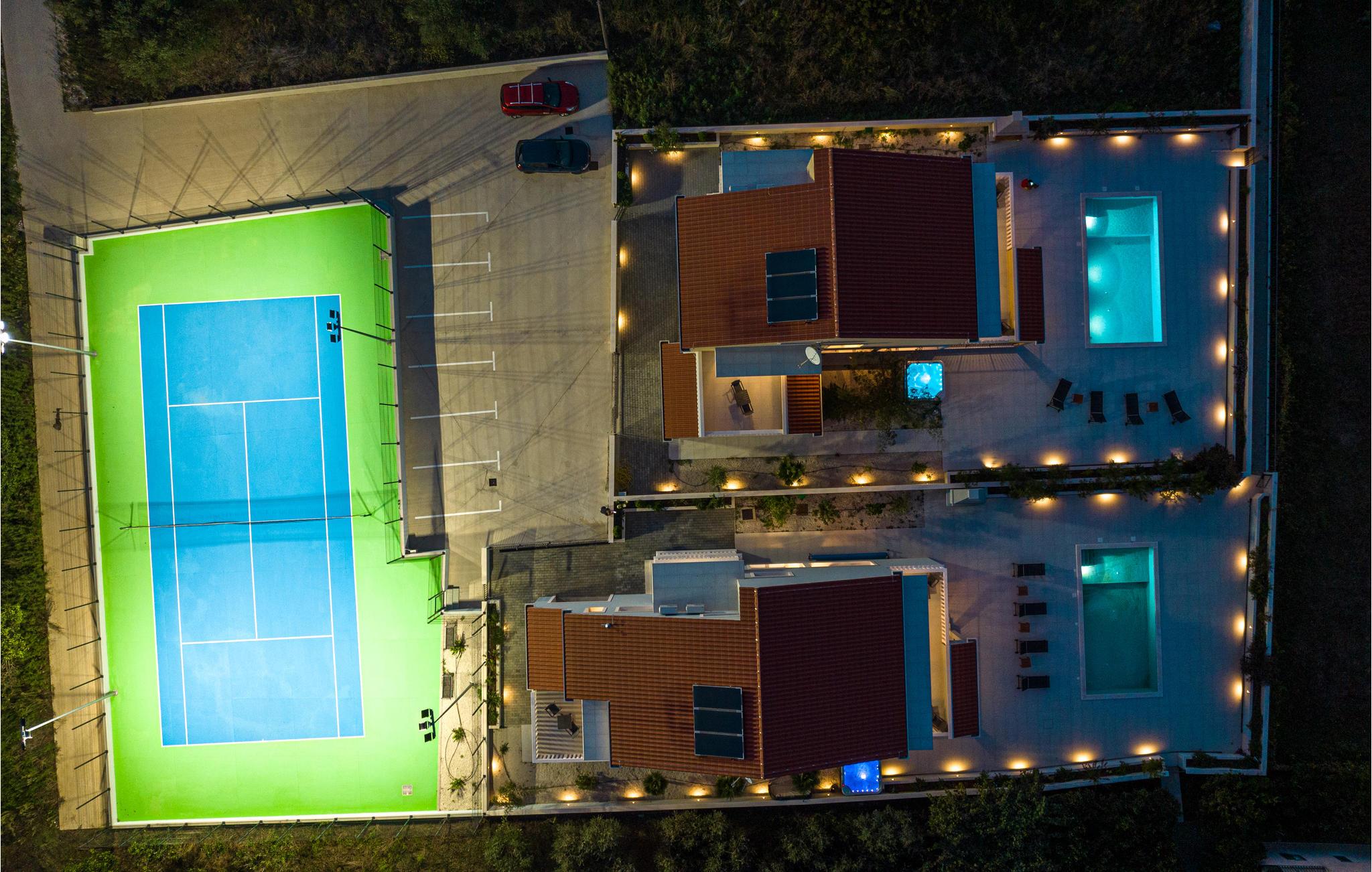 Herfra har I adgang til den overdækkede terrasse, hvor I kan nyde lækre måltider. Poolen fuldender det fantastiske tilbud. Som tennisspiller får I noget for pengene her. I deler en privat tennisbane med huset ved siden af og kan øve jeres serv, mens I er på ferie.