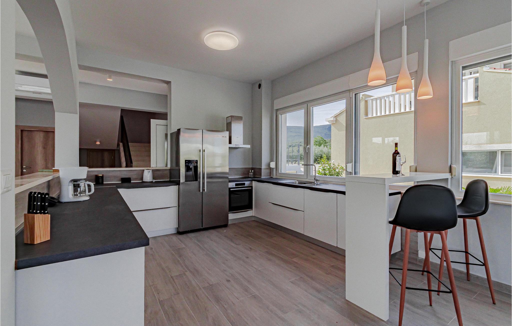 Her kan hele familien flytte ind i jeres drømmeferiehus, der opfylder alle ønsker. Glæd jer til at nyde privatlivets fred i de rummelige og stilfulde soveværelser med eget badeværelse. Fra soveværelserne er der adgang til store altaner med en vidunderlig udsigt over havet. Det indbydende og overdådige opholdsrum lover plads til alle, uanset om I tilbereder måltider i det fuldt udstyrede køkken, spiller brætspil ved spisebordet eller slapper af på sofaerne.