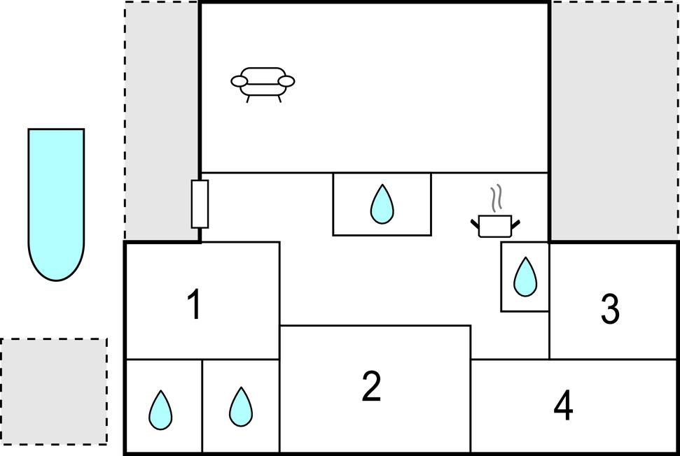 Udenfor kan I se frem til en stor pool. Nyd solen og lejlighedsvis forfriskning og tilbered lækre retter på grillen.