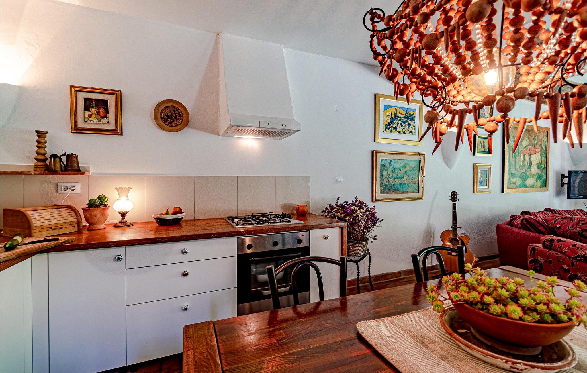 Denne komfortable villa med swimmingpool ligger på en bakketop i den idylliske by Trstenik. Den er moderne og bekvemt indrettet med interessante og skønne detaljer. Den traditionelle byggeskik med de tykke ydermure sørger for at der også om sommeren er dejligt svalt i huset. Kieselstranden nås på en kort spadseretur. I kommer fra parkeringspladsen til huset ad flere trin og en lille bro. På den store grund er der oliventræer, terrasser og en lille rislende bæk i nærheden. Huset er indrettet med skønne møbler. Stueplan rummer en stor stue og et køkken. På første sal ligger to rummelige soveværelser og yderligere et badeværelse. Huset er en gammel bygning. De tykke vægge sikrer behagelig kølighed selv på de hedeste sommerdage. I middelalderbyen Korcula, 30 km, kan I opleve Moreska og Kumpanija, gamle ridderdanse.