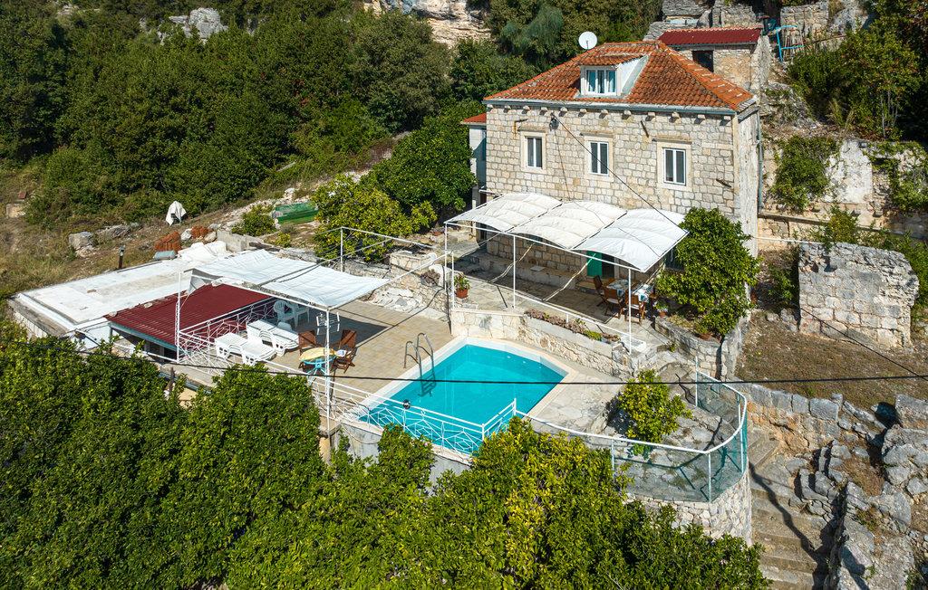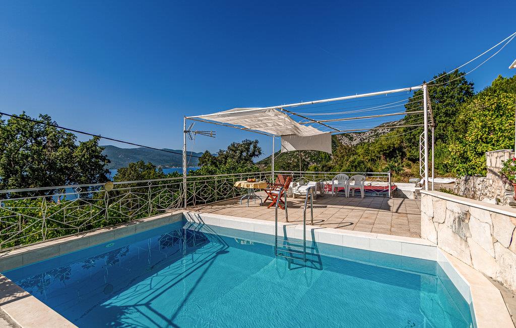 Dette traditionelle hus med pool har en vidunderlig udsigt over omgivelserne, delvis over havet og over øen Korcula. På grund af dets rolige beliggenhed og dets autentiske atmosfære er det et ideelt sted til en afslappende ferie. Feriehuset ligger sammen med ejerens hus i en afsides egn. Det indre består af fire soveværelser, en dagligstue i tagetagen, et enkelt køkken og to badeværelser med douche, hvoraf det ene kun er tilgængelig udefra. Foran feriehuset er der bordtennis og andre legeredskaber. Underholdning, barer og restauranter finder I i de omkringliggende små byer.