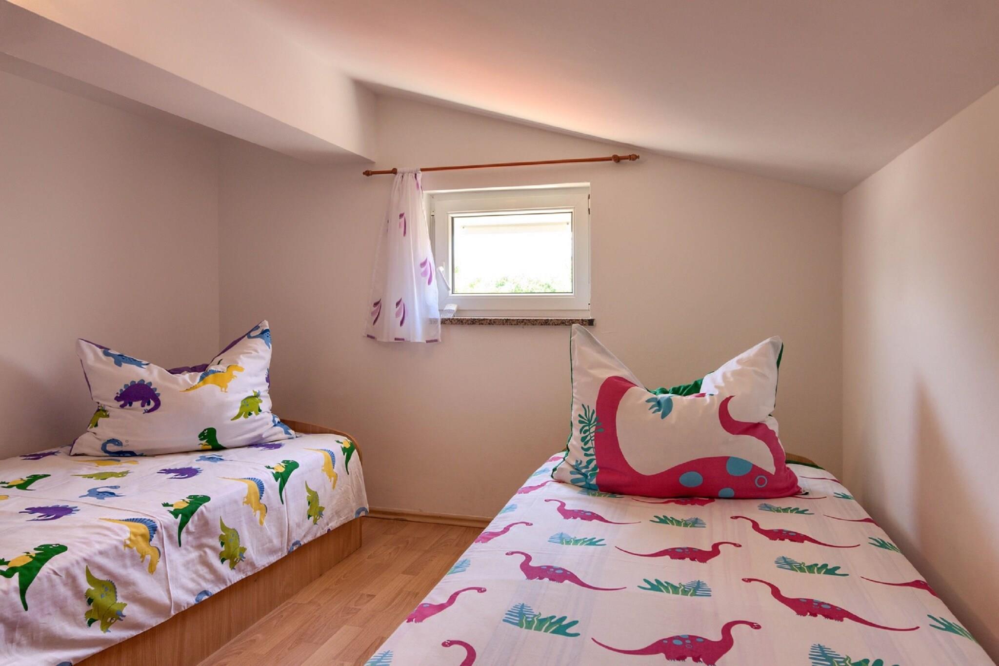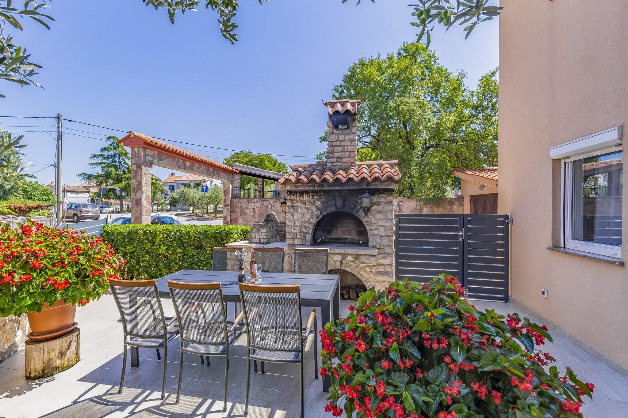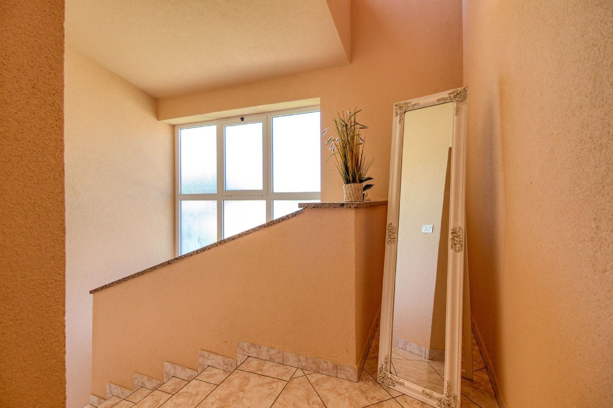Dette feriehus til 13 gæster tilbyder et komfortabelt og kæledyrsvenligt tilflugtssted i Peroj, kun 800 meter fra stranden og 100 meter fra lokale restauranter og butikker. Denne villa er designet til store grupper og familier og tilbyder gratis WiFi, en privat indhegnet swimmingpool og flere terrasser til afslapning. Uanset om du nyder solen, spiser udendørs eller udforsker nærliggende attraktioner, garanterer dette hjem et mindeværdigt ophold. Indenfor finder du i stueetagen to fuldt udstyrede køkkener med ovn, mikrobølgeovn og opvaskemaskine, to stuer/spisestuer og to soveværelser med dobbeltsenge samt to badeværelser med brusere og toiletter. Første sal byder på to ekstra køkkener, to stuer/spisestuer, tre soveværelser, herunder et med køjeseng, og to badeværelser. Loftet indeholder yderligere to soveværelser med to enkeltsenge og et ekstra badeværelse, hvilket gør denne villa ideel til store forsamlinger. Gæsterne kan også nyde aircondition, grillplads, bordtennisbord og parkering på stedet. I nærheden finder du Augustus-templet med en fantastisk romersk arkitektur, mens Brijuni-øerne byder på betagende natur og historiske steder. Udforsk Sergii-buen, en velbevaret romersk triumfbue. Til spisning serverer Ristorante Da Nonna udsøgt italiensk køkken. Uanset om du vil udforske historie eller nyde lokale smagsoplevelser, er dette feriehus det perfekte tilflugtssted.