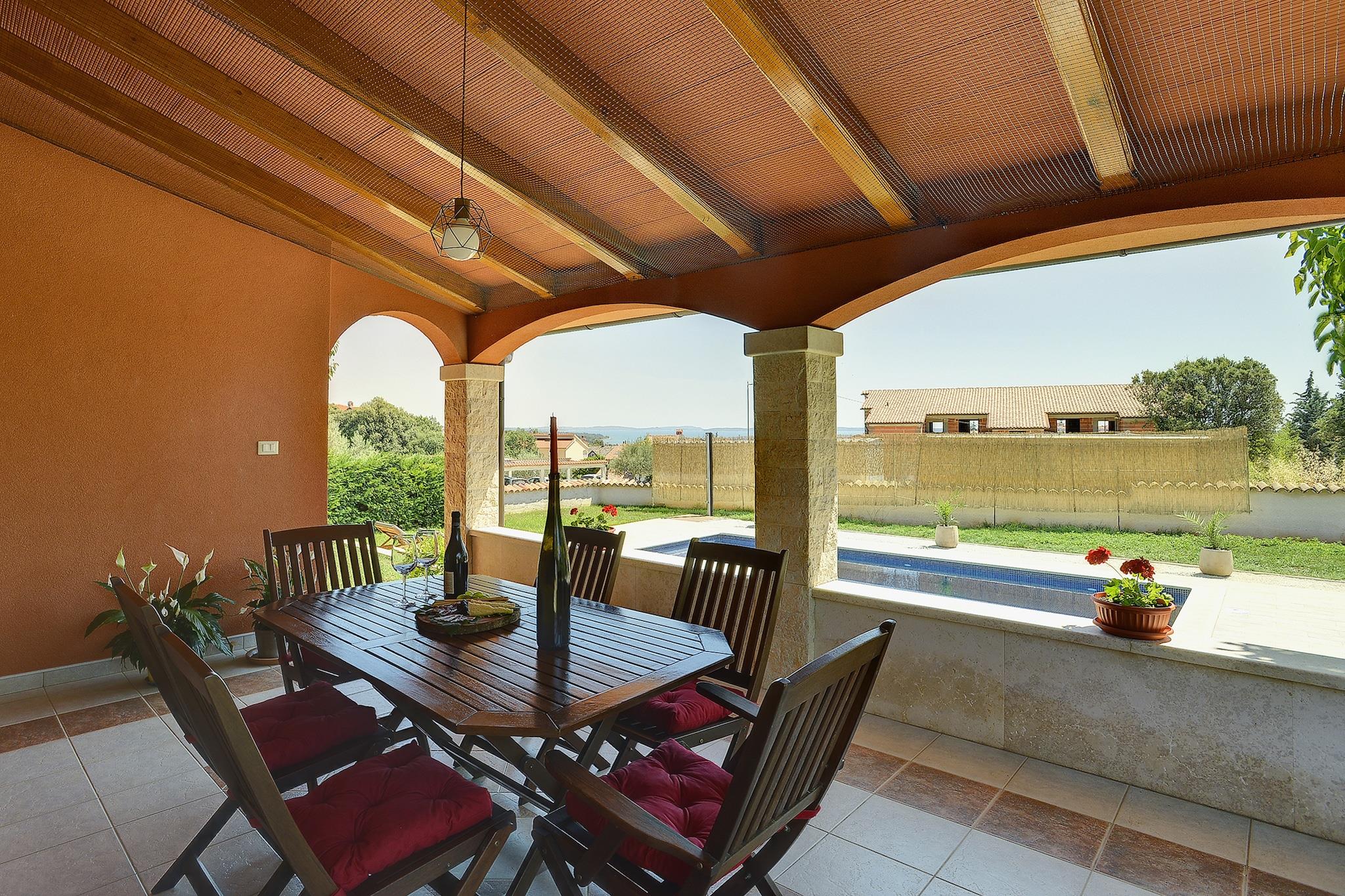Denne villa med privat pool ligger nær Barbariga og stranden. Et lille supermarked og en restaurant ligger inden for gåafstand fra villaen. Haven er helt indhegnet og har en swimmingpool med liggestole og en kro med køkken, spiseplads og toilet. Du kan finde ly fra solen på den overdækkede terrasse, i kroen eller på den overdækkede terrasse ved villaen. Interiøret er smart og velplejet. I stueetagen finder du en stue med opholdsstue, åbent køkken med spisebord og to soveværelser. Der er en enkeltseng på loftet.