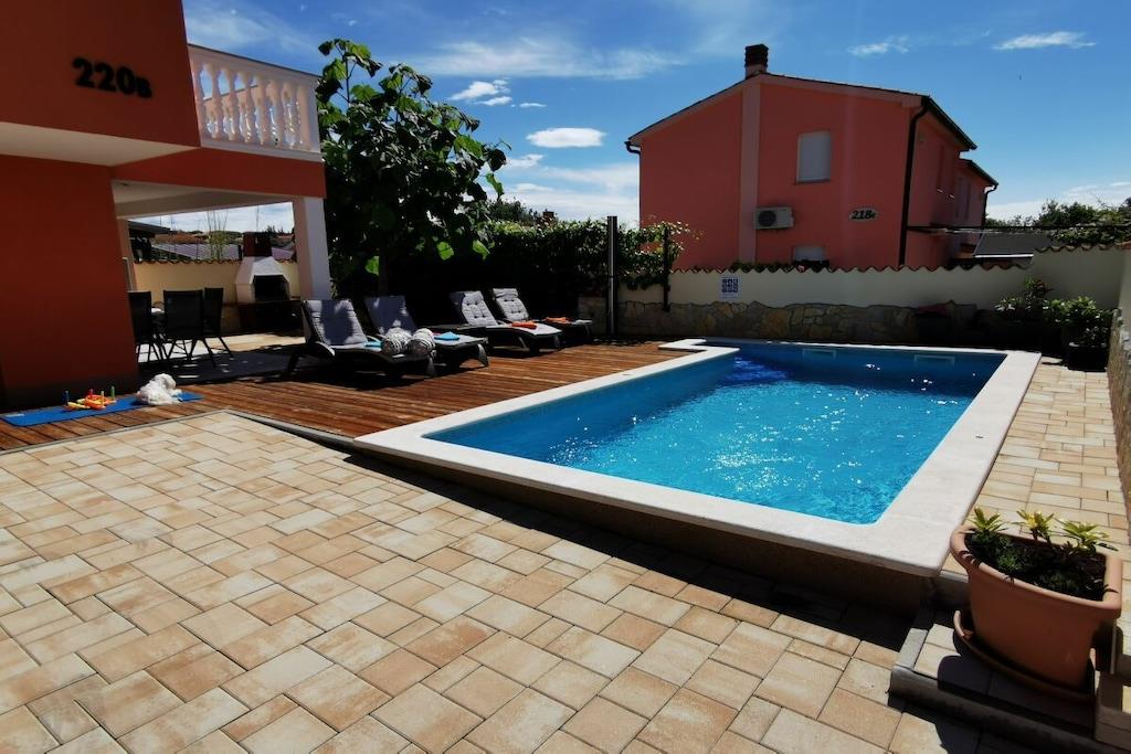 Ferienhaus Paulonia befindet sich in kleiner Siedlung Betiga in unmittelbarer Nähe von der Stadt Barbariga, die an der Strecke zwischen Rovinj und Pula liegt. Das Ferienhaus ist ca. 800 Meter vom Strand entfernt, in Reichweite liegen ein Laden und eine Bäckerei. Es besteht aus Erdgeschoss mit Wohnraum, Küche und Toilette und dem oberen Teil mit zwei Schlaf- und Badezimmern. Jedes Schlafzimmer ist mit einem Doppelbett und Klimaanlage ausgestattet und lässt die Möglichkeit zu, den Ausblick auf dem Balkon oder Terrasse zu genießen.Der Außenteil mit Außenküche und Schwimmbad bietet Ihnen Raum zum Baden, Sonnen und Grillen. . Für den Fall von schlechtem Wetter eilen Gesellschaftsspiele, Playstation und Fernseher im Wohnraum zur Hilfe.